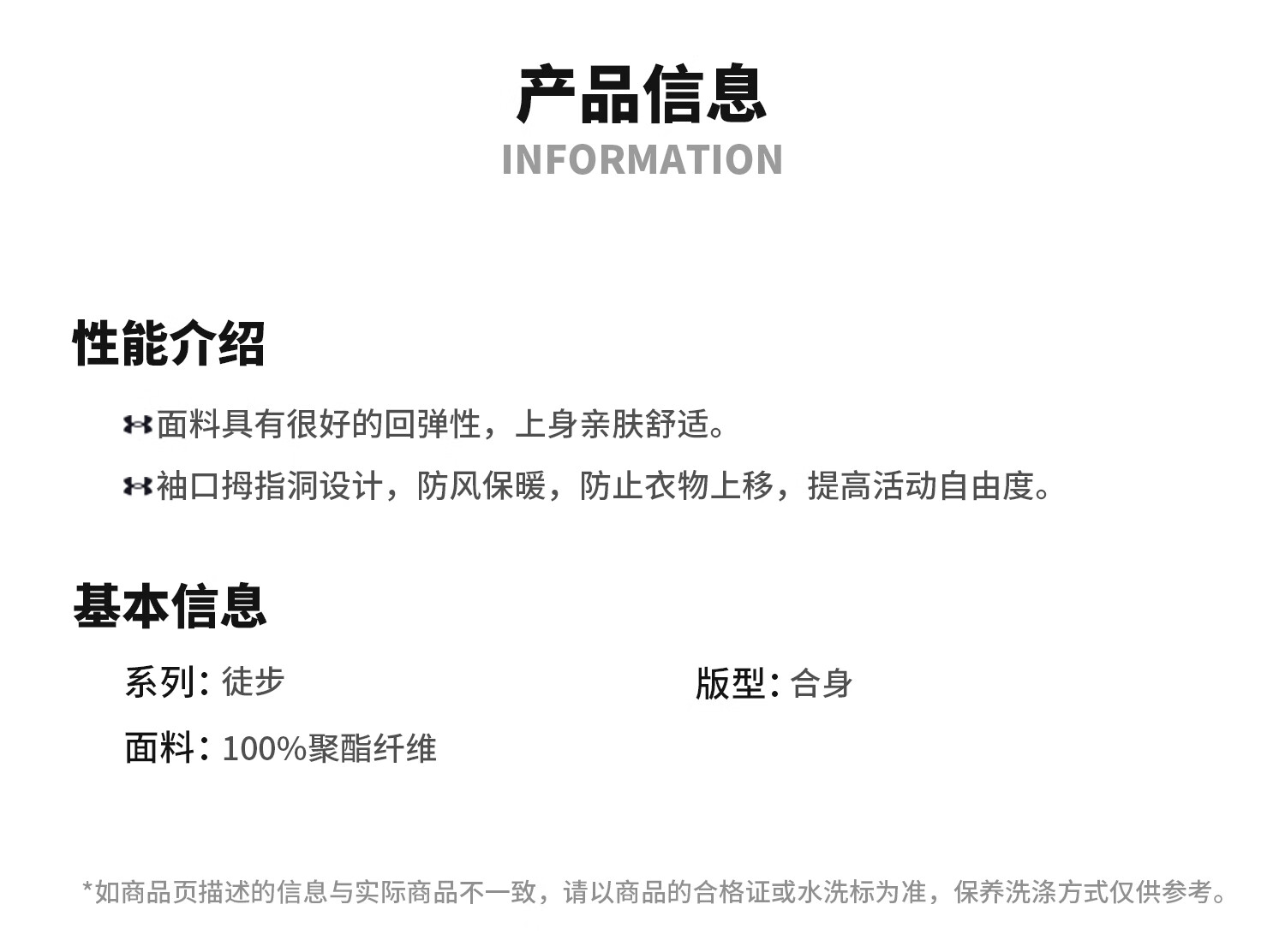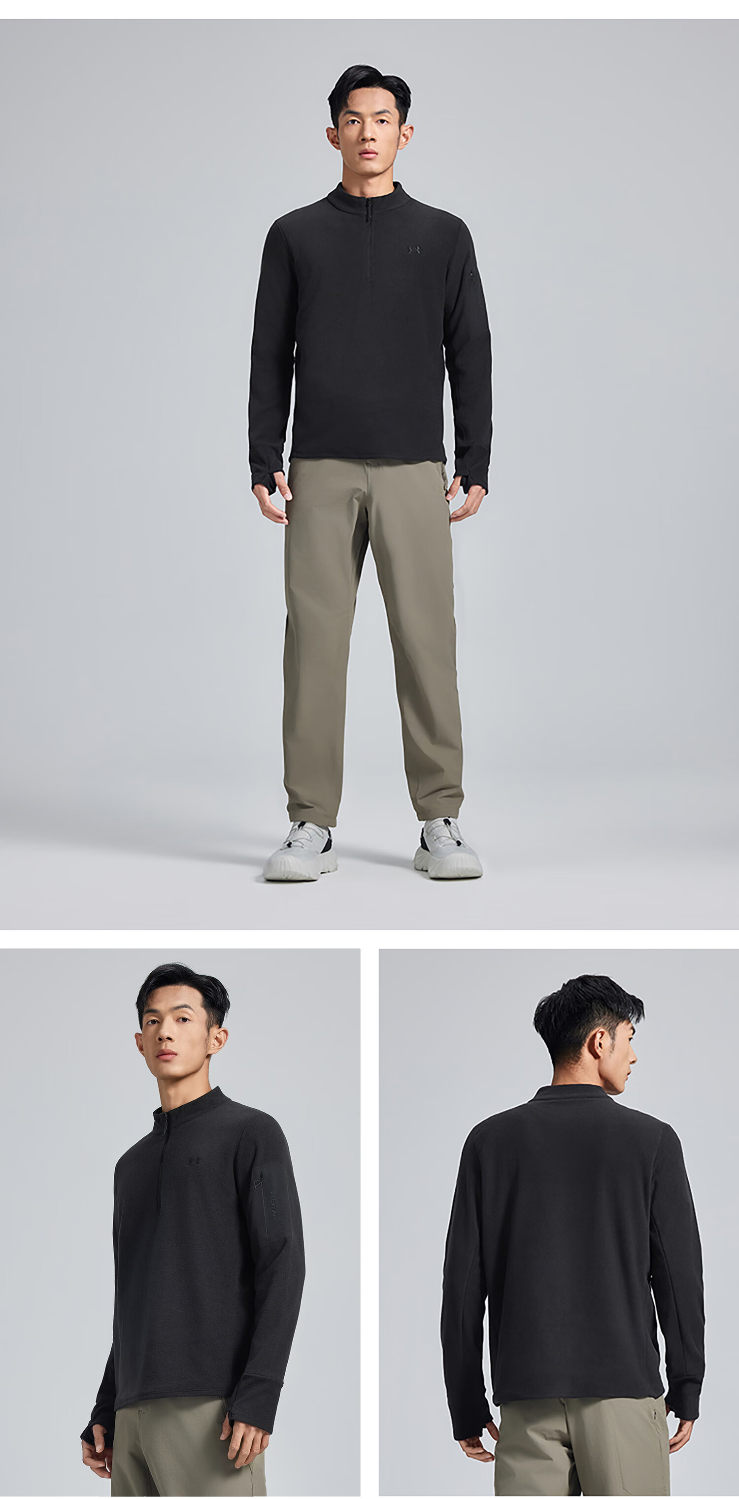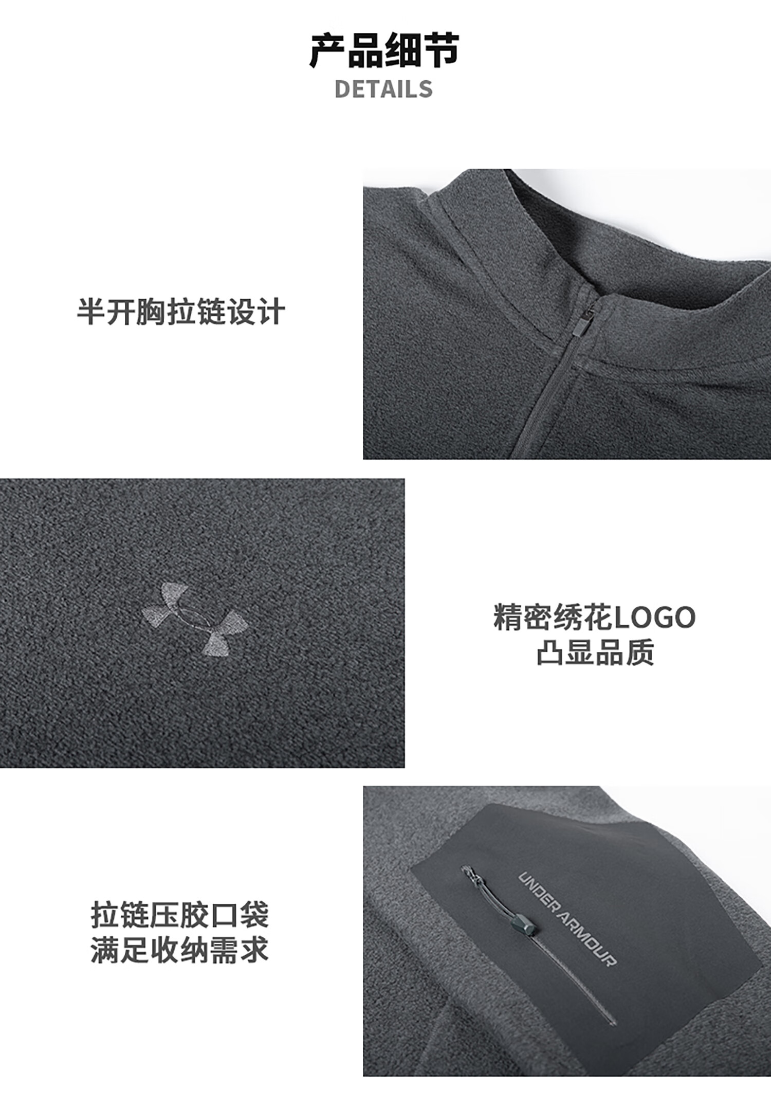 安德玛【谢霆锋同款】户外抓绒衣男女款 透气保暖套头打底衫男 漫暮黑-男款 L