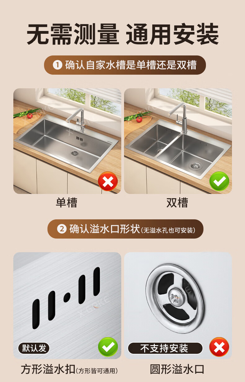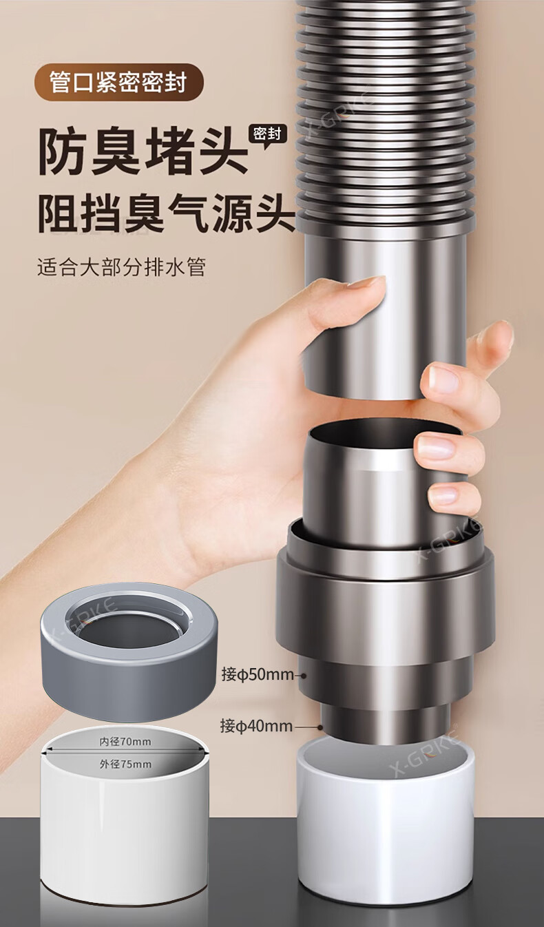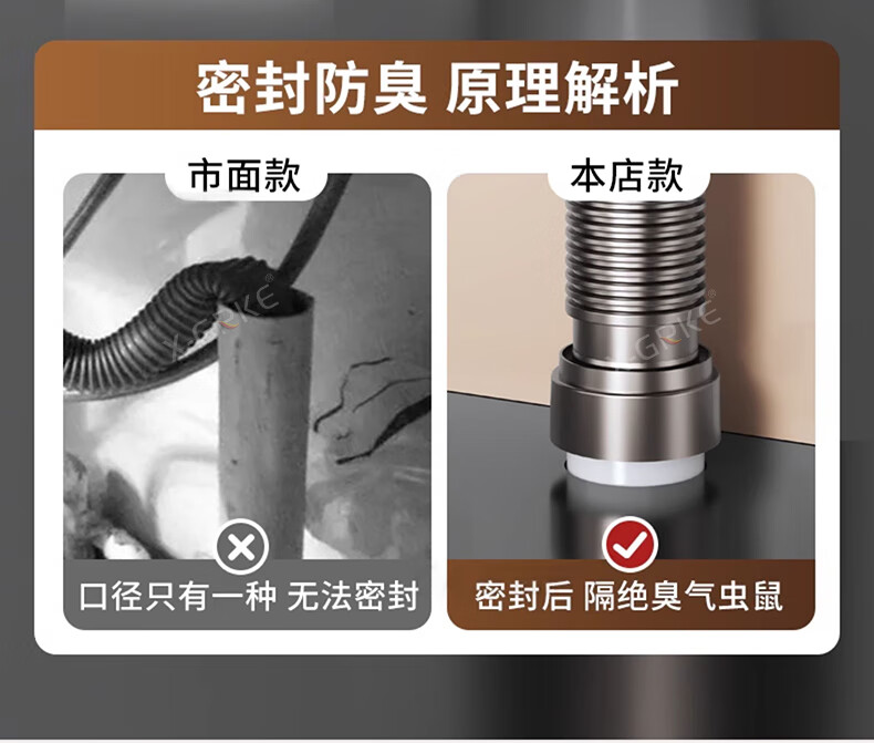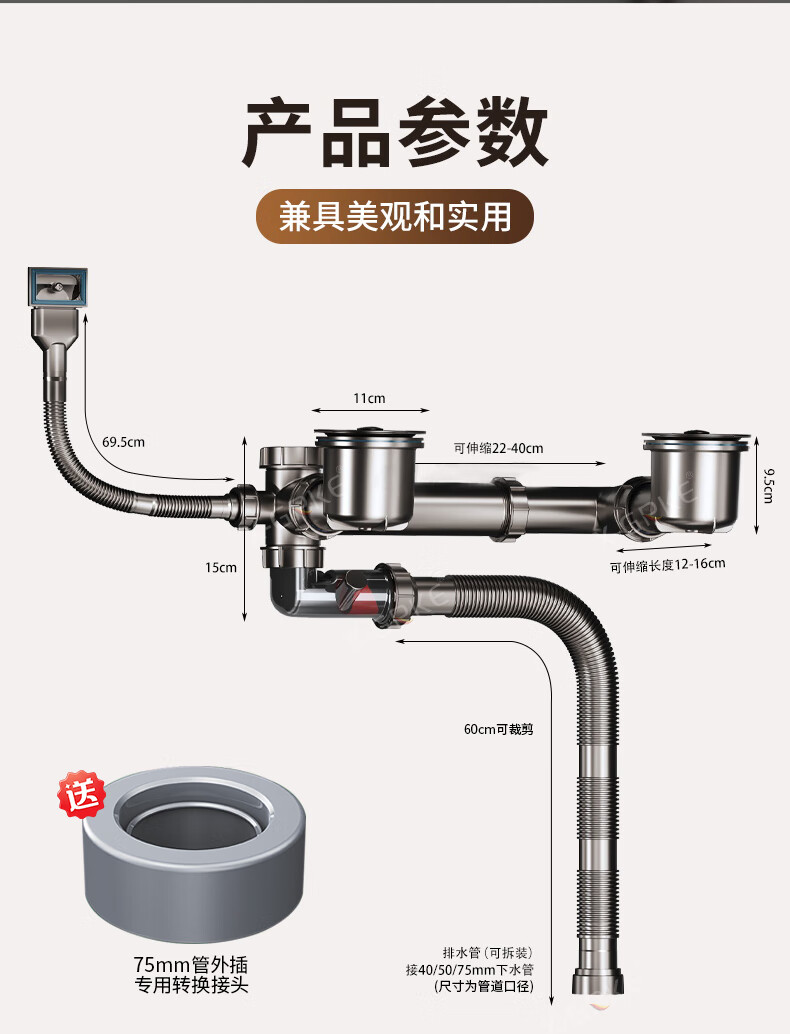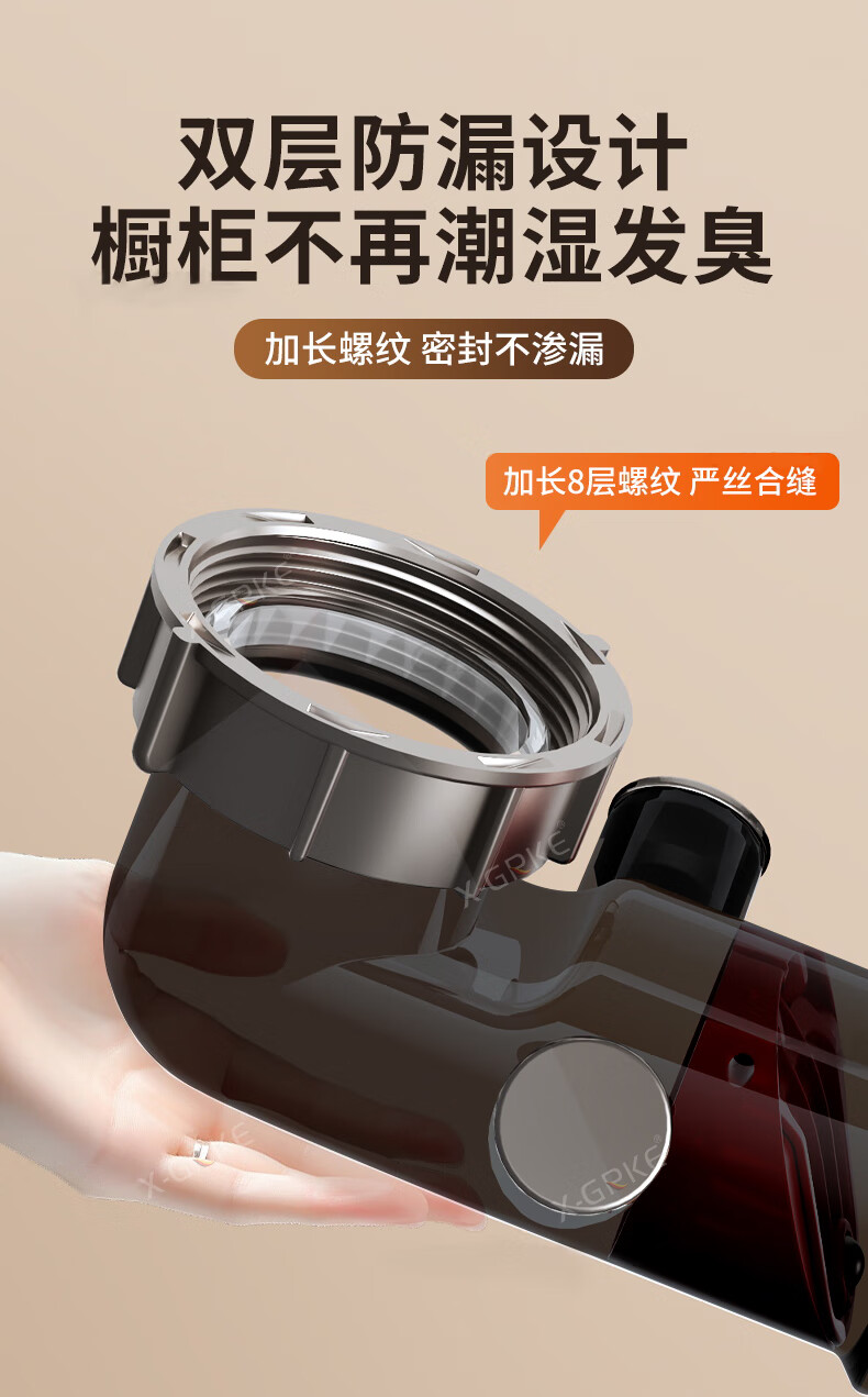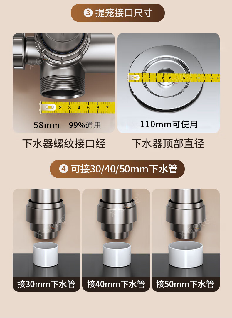 X-GRKE【德国】厨房下水管道全套洗菜盆不锈钢双槽三通排水管防臭配件 【110+110】双槽下水管套装 升级加厚304提笼丨自动闭合阀芯