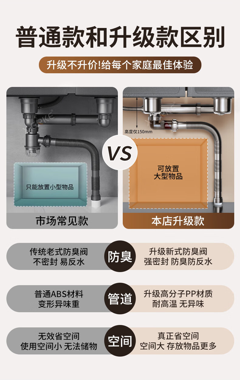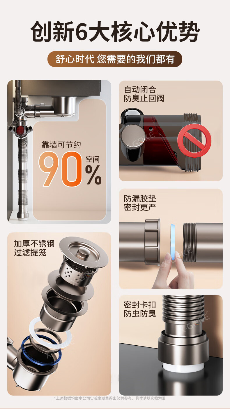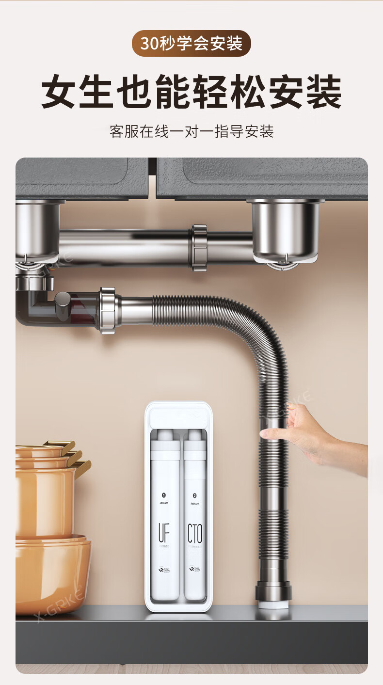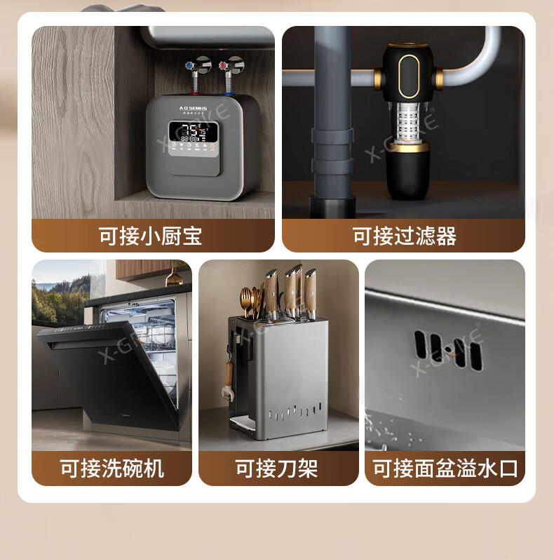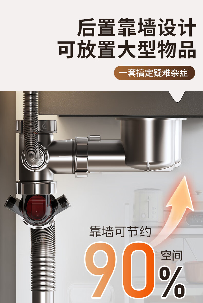 X-GRKE【德国】厨房下水管道全套洗菜盆不锈钢双槽三通排水管防臭配件 【110+110】双槽下水管套装 升级加厚304提笼丨自动闭合阀芯