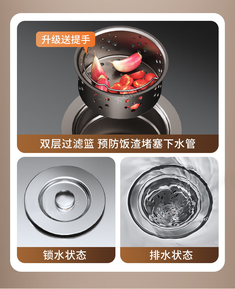 JOMOW5.0加厚水槽大单槽厨房洗菜盆一体盆304不锈钢多功能集渣洗碗池槽 68*45*21cm