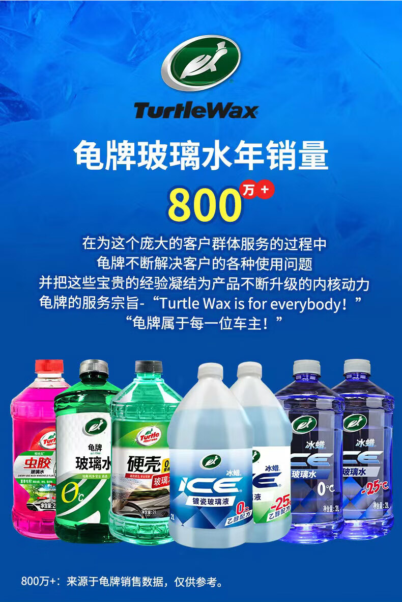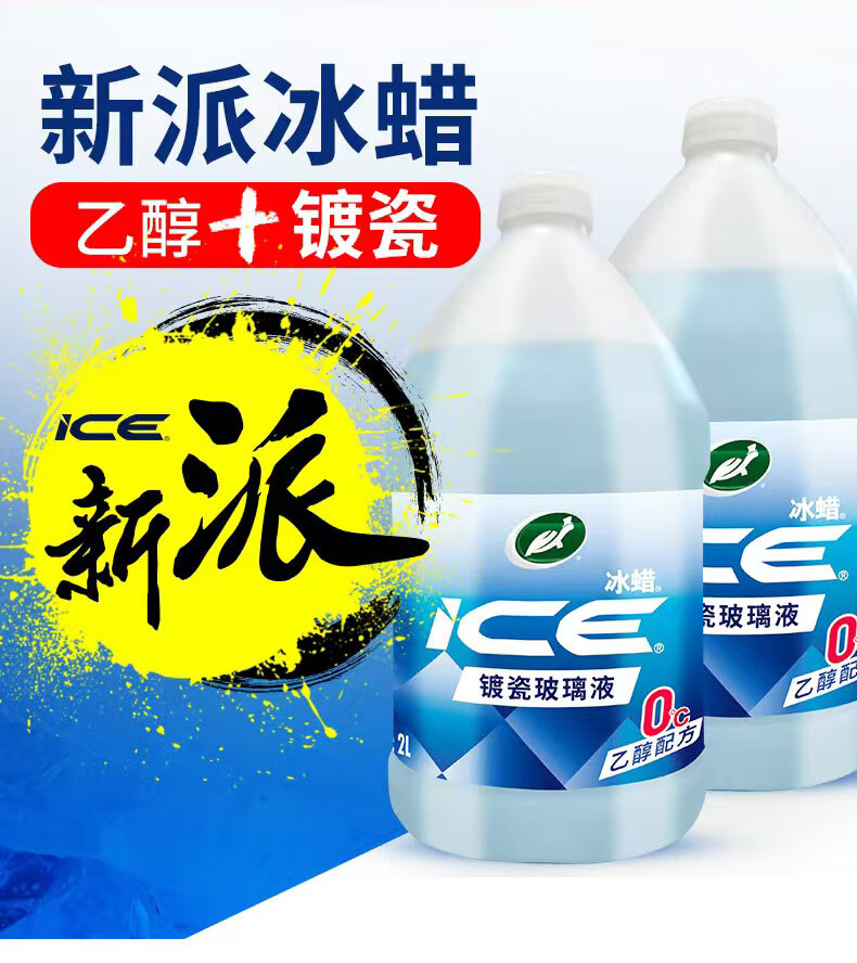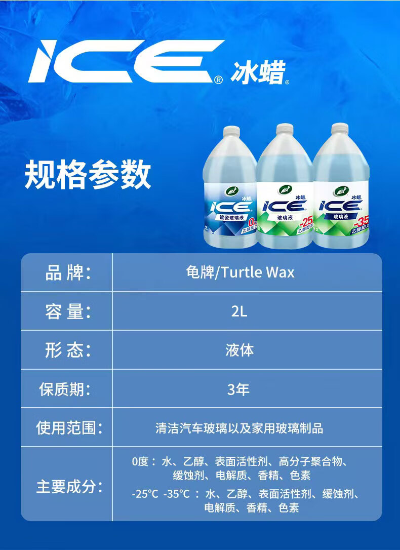 龟牌(Turtle Wax)冰蜡玻璃水镀瓷乙醇0°去油膜汽车特斯拉宝马奔驰除虫胶雨刮水2瓶