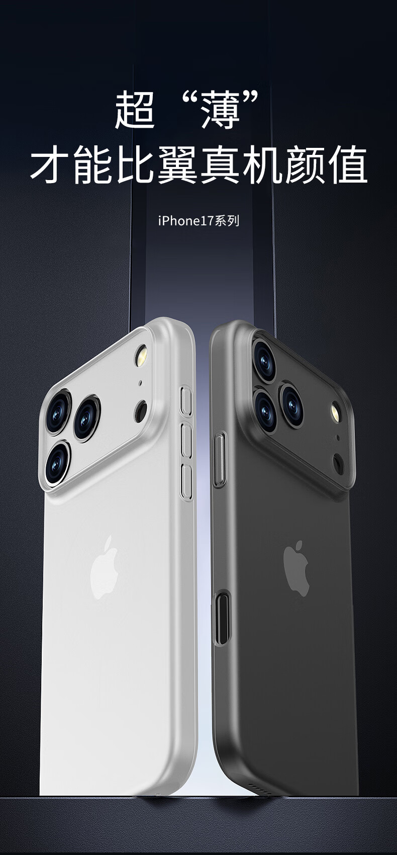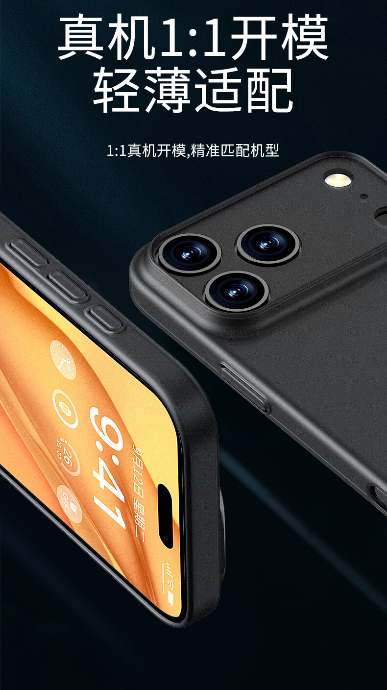 飞利浦适用苹果17promax手机壳iphone17pro保护套16promax超薄16pro磨砂17镜头全包16磁吸air男女plus软 【透黑】送膜 iPhone17ProMax