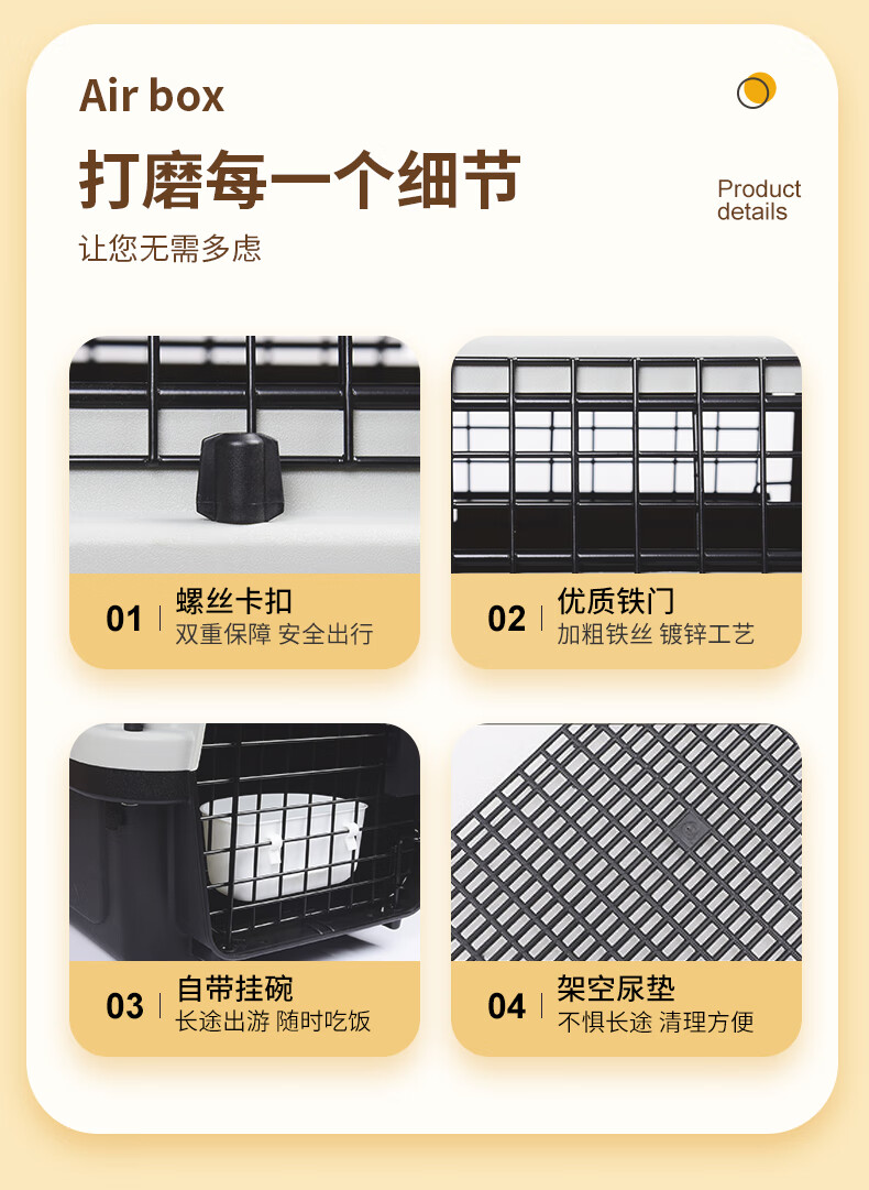 波奇多【国航标准】宠物航空箱猫咪笼子外出便携式托运箱太空箱车载狗笼