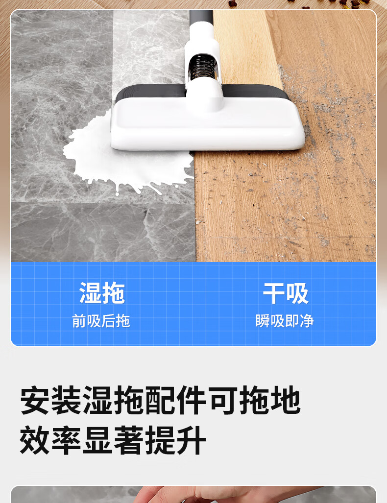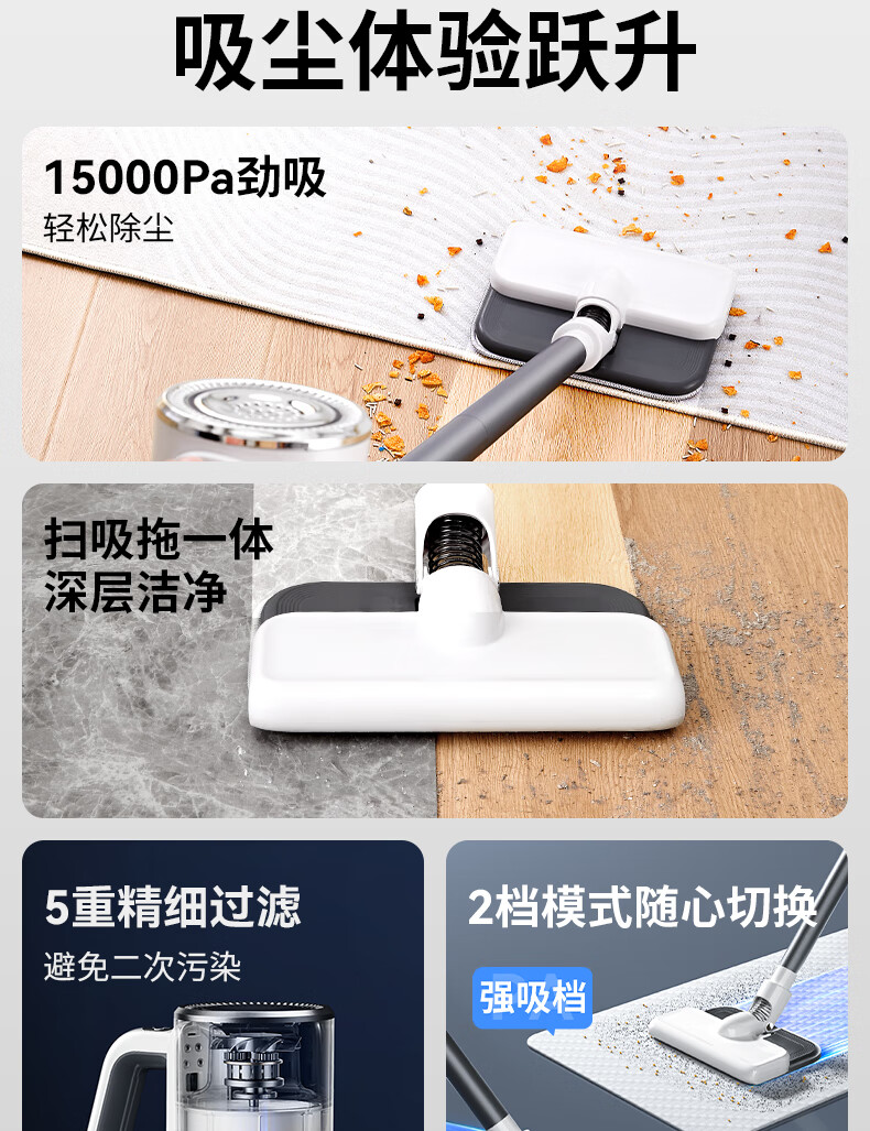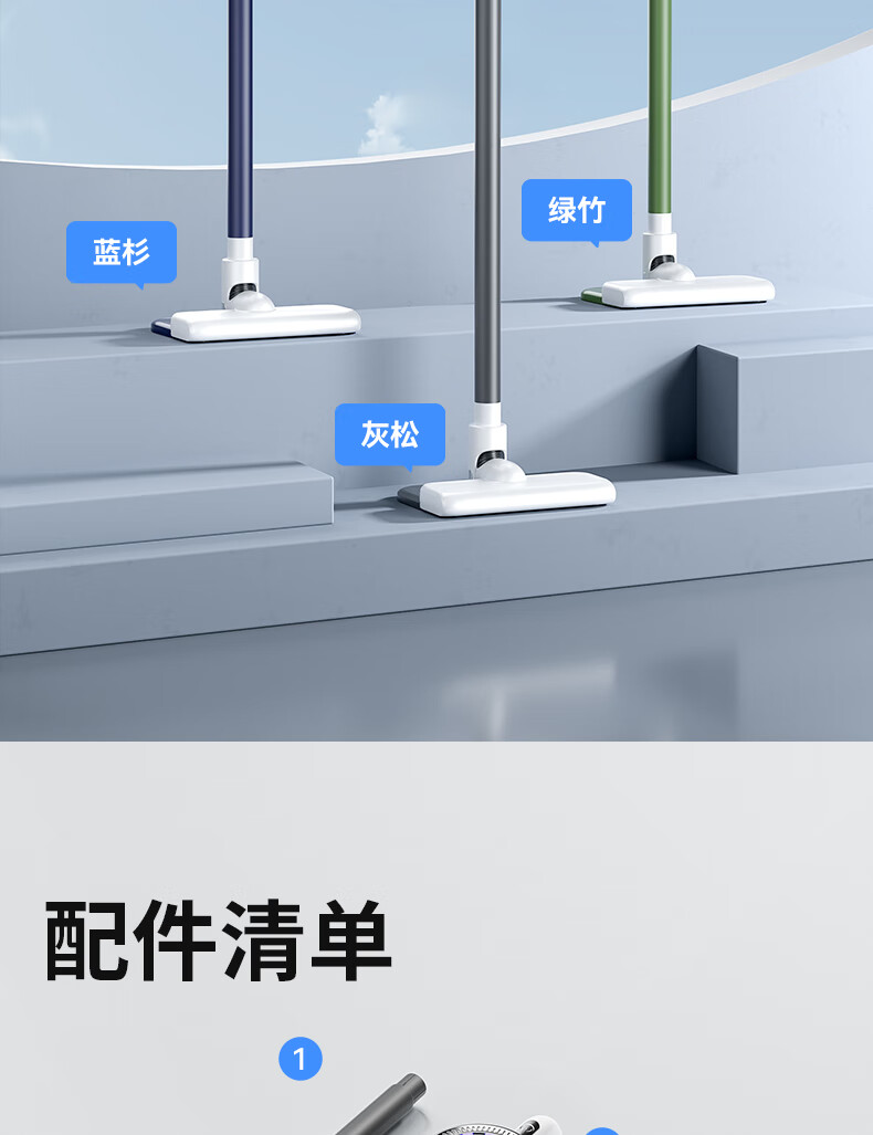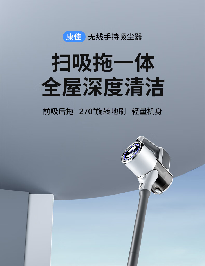 康佳吸尘器无线吸拖一体机家用大吸力手持地毯洗地机小型轻音大功率除螨大扫除 【灰松】无线3合1+滤芯*2+刷头*2+拖布*2