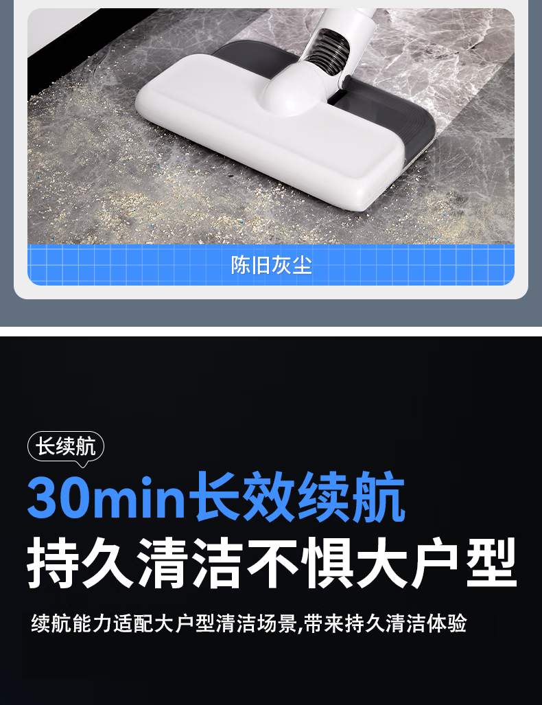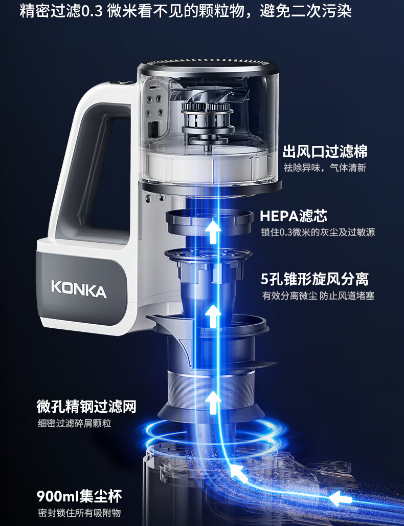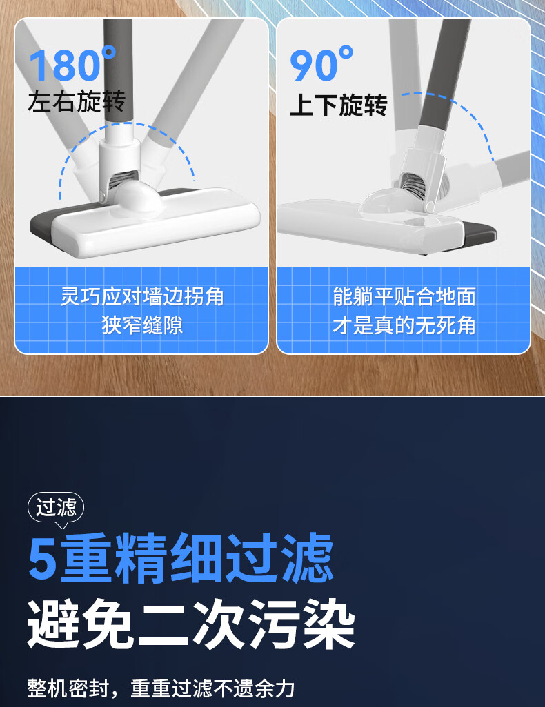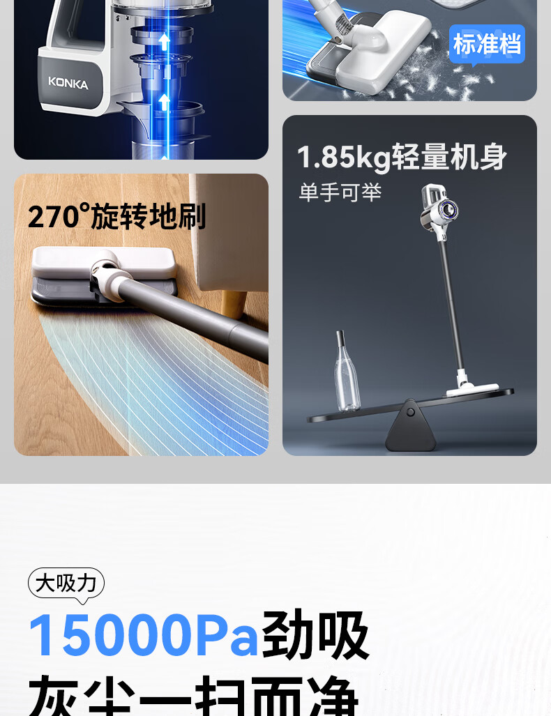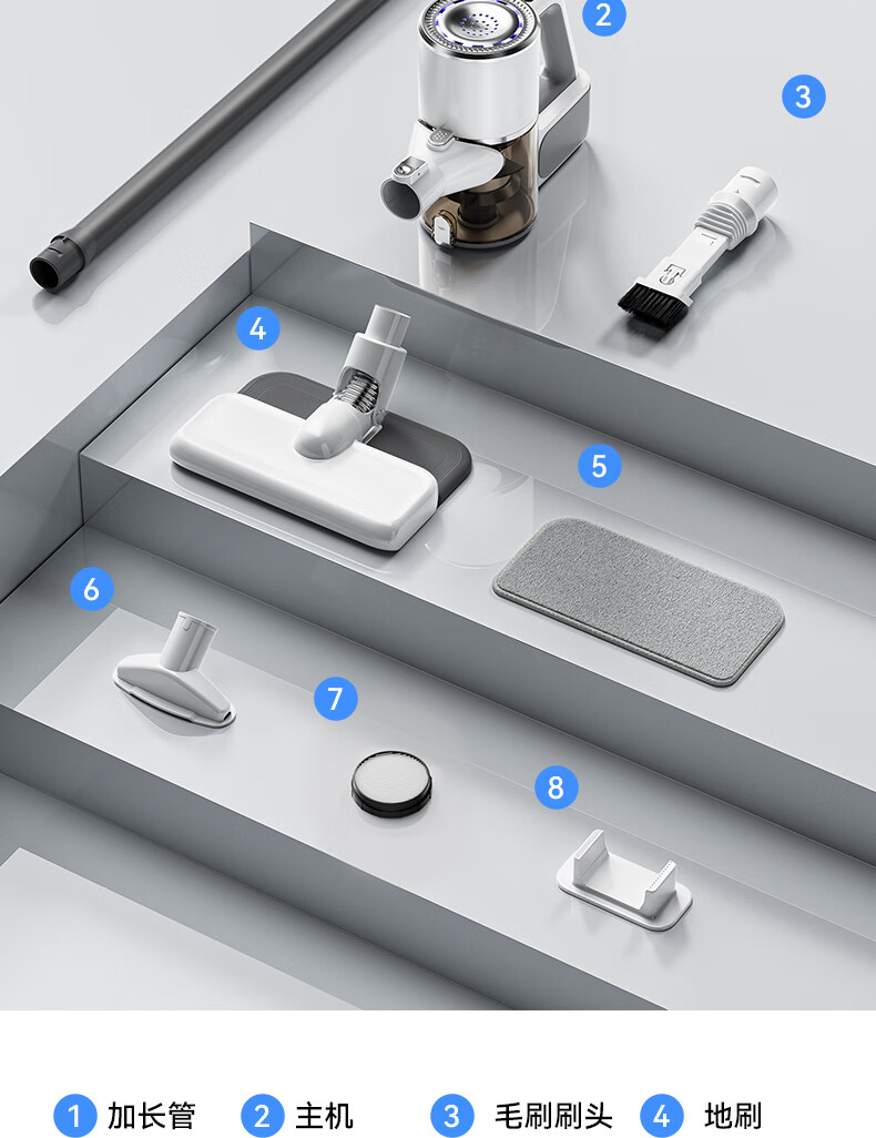 康佳吸尘器无线吸拖一体机家用大吸力手持地毯洗地机小型轻音大功率除螨大扫除 【灰松】无线3合1+滤芯*2+刷头*2+拖布*2