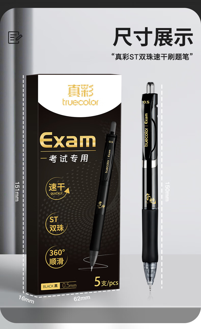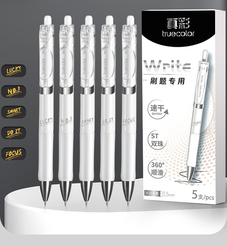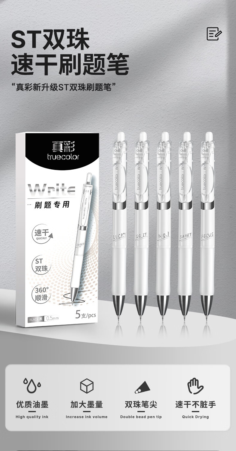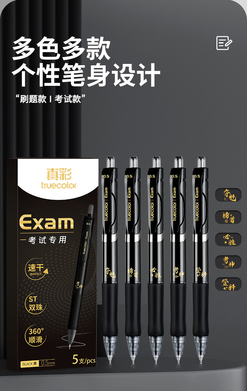 真彩按动中性笔ST速干刷题考试笔小白笔顺滑高颜值学生用水笔黑笔高考初中生考试专用碳素黑签字笔35A