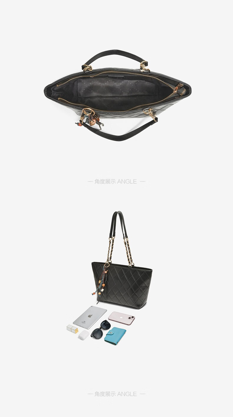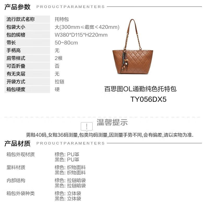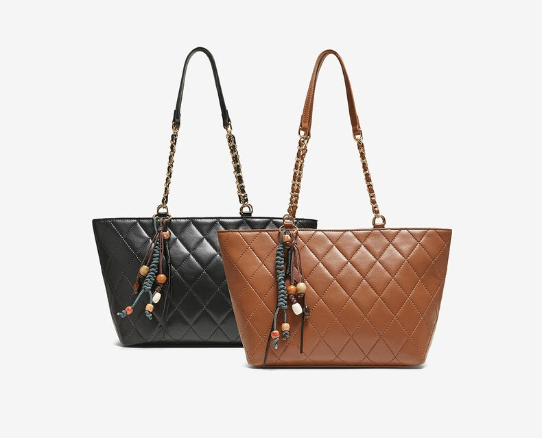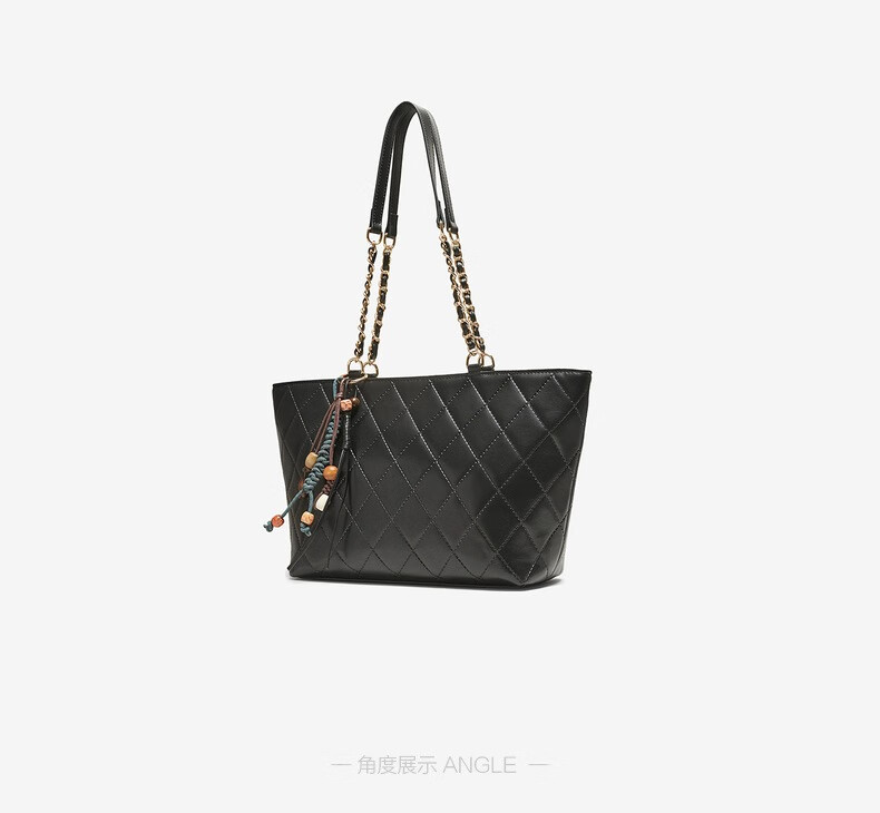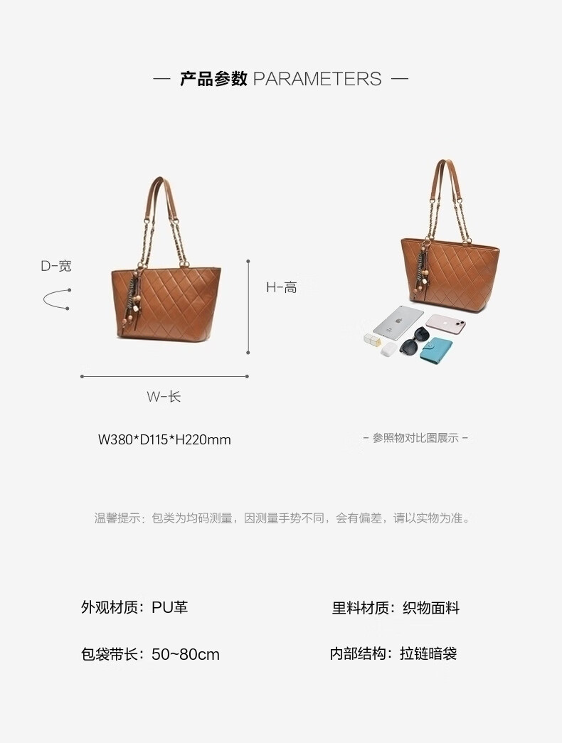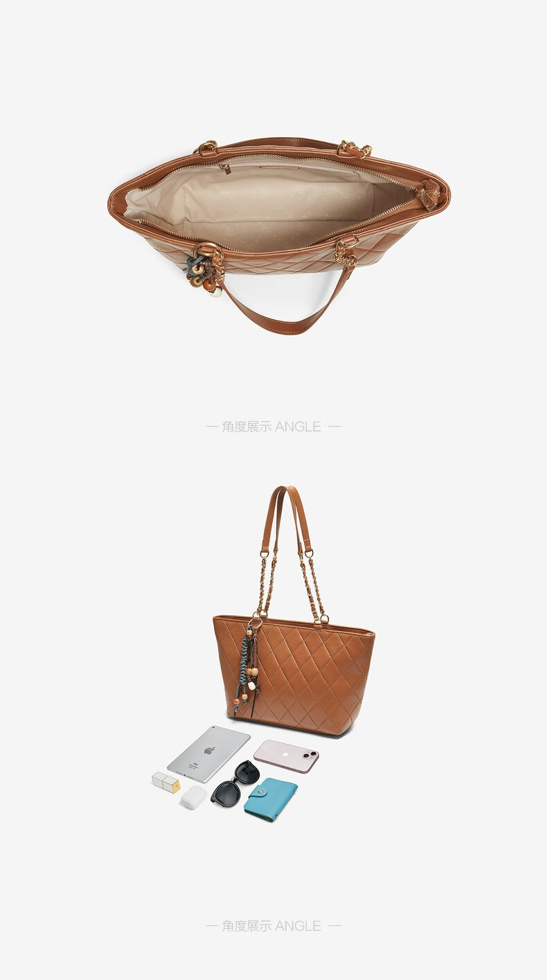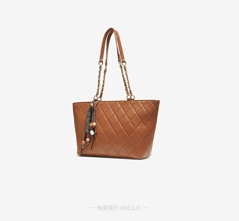 百思图25冬季商场新款菱格链条托特包时尚大容量斜挎包女TY056DX5 棕色 F