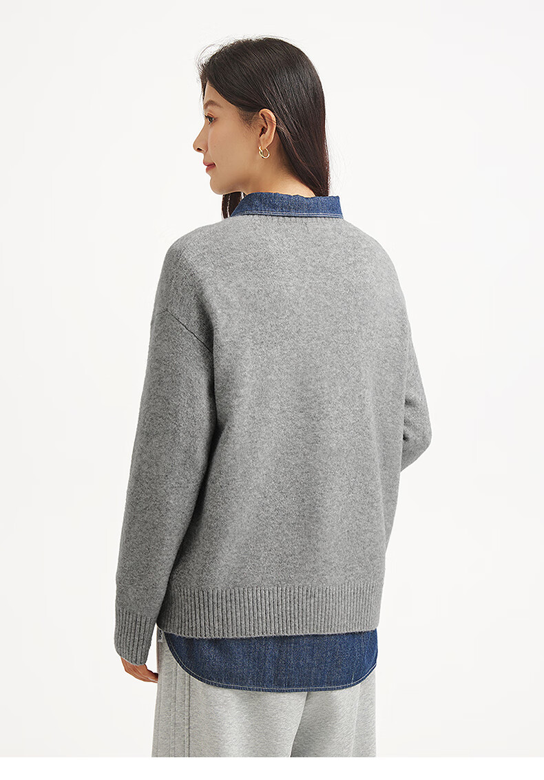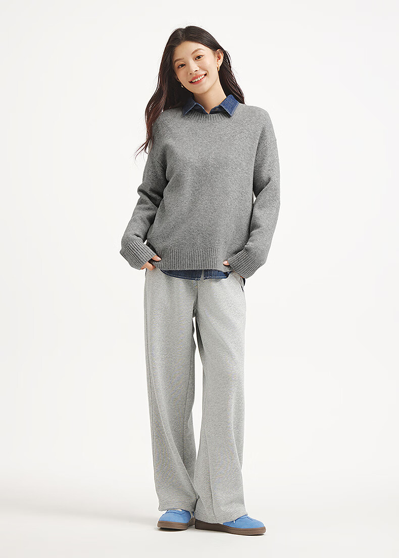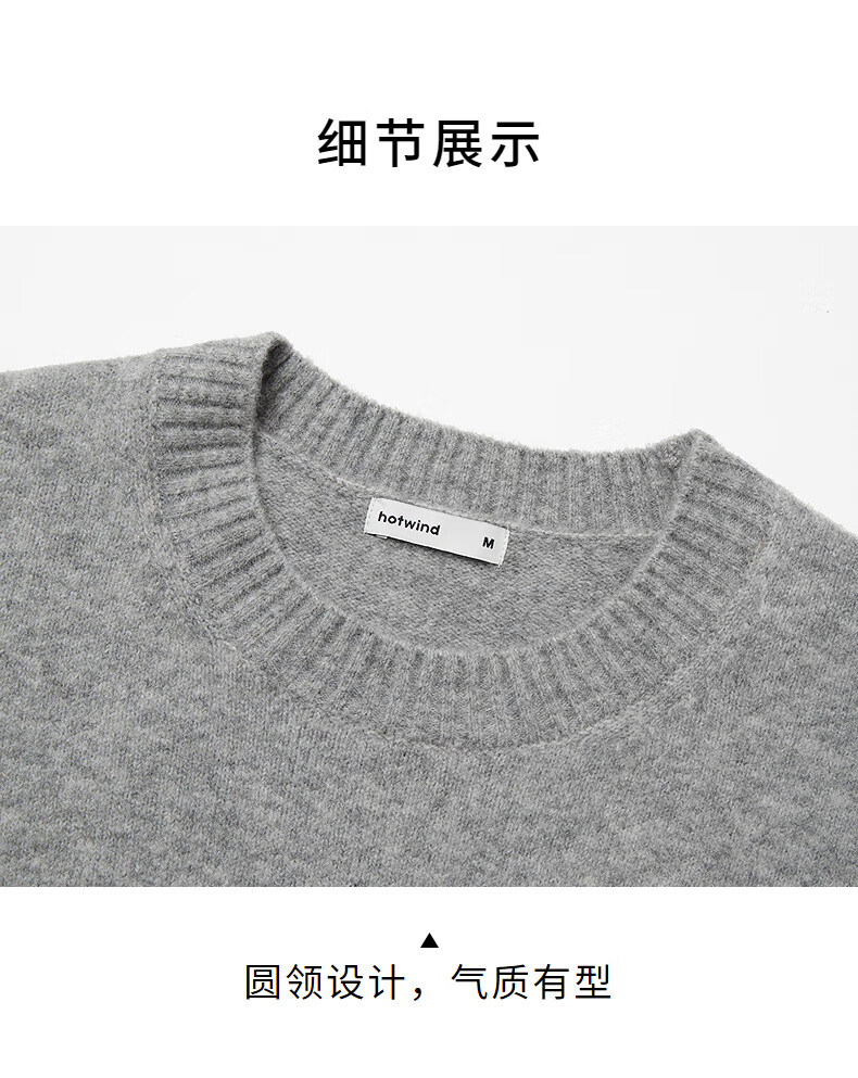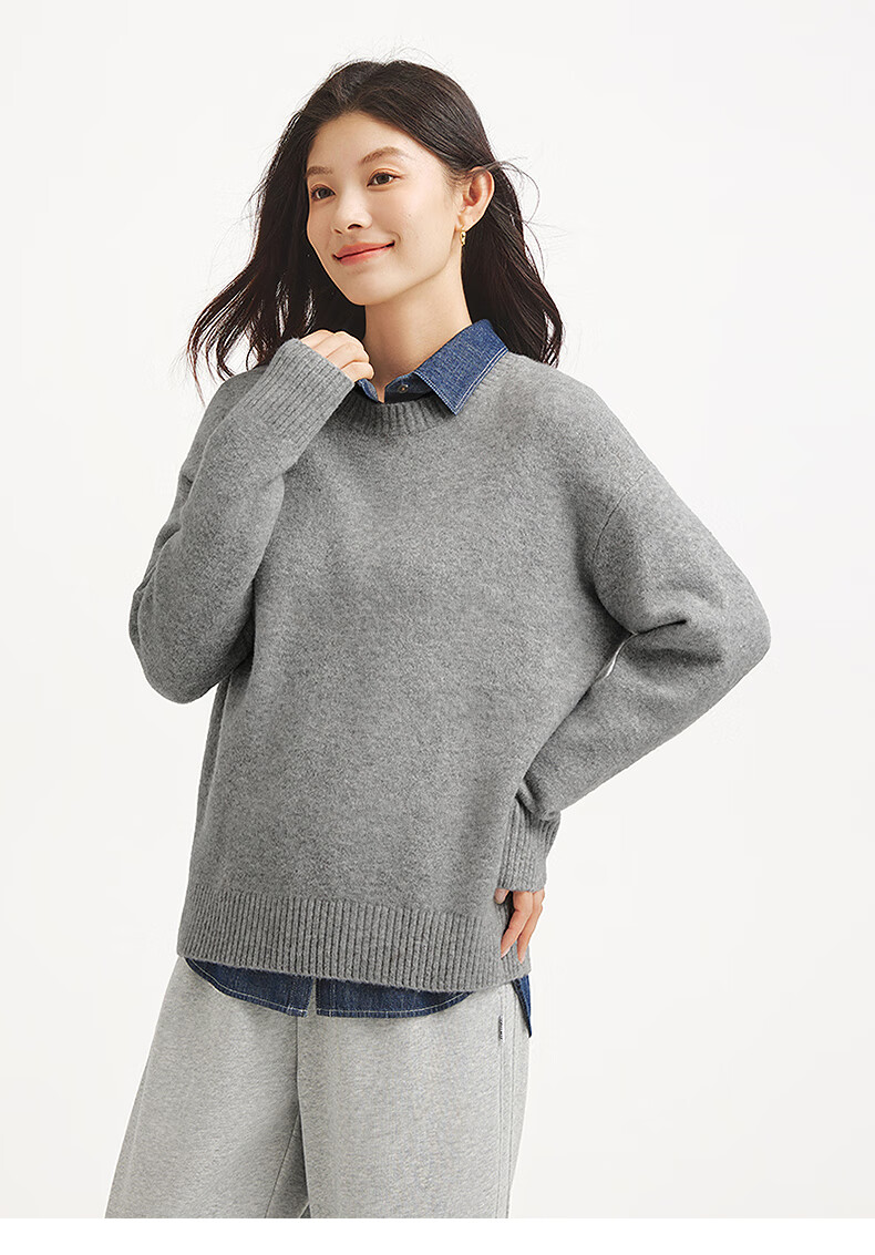 热风女士毛衣针织衫上衣2025年冬季新款慵懒圆领基础款内搭针织衫 09灰色 S
