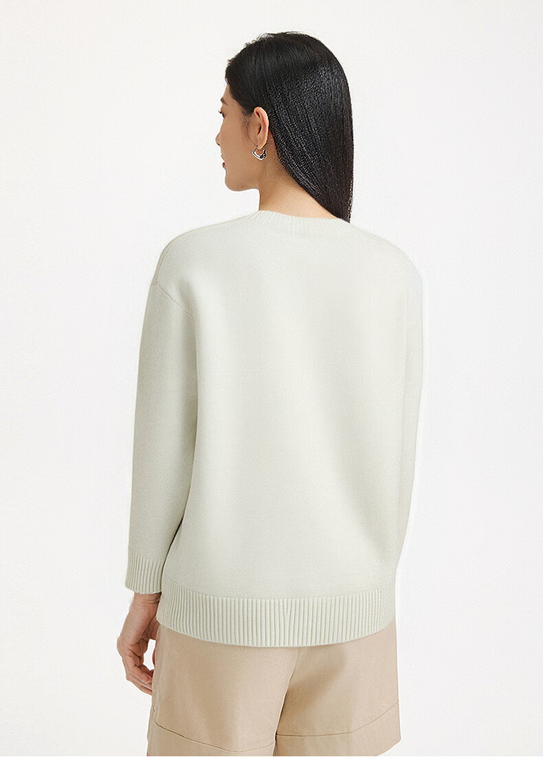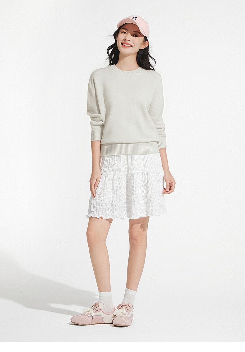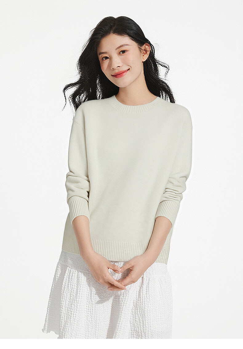热风女士毛衣针织衫上衣2025年冬季新款慵懒圆领基础款内搭针织衫 03米色 M