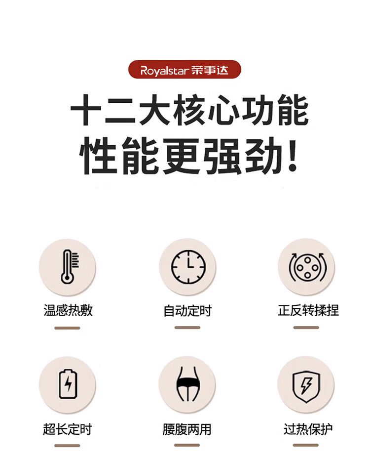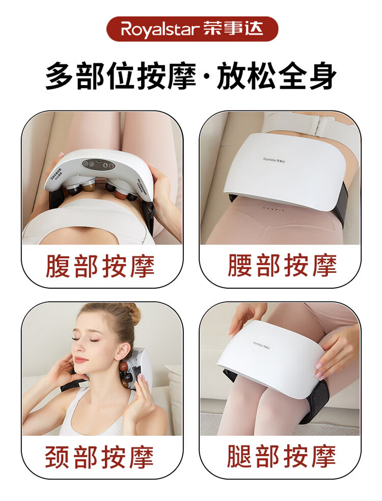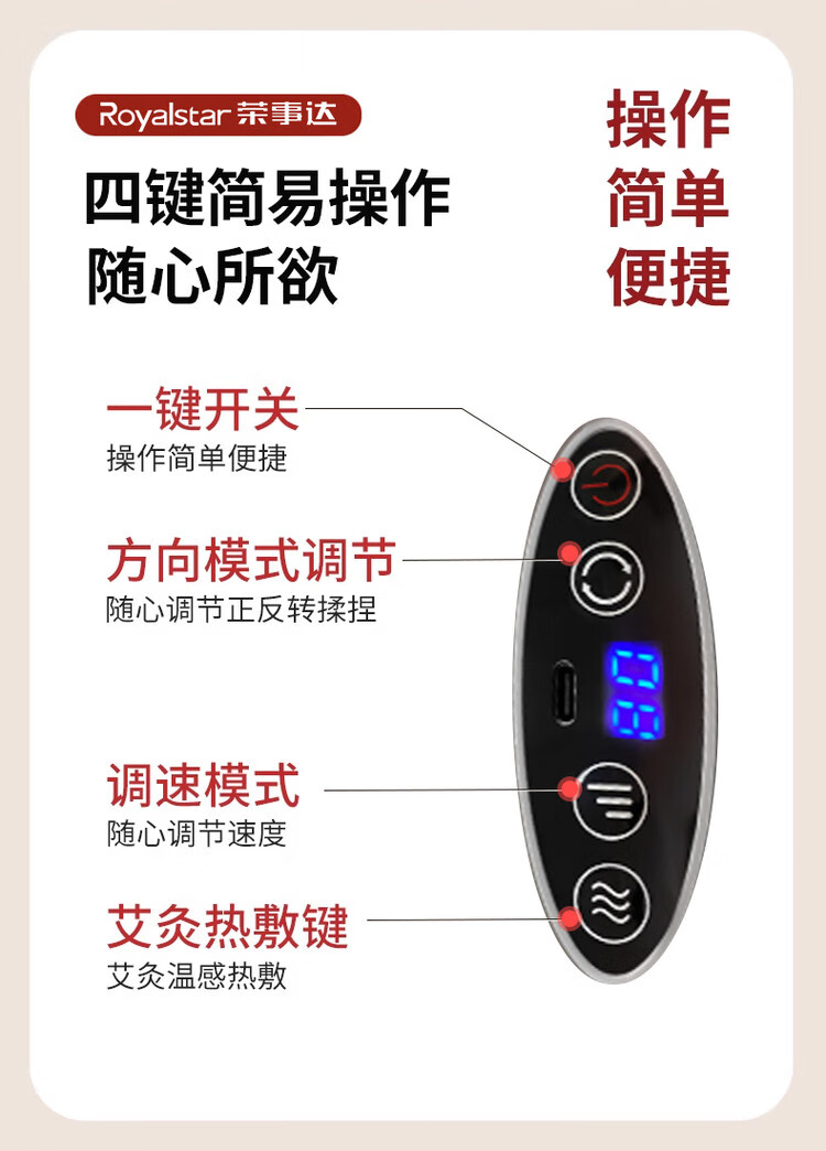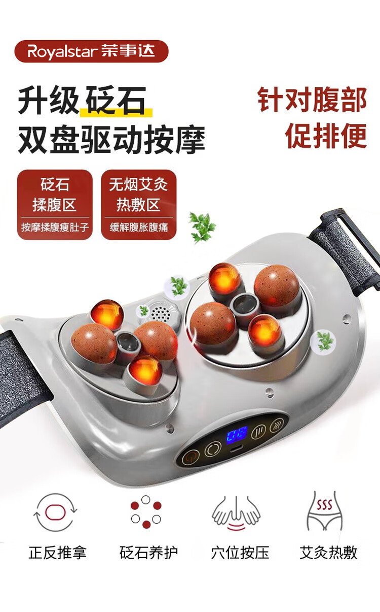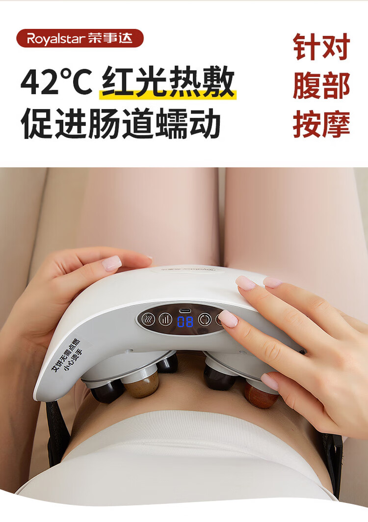荣事达(Royalstar)电动经络刷砭石揉腹仪按摩仪器全身通用智能加热震动筋络神器七夕情人节礼物送男友女友老婆 单盘特价款丨正反揉捏+三档力度