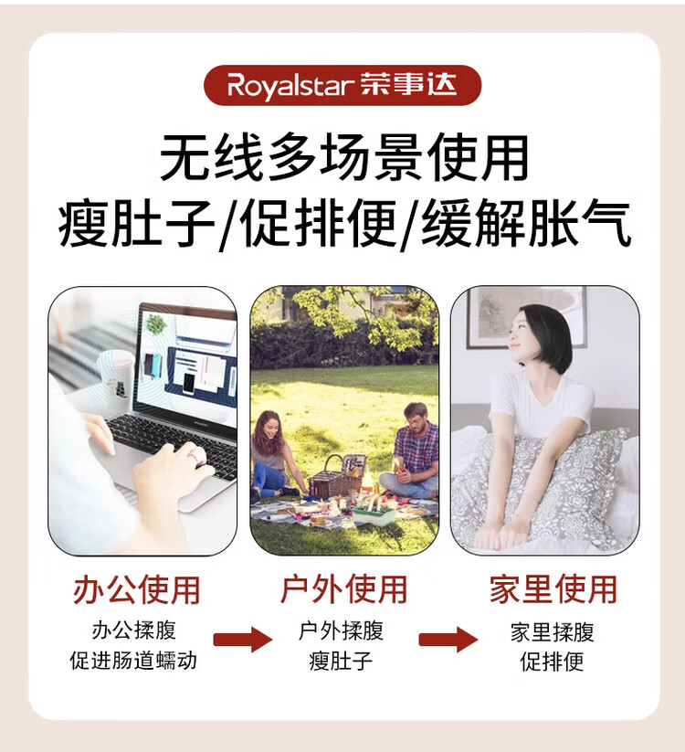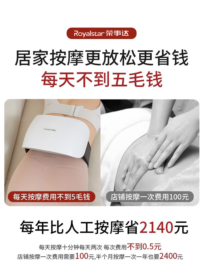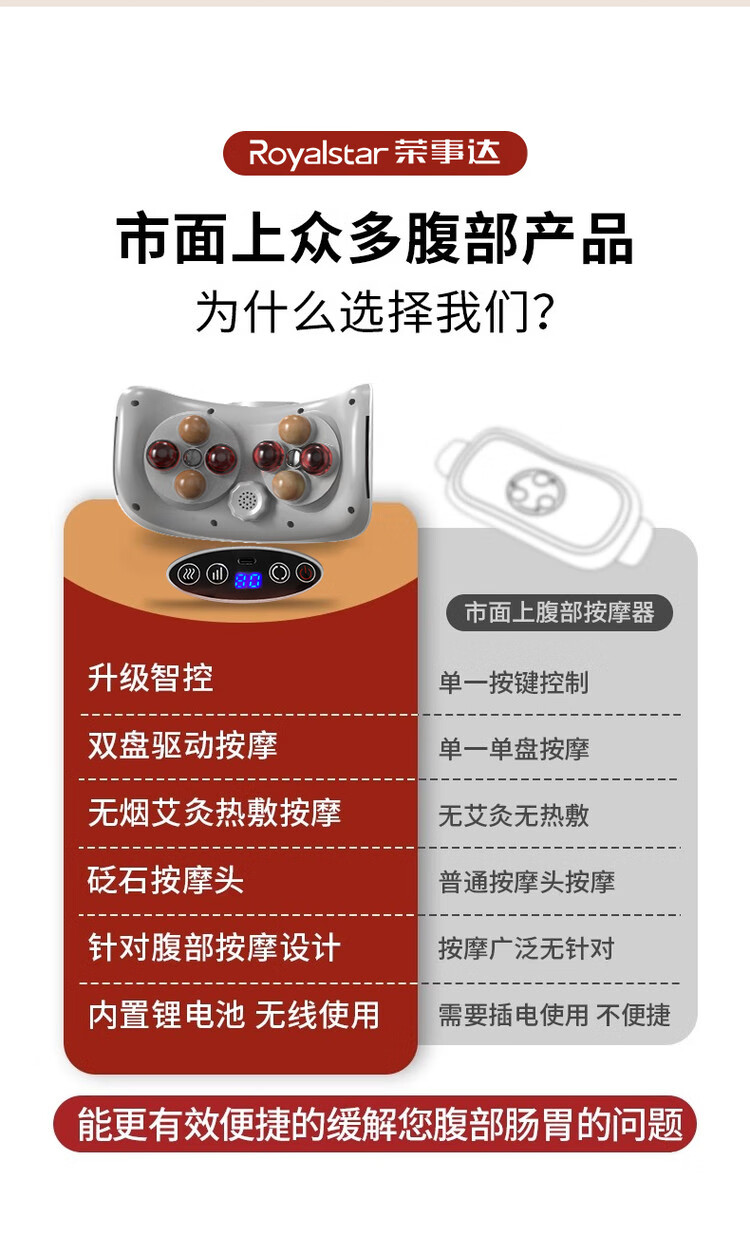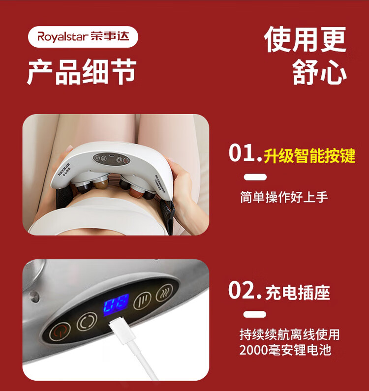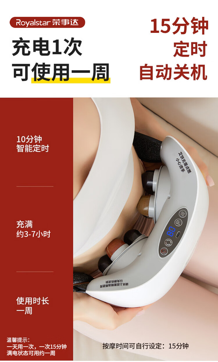 荣事达(Royalstar)电动经络刷砭石揉腹仪按摩仪器全身通用智能加热震动筋络神器七夕情人节礼物送男友女友老婆 单盘特价款丨正反揉捏+三档力度