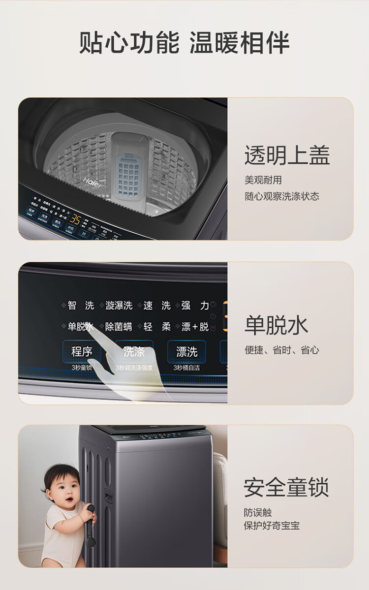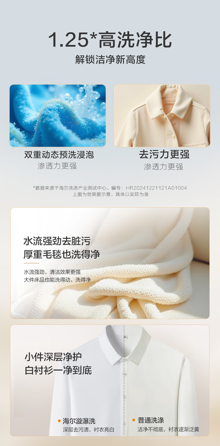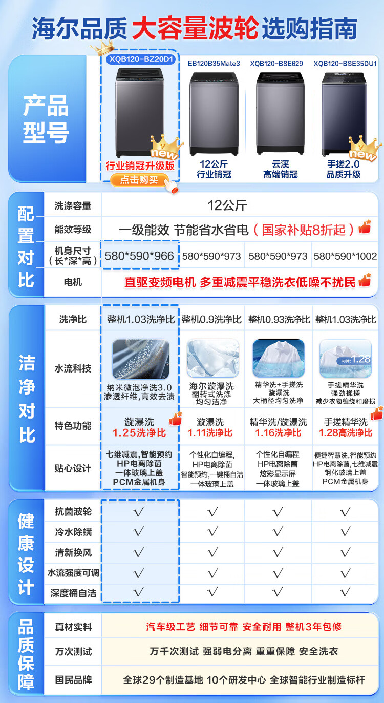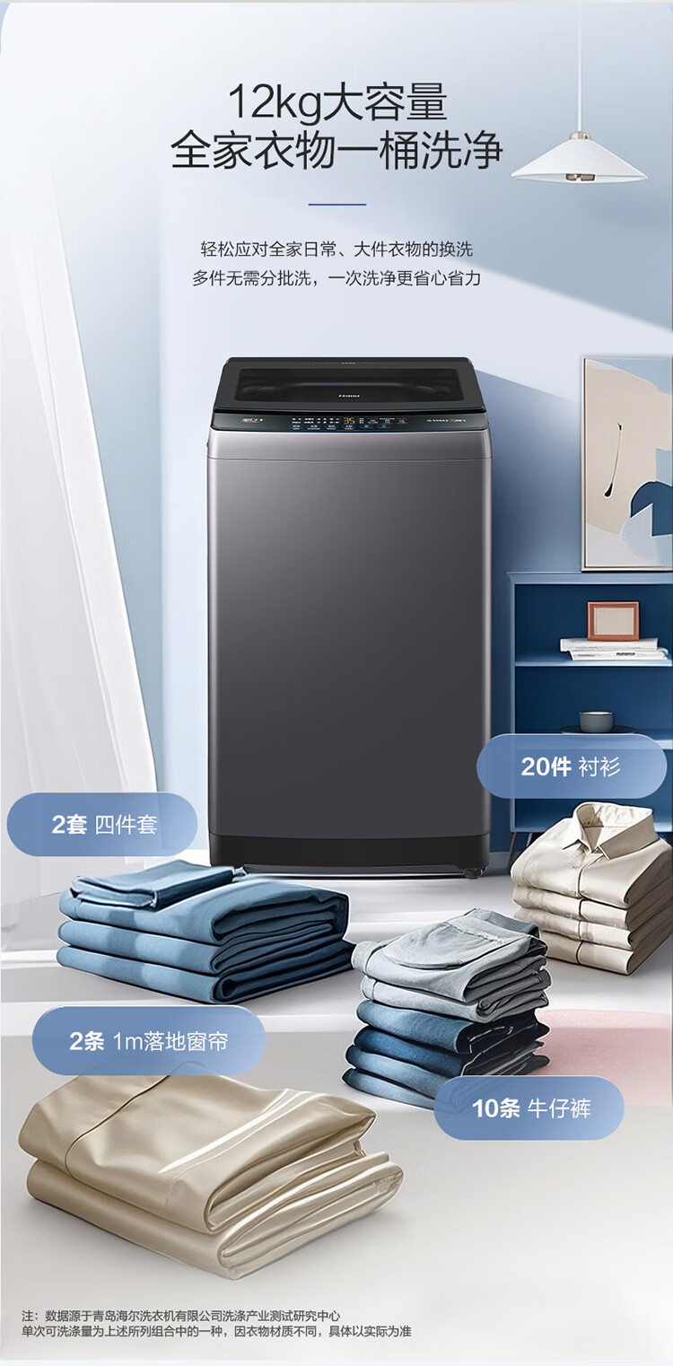 海尔(Haier)波轮洗衣机全自动懒人家用12公斤大容量直驱变频一级能效除菌漩瀑洗1.25洗净比 BZ20D1国家补贴20%