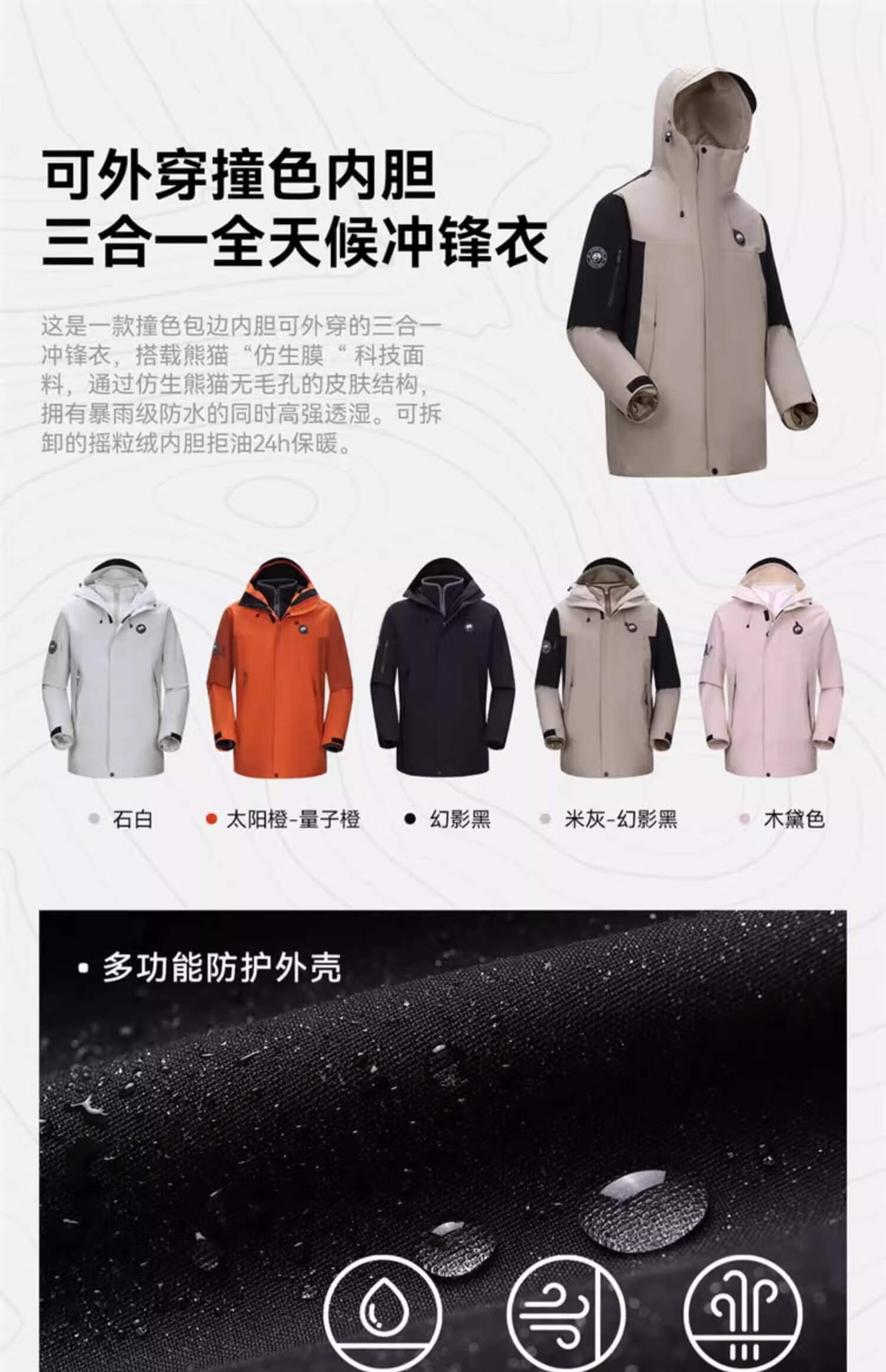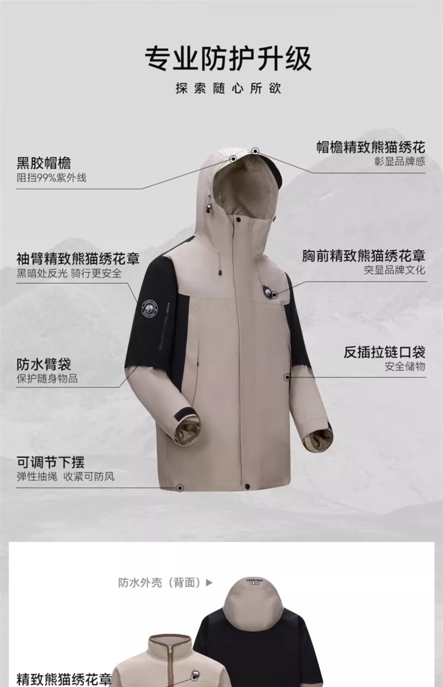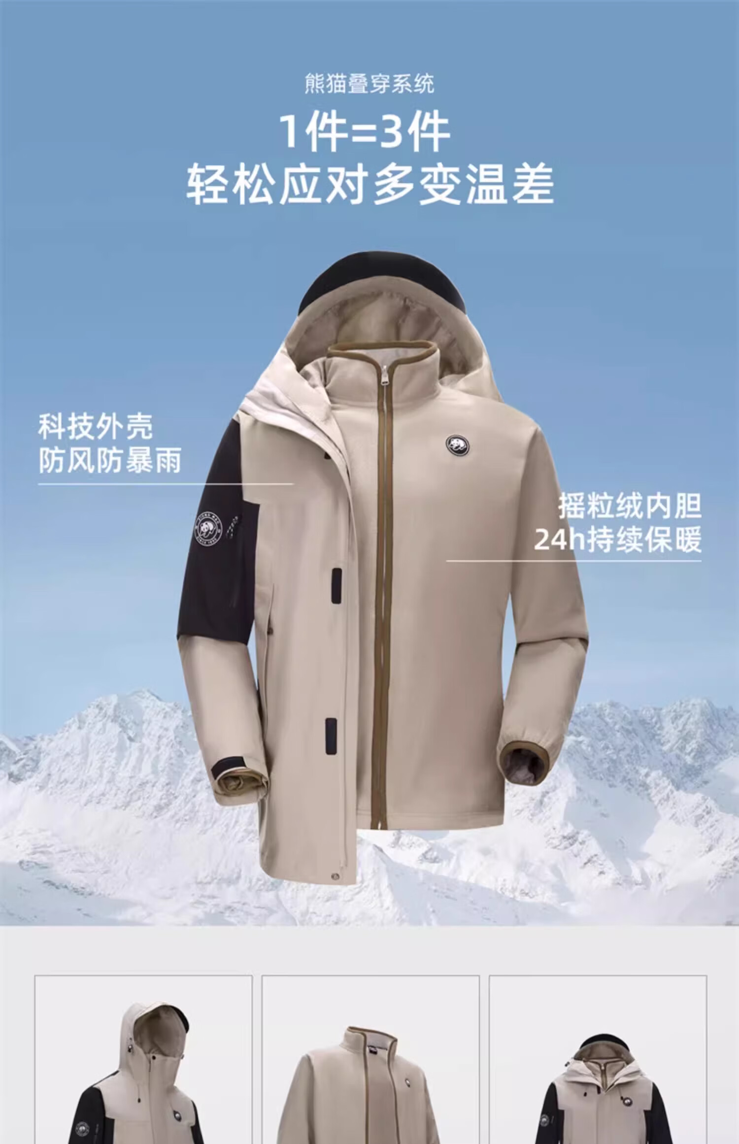 骆驼(CAMEL)熊猫户外冲锋衣男女2025年冬季防风防寒旅行抓绒三合一登山服