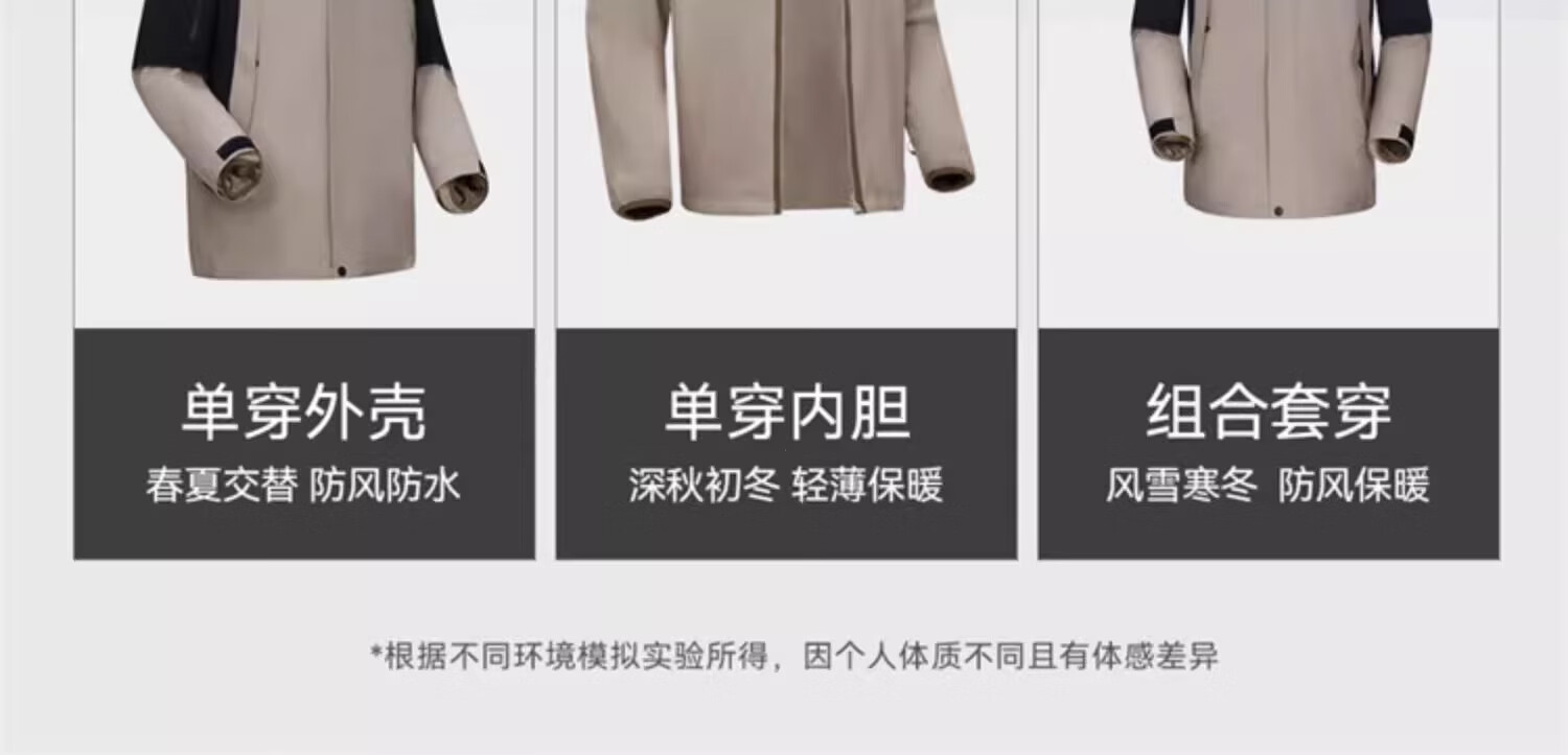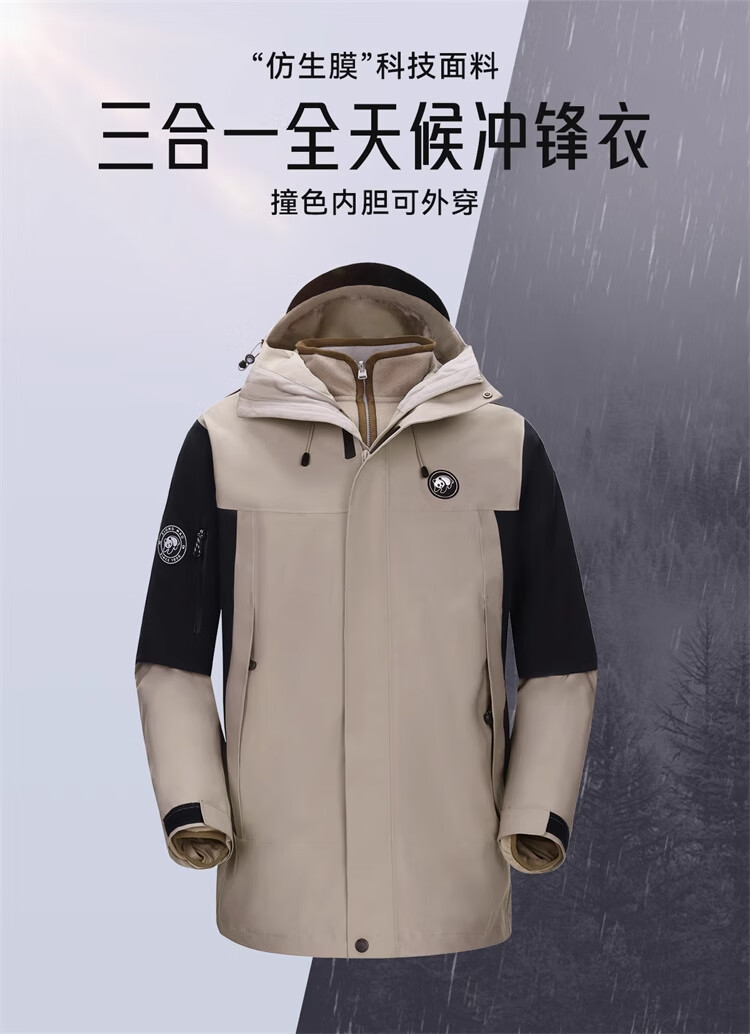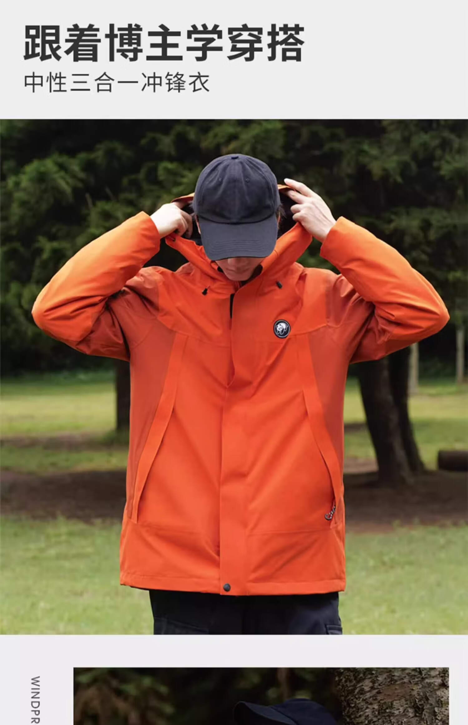 骆驼(CAMEL)熊猫户外冲锋衣男女2025年冬季防风防寒旅行抓绒三合一登山服