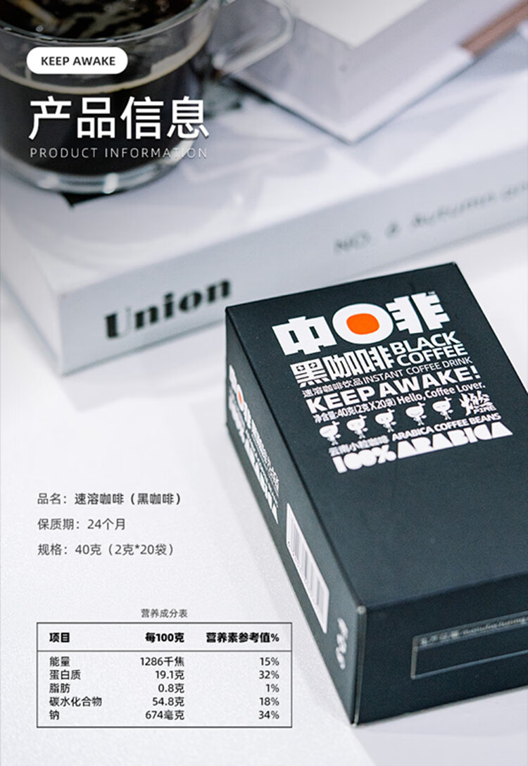 中啡(ZHONGFEI)美式纯黑咖啡速溶未添加蔗糖云南小粒咖啡经典黑咖20袋40克