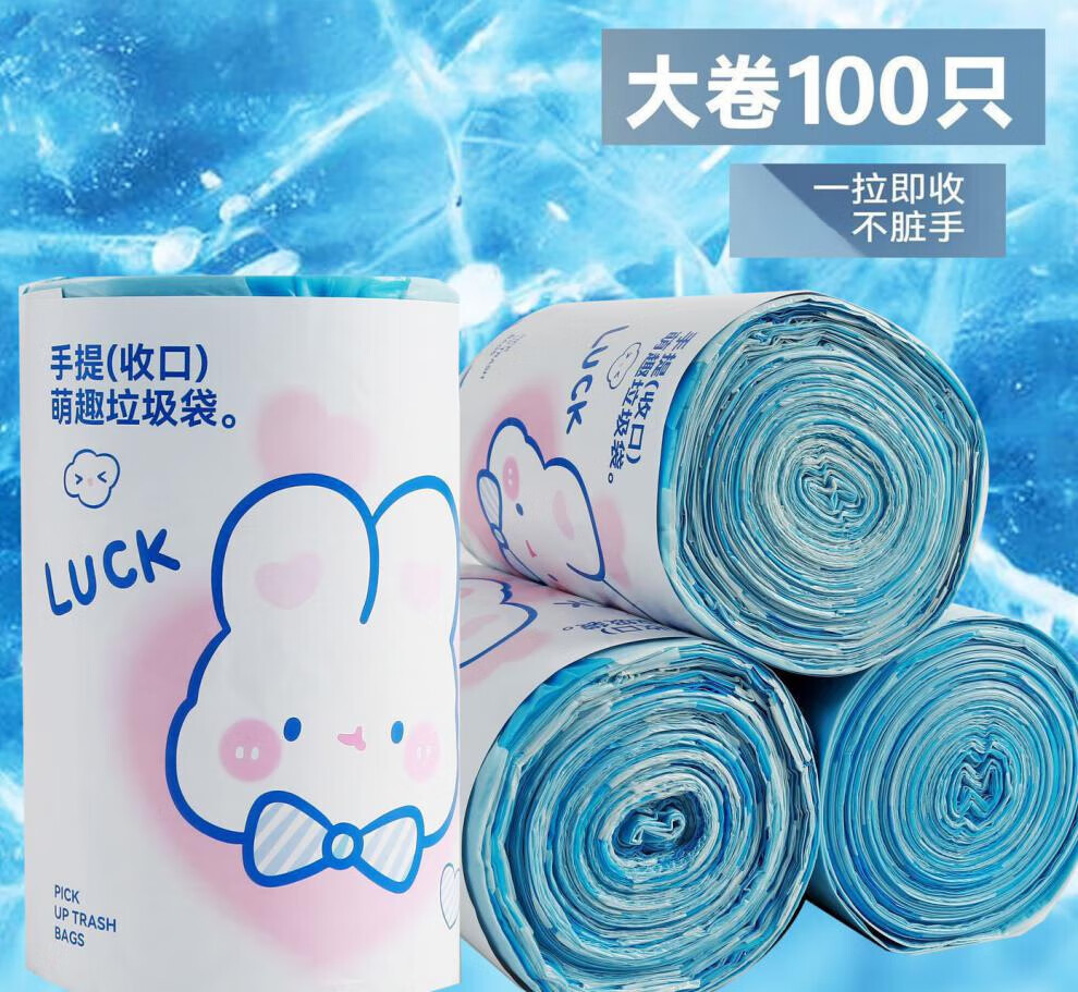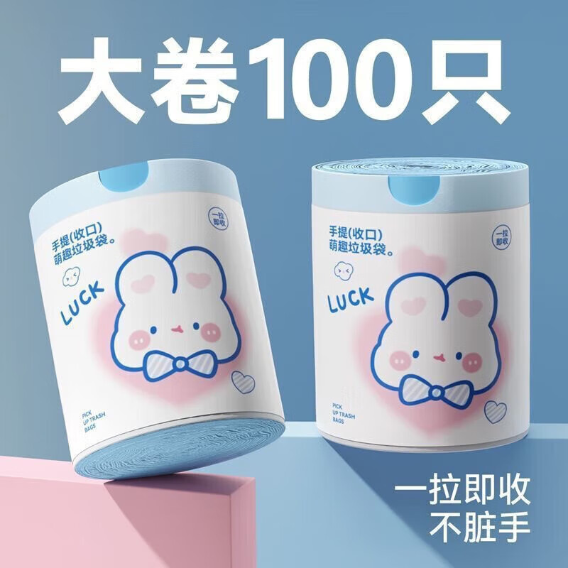 房车用品抽绳式高颜值家用厨房手提式一次性加厚点断抽绳垃圾袋 抽绳垃圾袋【100只装1卷】活动