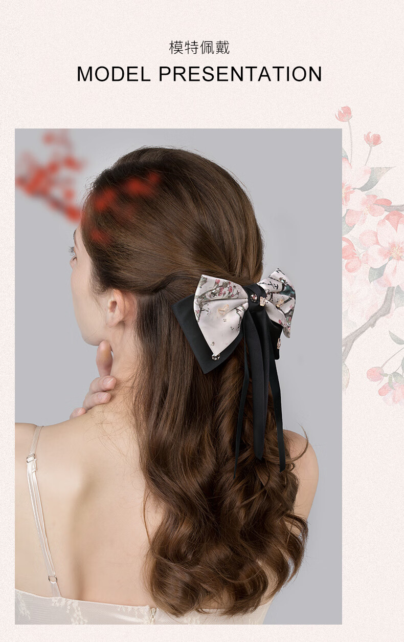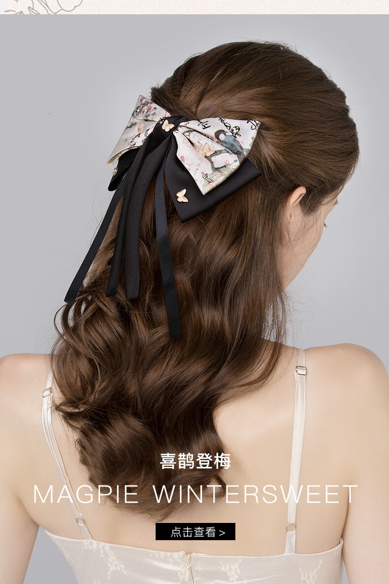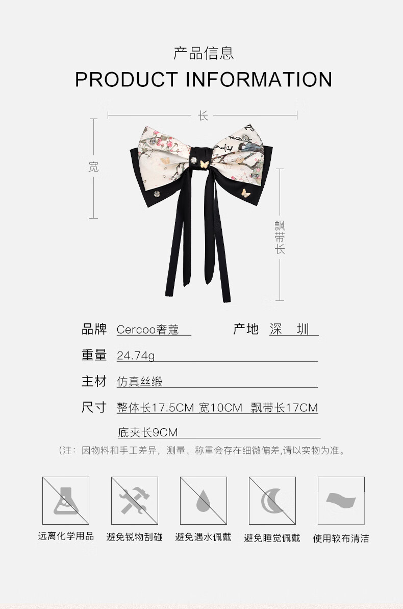 奢蔻(Cercoo)喜鹊登梅新中式蝴蝶结流苏发夹马尾半夹后脑勺头发饰送女朋友礼物