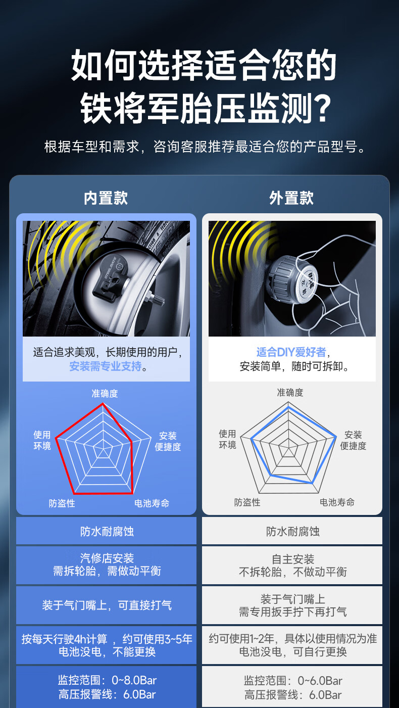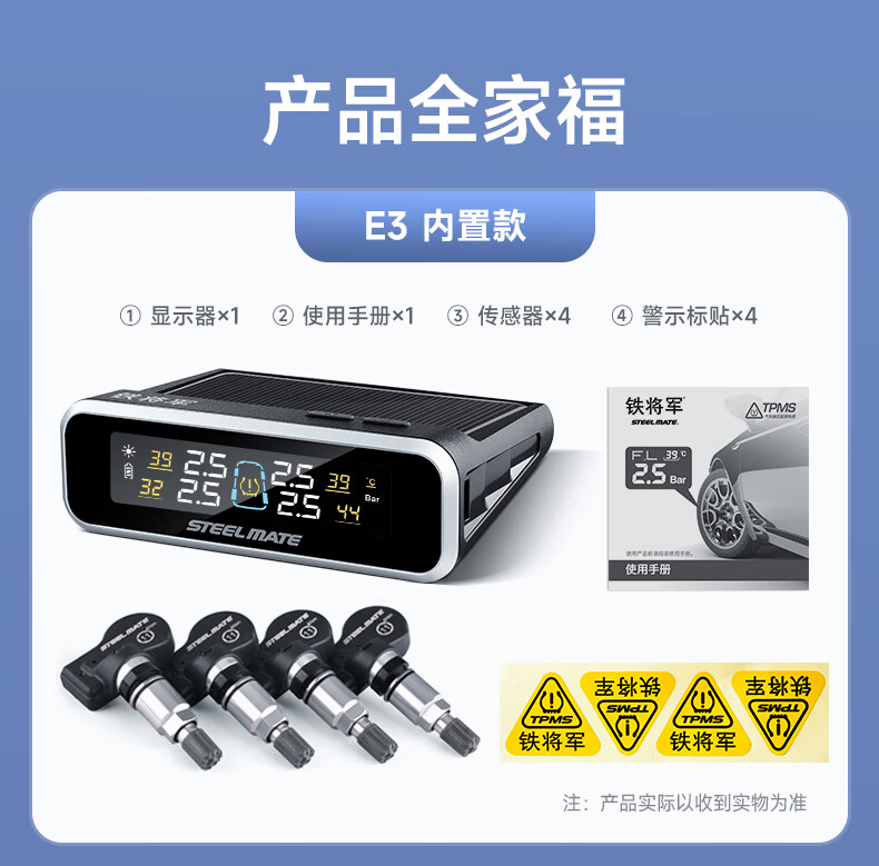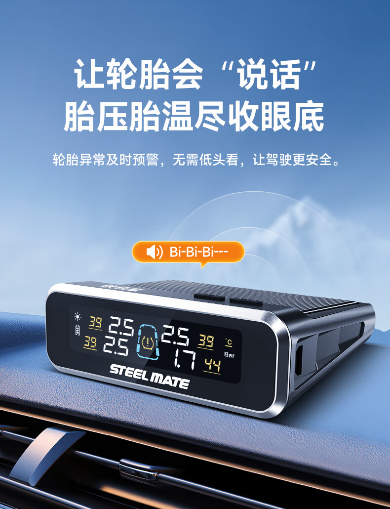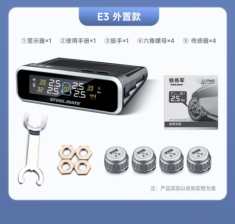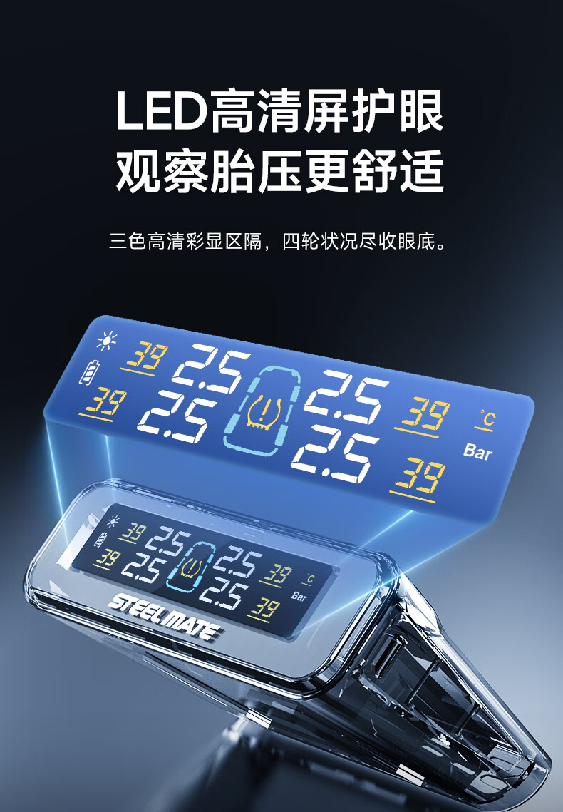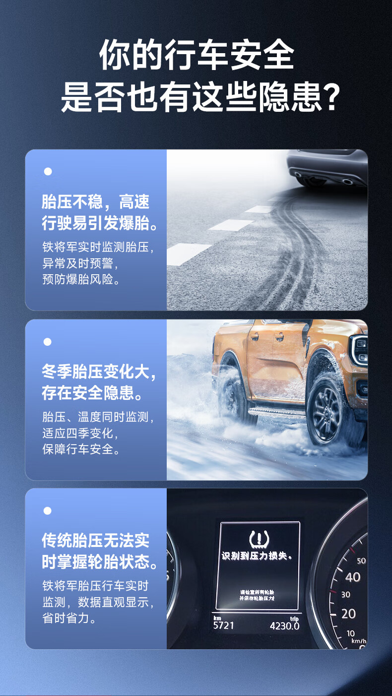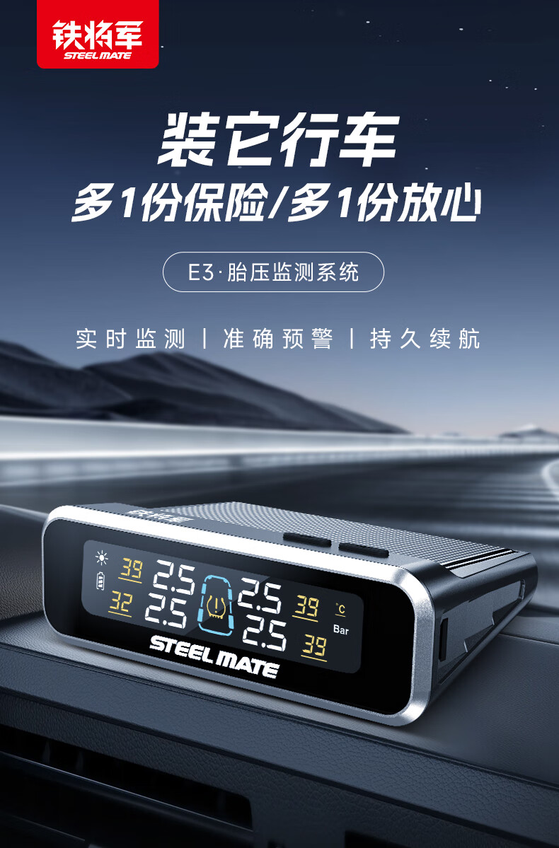 铁将军汽车胎压监测器胎压胎温同显实时轮胎检测彩屏太阳能无线E3外置款