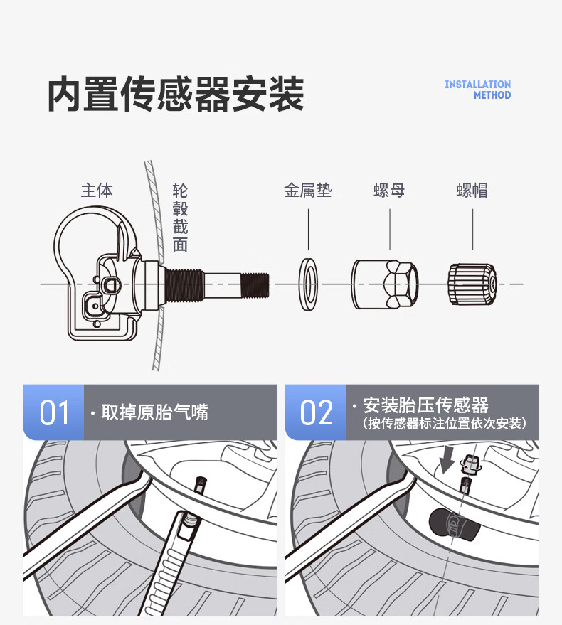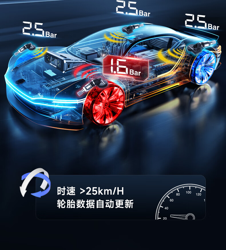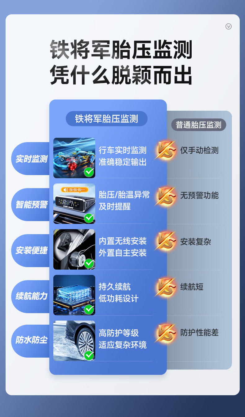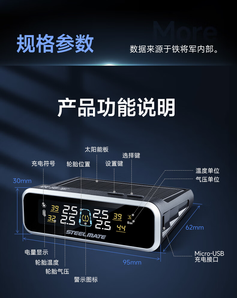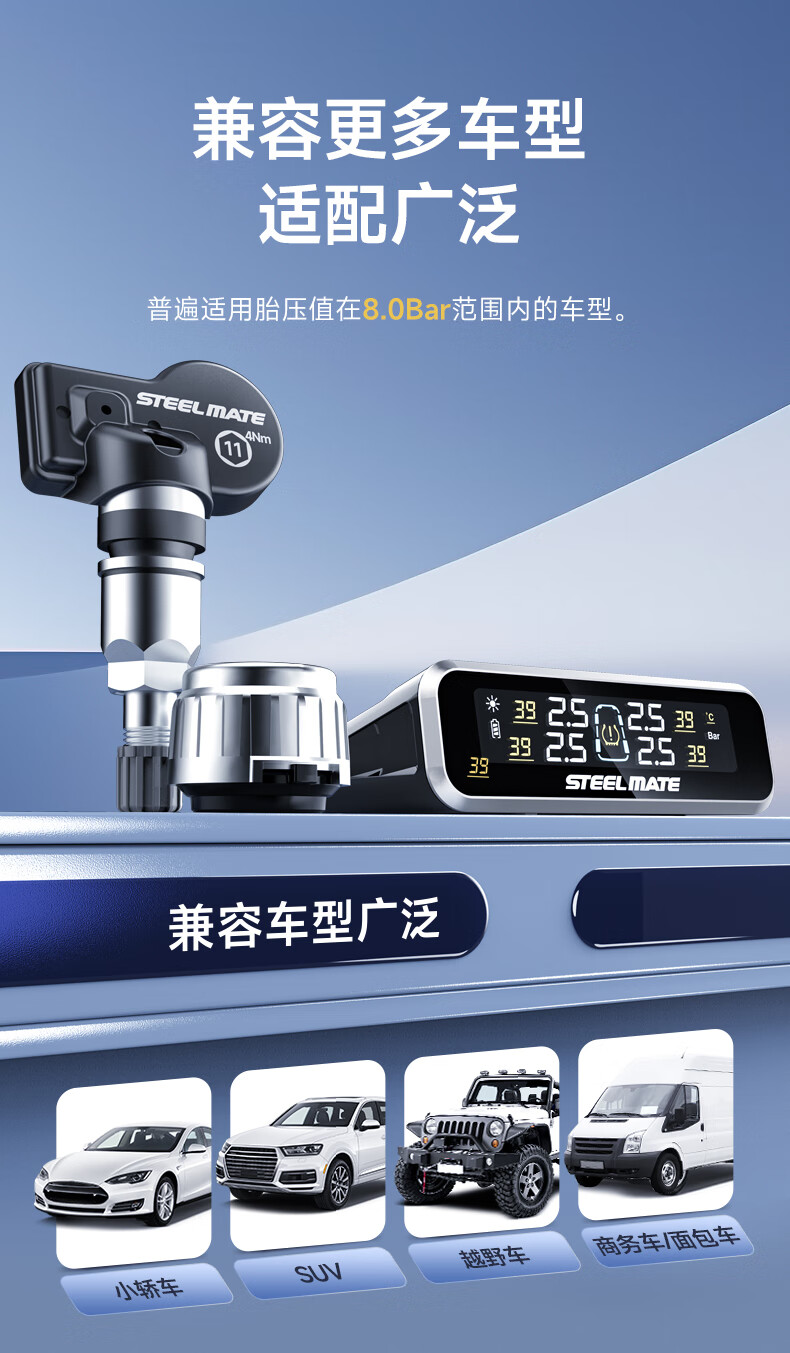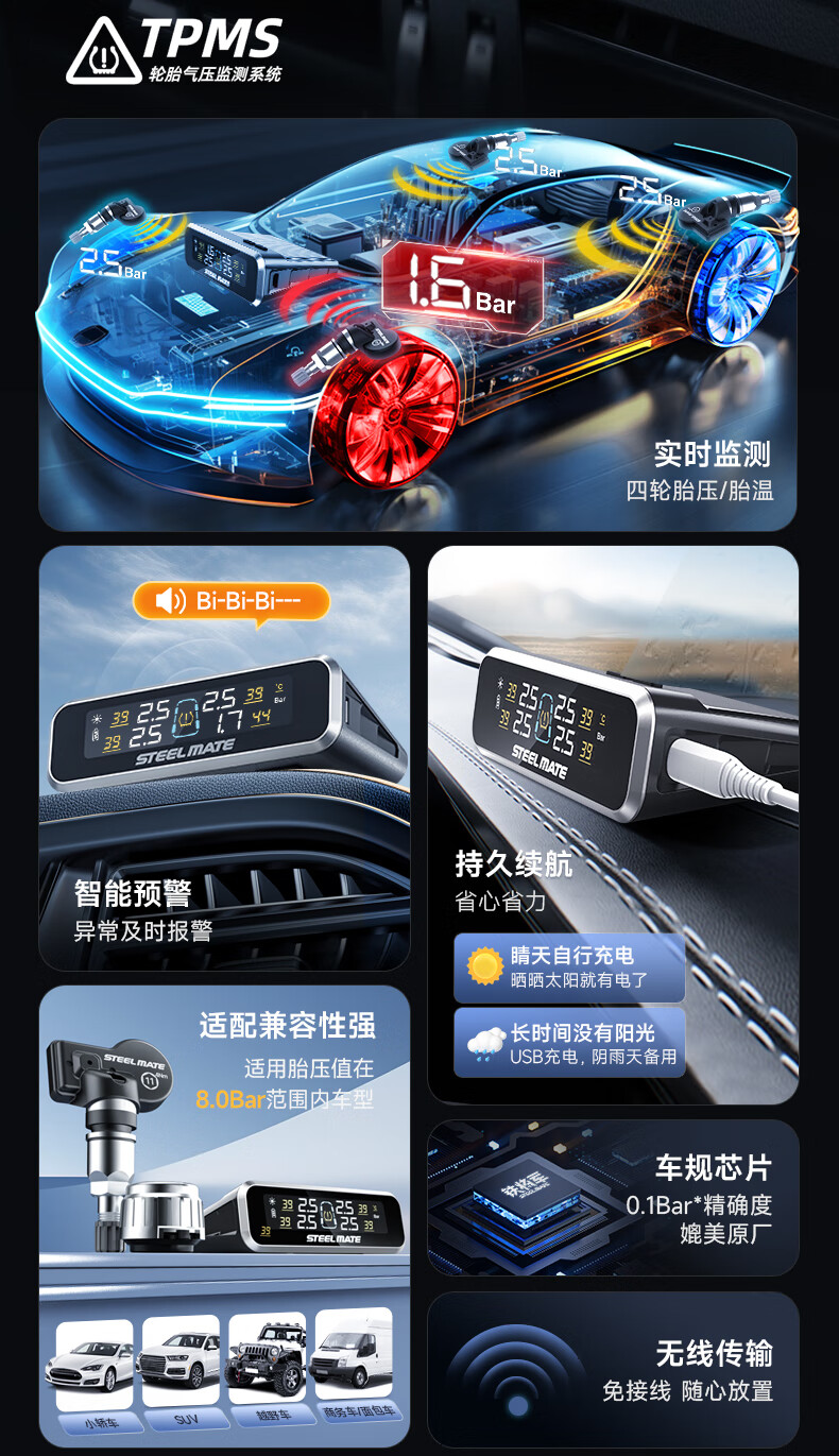 铁将军汽车胎压监测器胎压胎温同显实时轮胎检测彩屏太阳能无线E3外置款