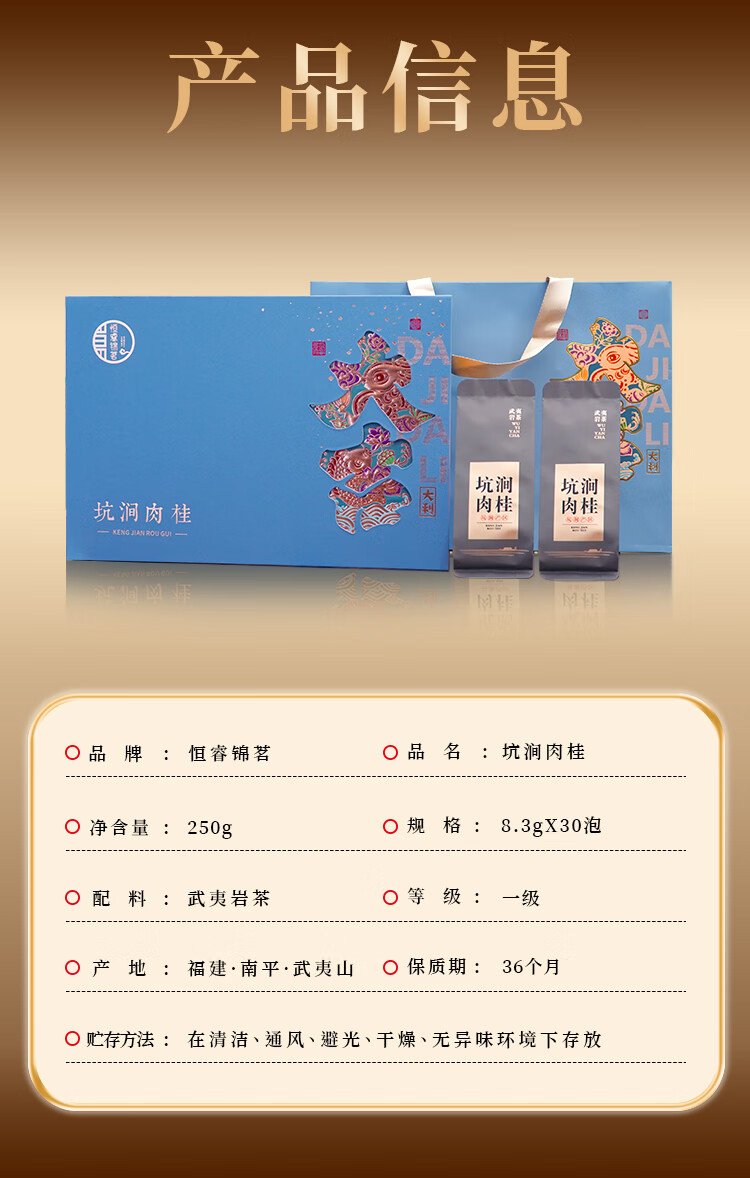 恒睿锦茗武夷岩茶坑涧肉桂茶礼盒装250g浓香型乌龙茶送礼自己喝送长辈 【高端礼盒蓝色】清香肉桂250g
