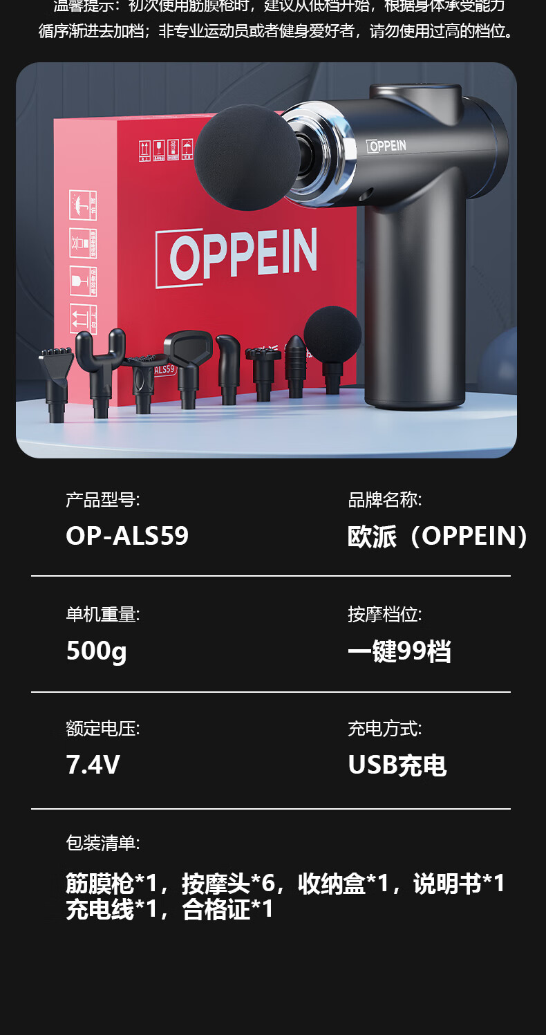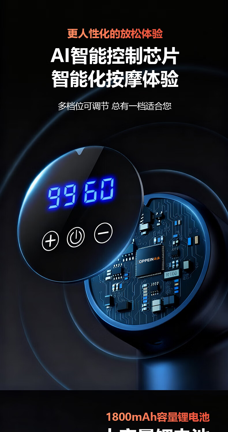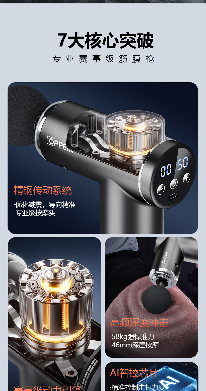 欧派(OPPEIN)筋膜枪按摩器肩颈腰背按摩仪男女肌颈膜枪专业级迷你健身肌肉放松父母亲节春节情人七夕礼物男女 【太空灰】99档+变速压感+持久续航+8种按摩头