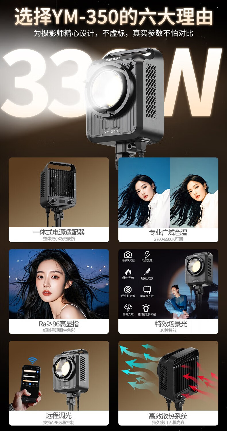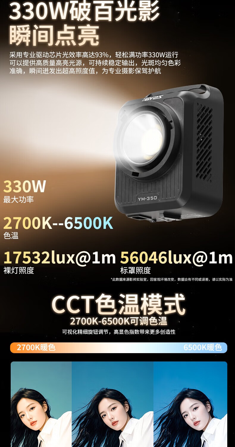 影邦330W便携式摄影补光灯个人才艺直播人像补光灯主播美颜柔光灯直播补光灯专业室内影棚拍照补光灯 YM-230黑色色标配