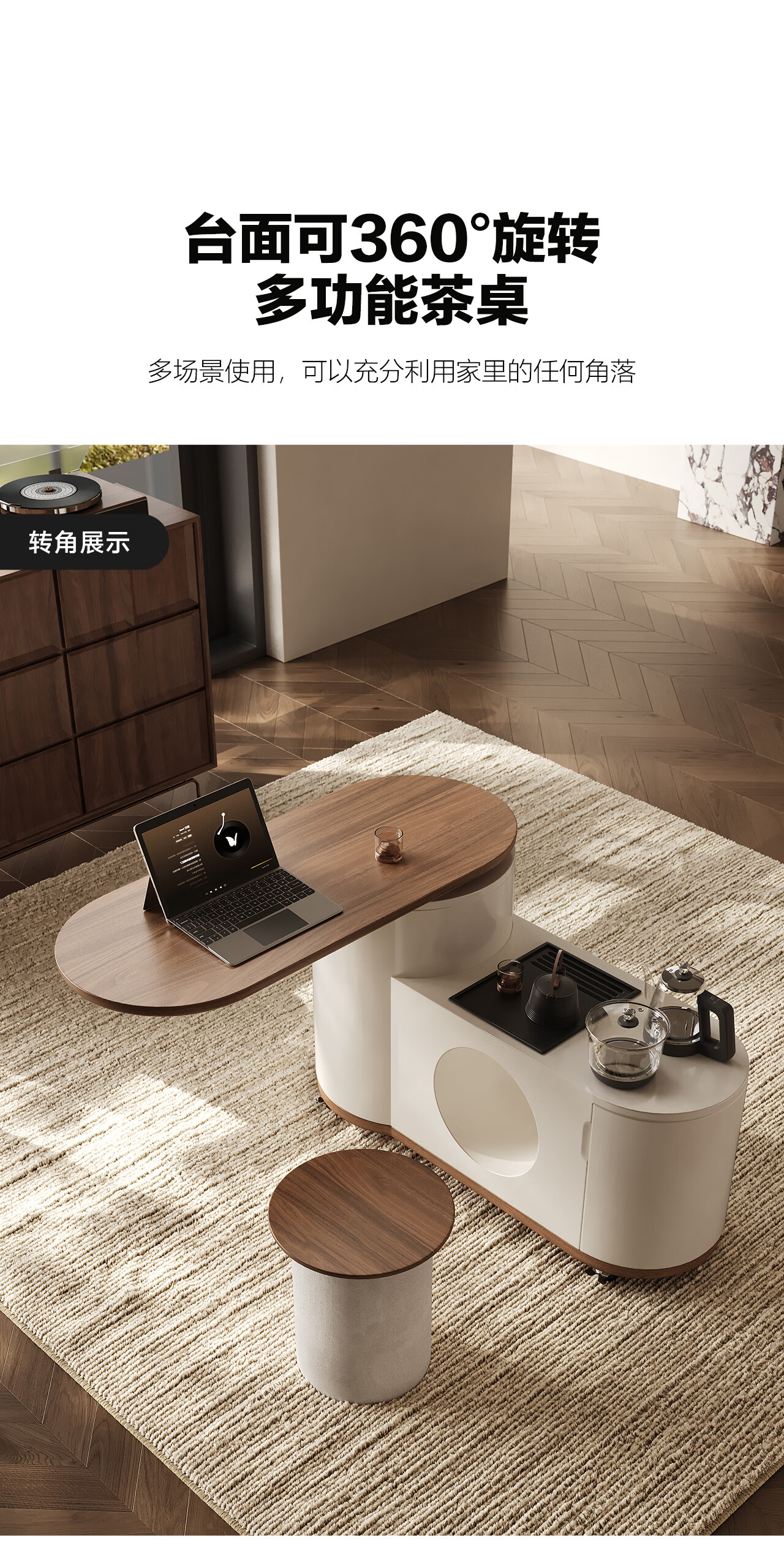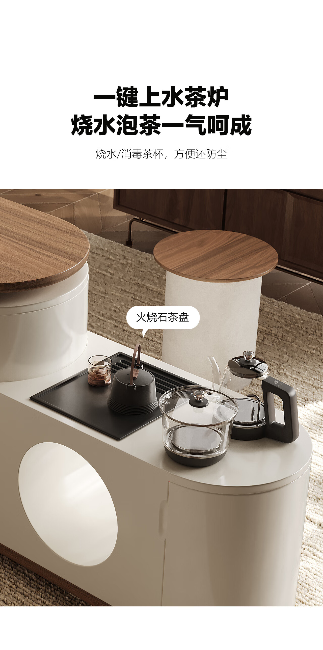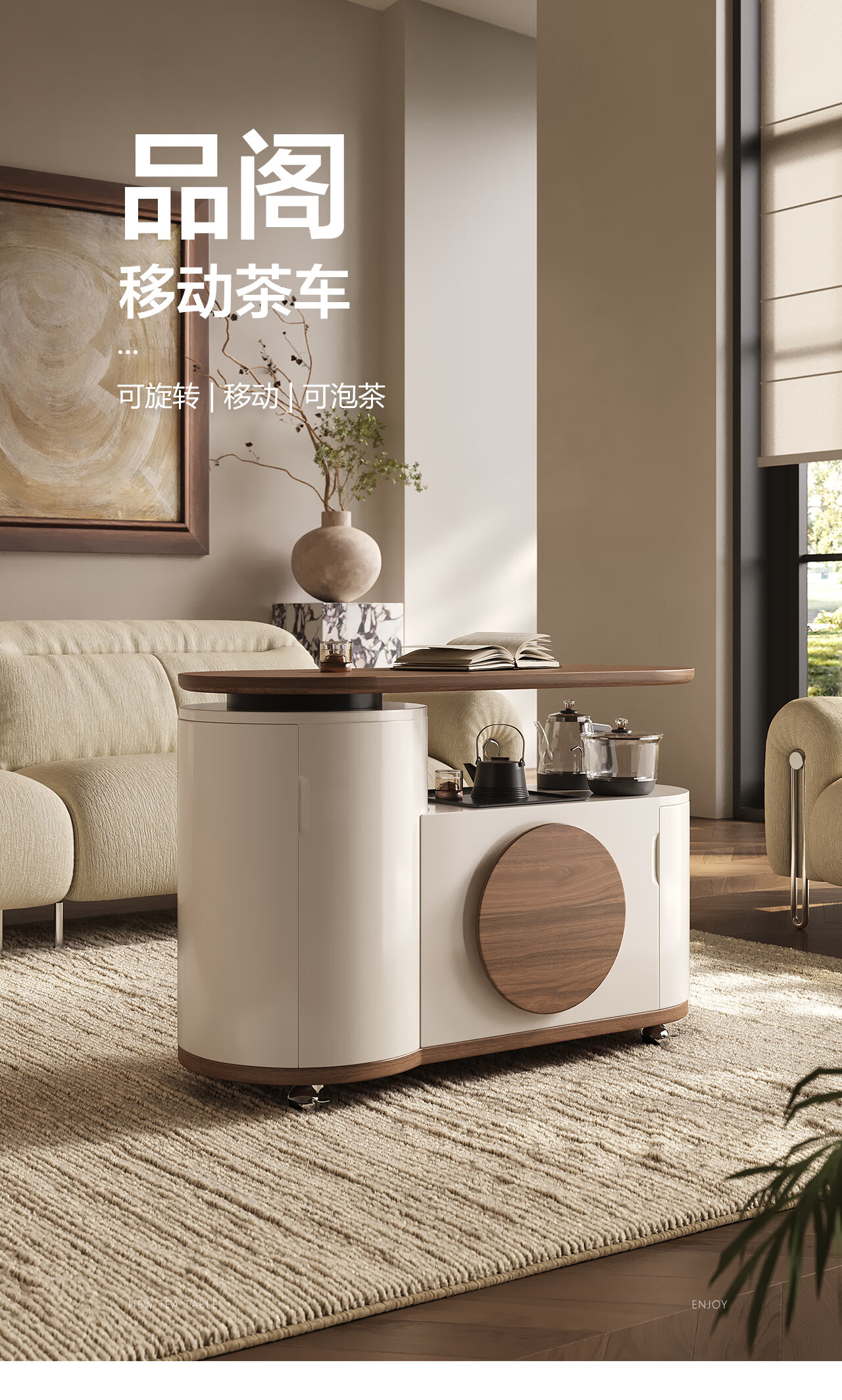 全慕(QUANMU)可移动茶台客厅家用茶几沙发边几功夫小茶车阳台泡茶小型旋转茶桌 品阁茶车【玻璃茶炉】容纳18.9L水桶 上门安装