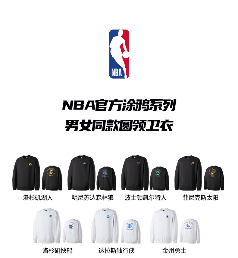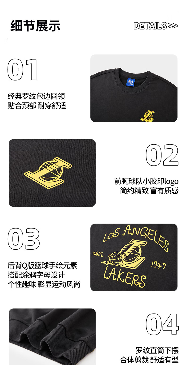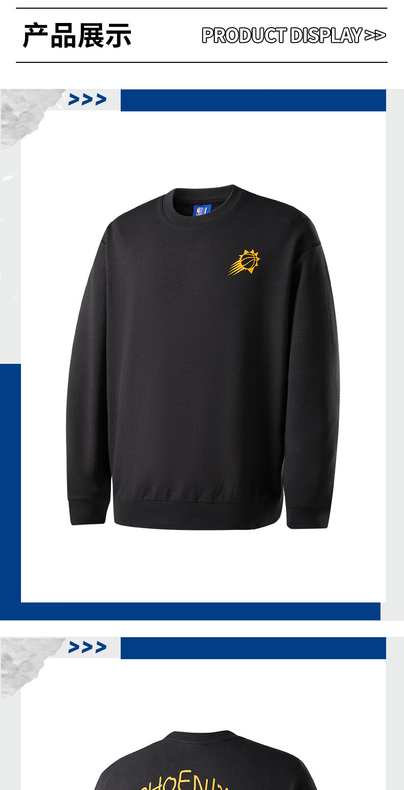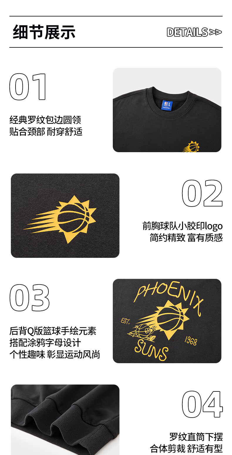 NBA官方金州勇士/湖人/太阳/快船圆领卫衣 3XL 菲尼克斯太阳/黑色