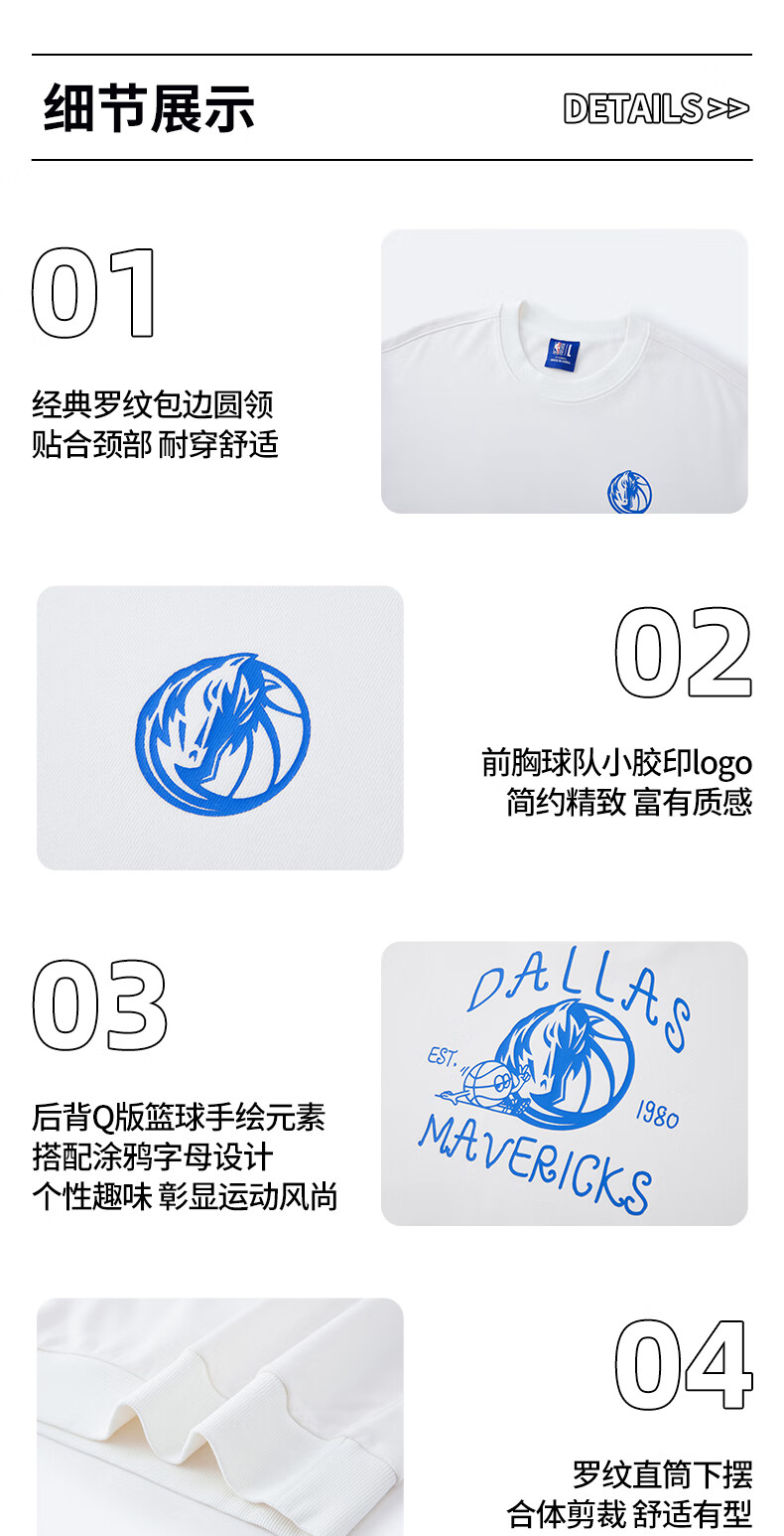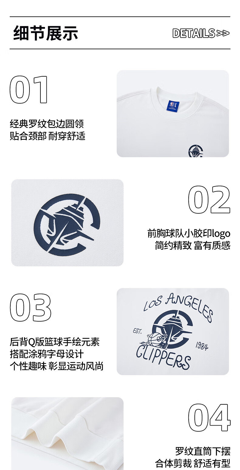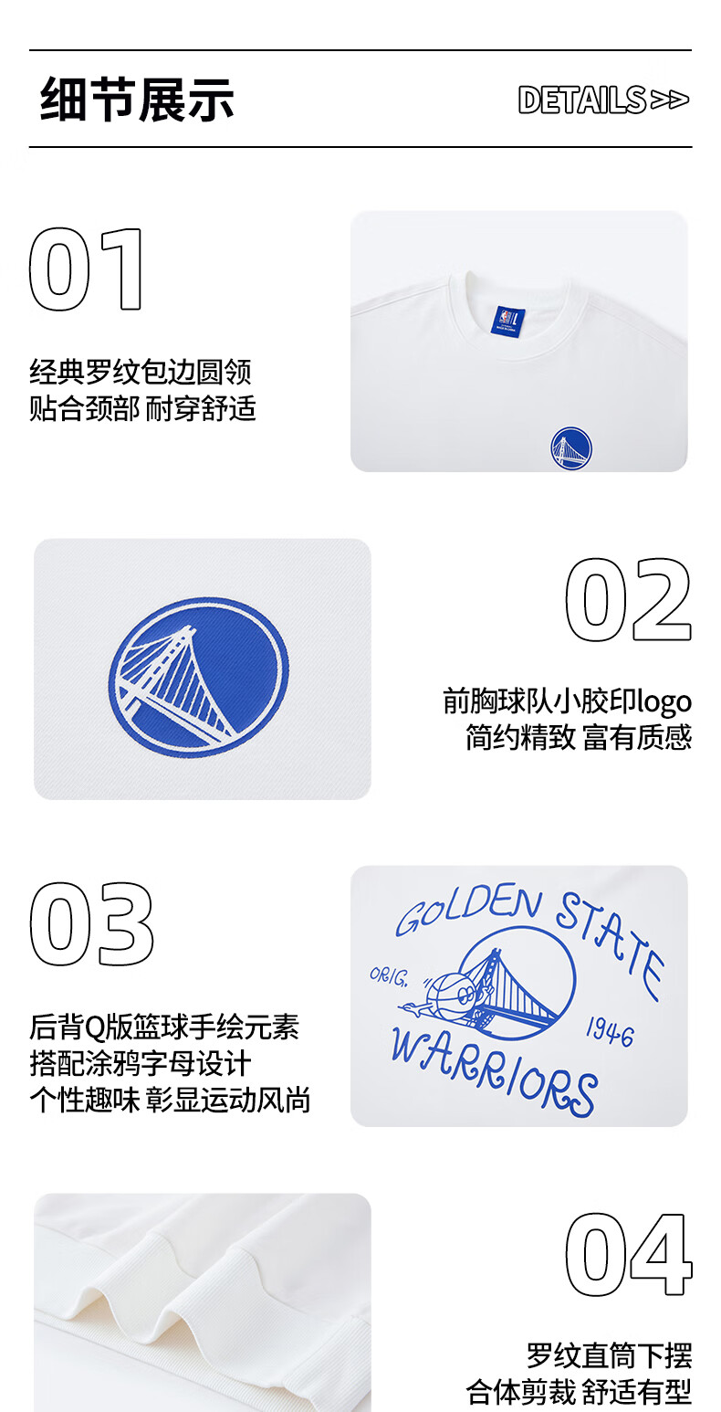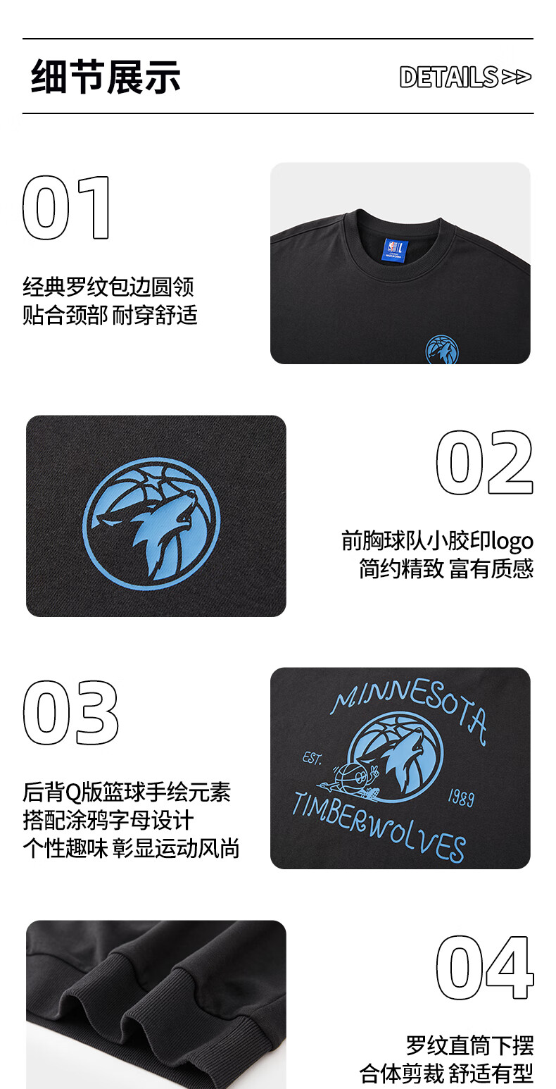NBA官方金州勇士/湖人/太阳/快船圆领卫衣 3XL 菲尼克斯太阳/黑色