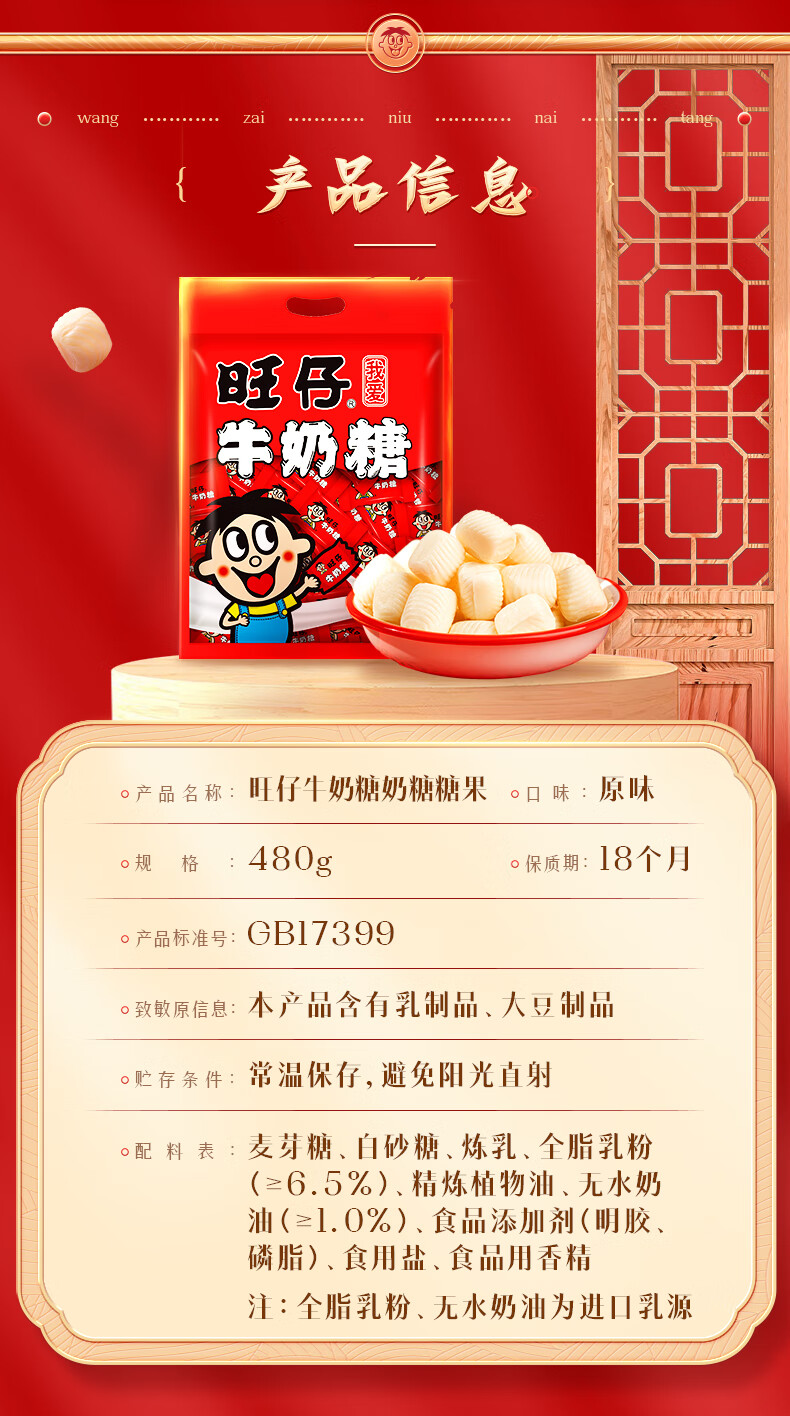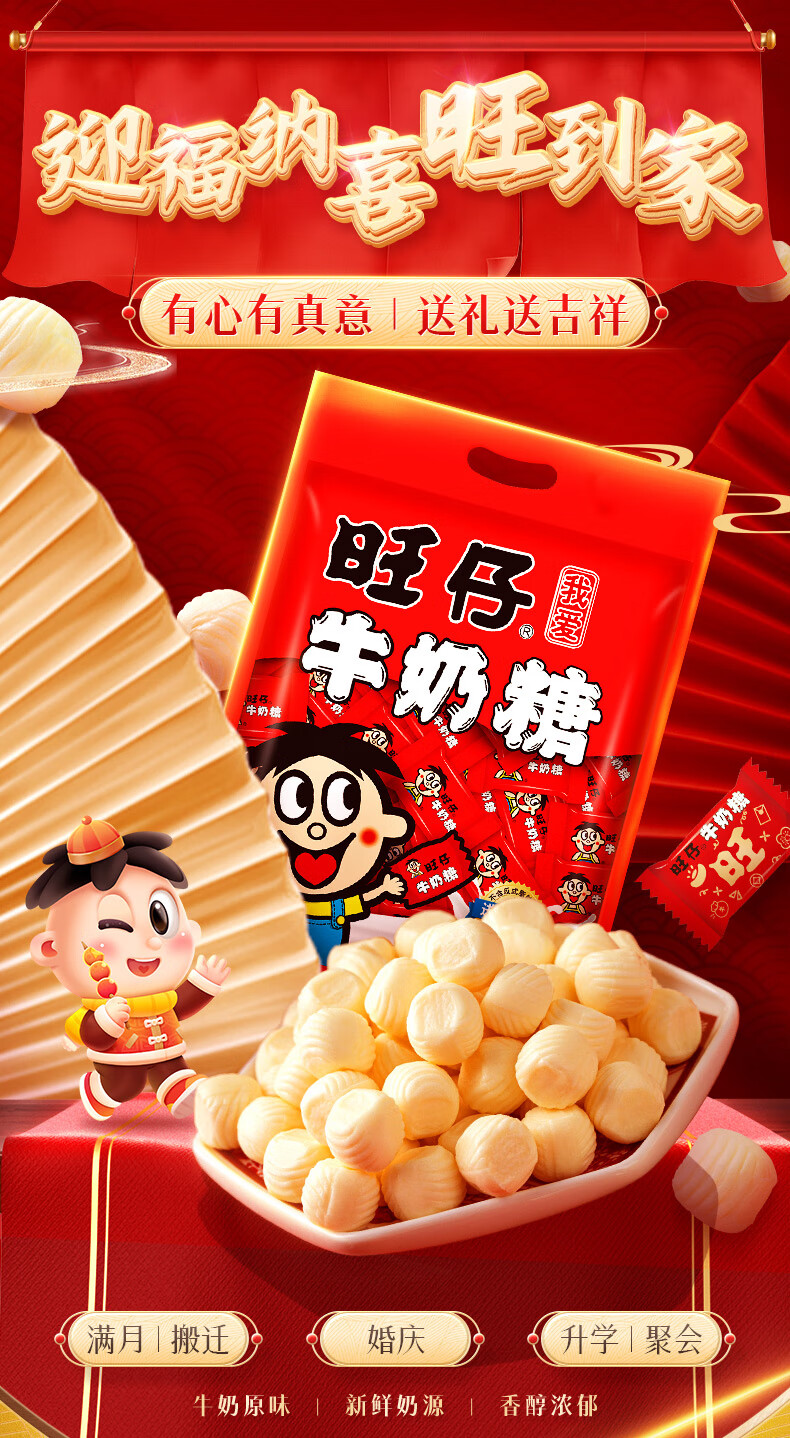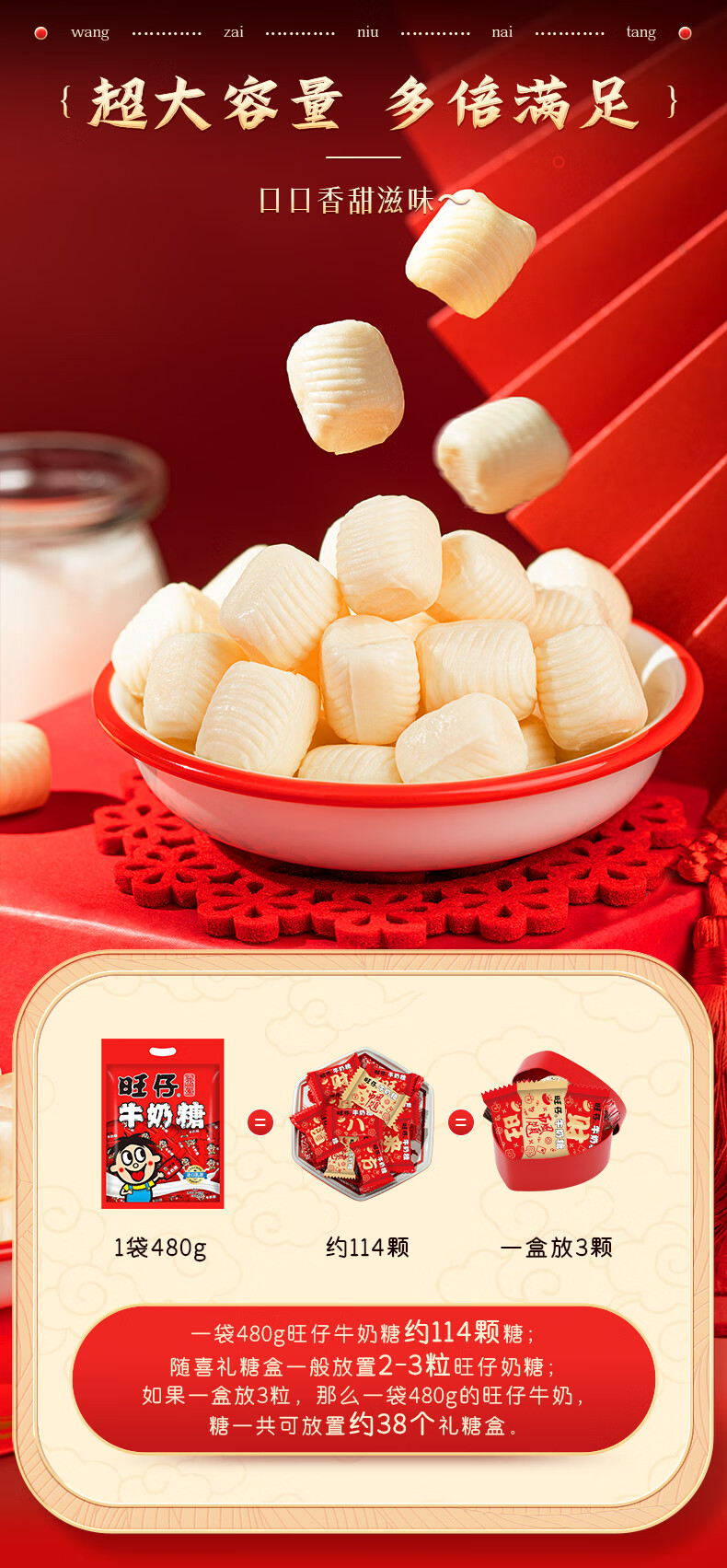 旺旺【热销百万单】旺仔牛奶糖 480g每袋约112粒 婚礼喜糖伴手礼 奶糖