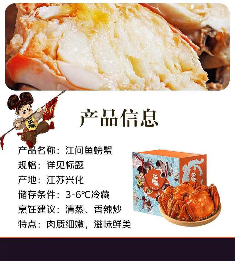 【活蟹】江问鱼 大闸蟹全母2.3两-2.6两 8只装 泰州生鲜礼盒足斤足两去绳足重