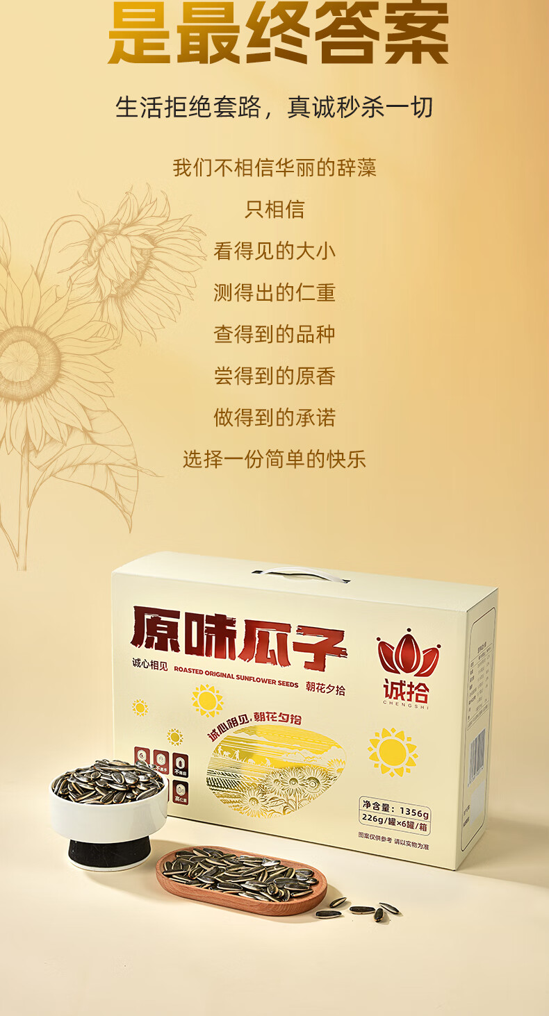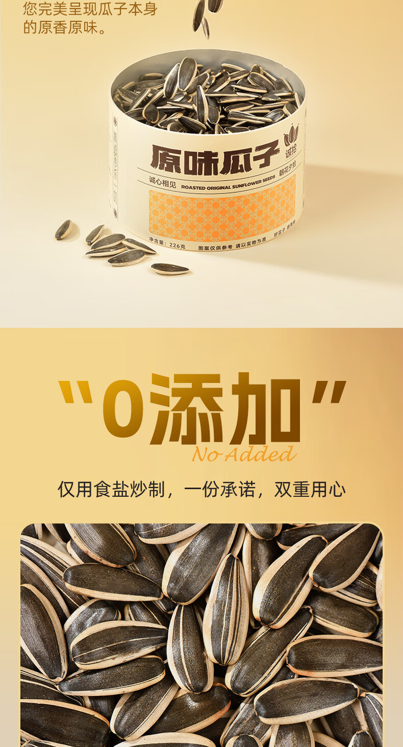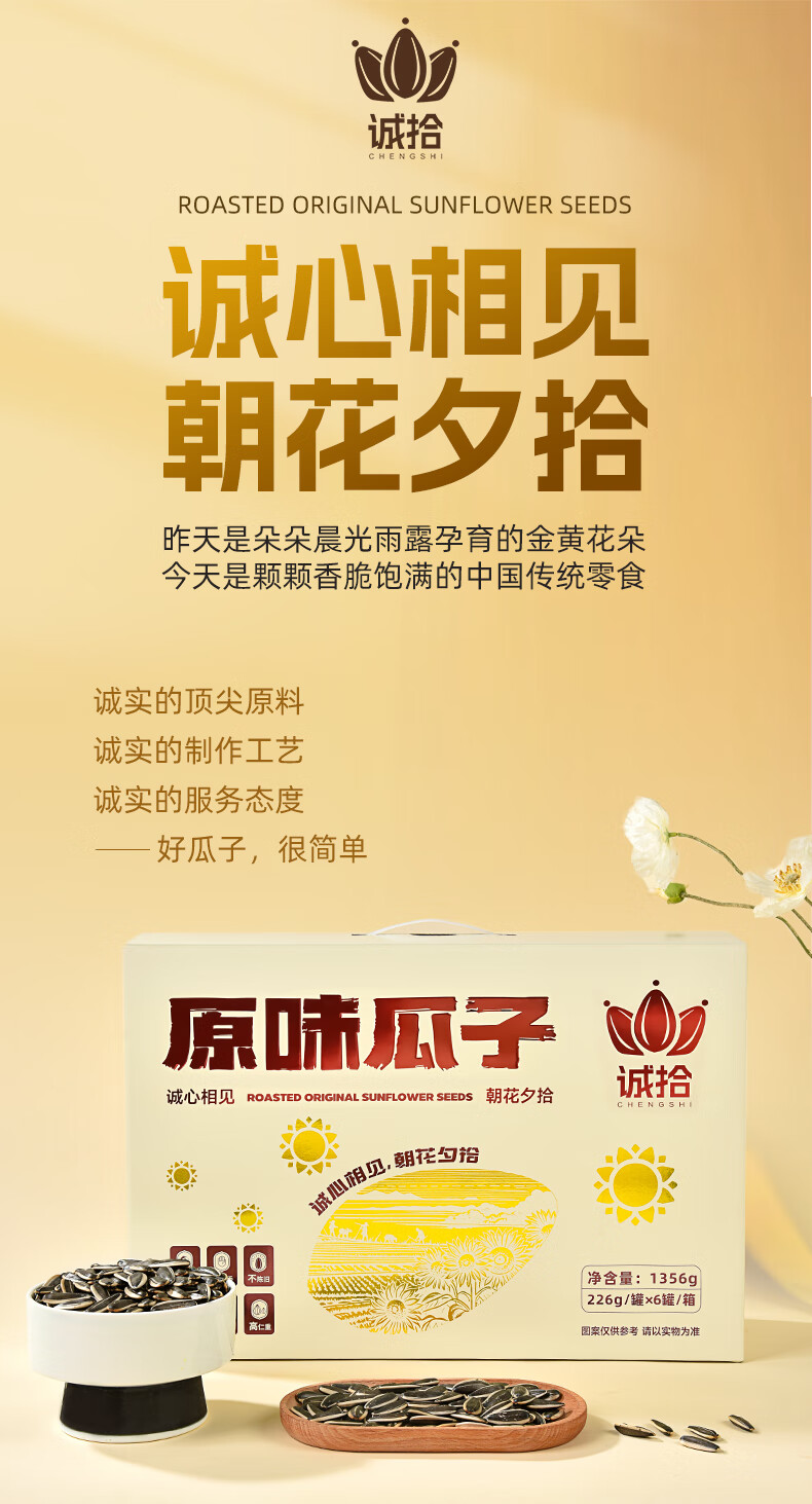 诚拾原味大颗粒瓜子葵花籽聚会休闲零食226g6罐装礼盒送礼