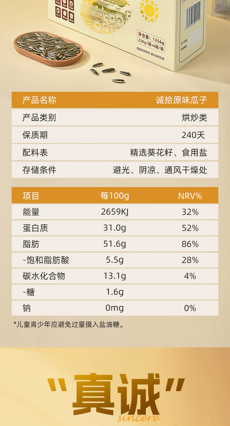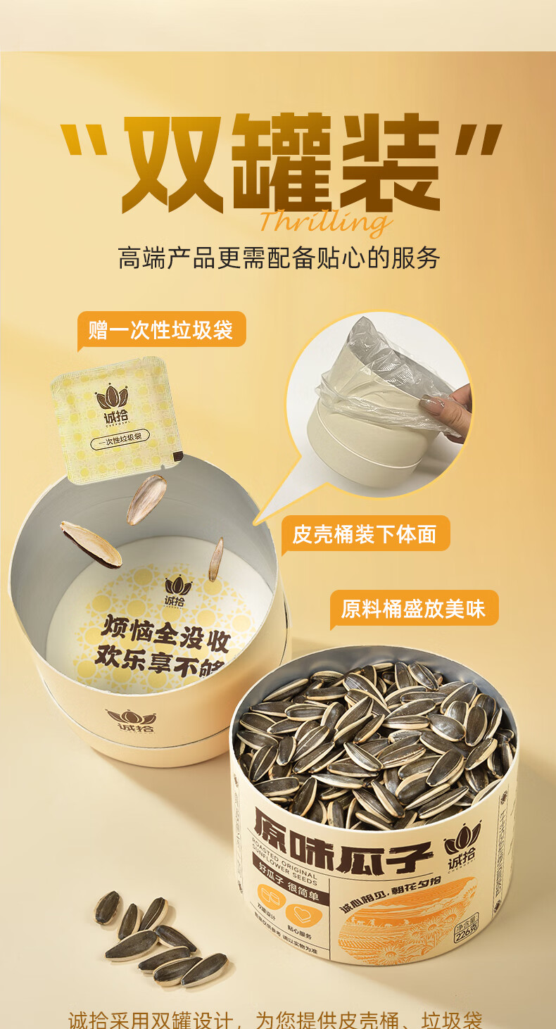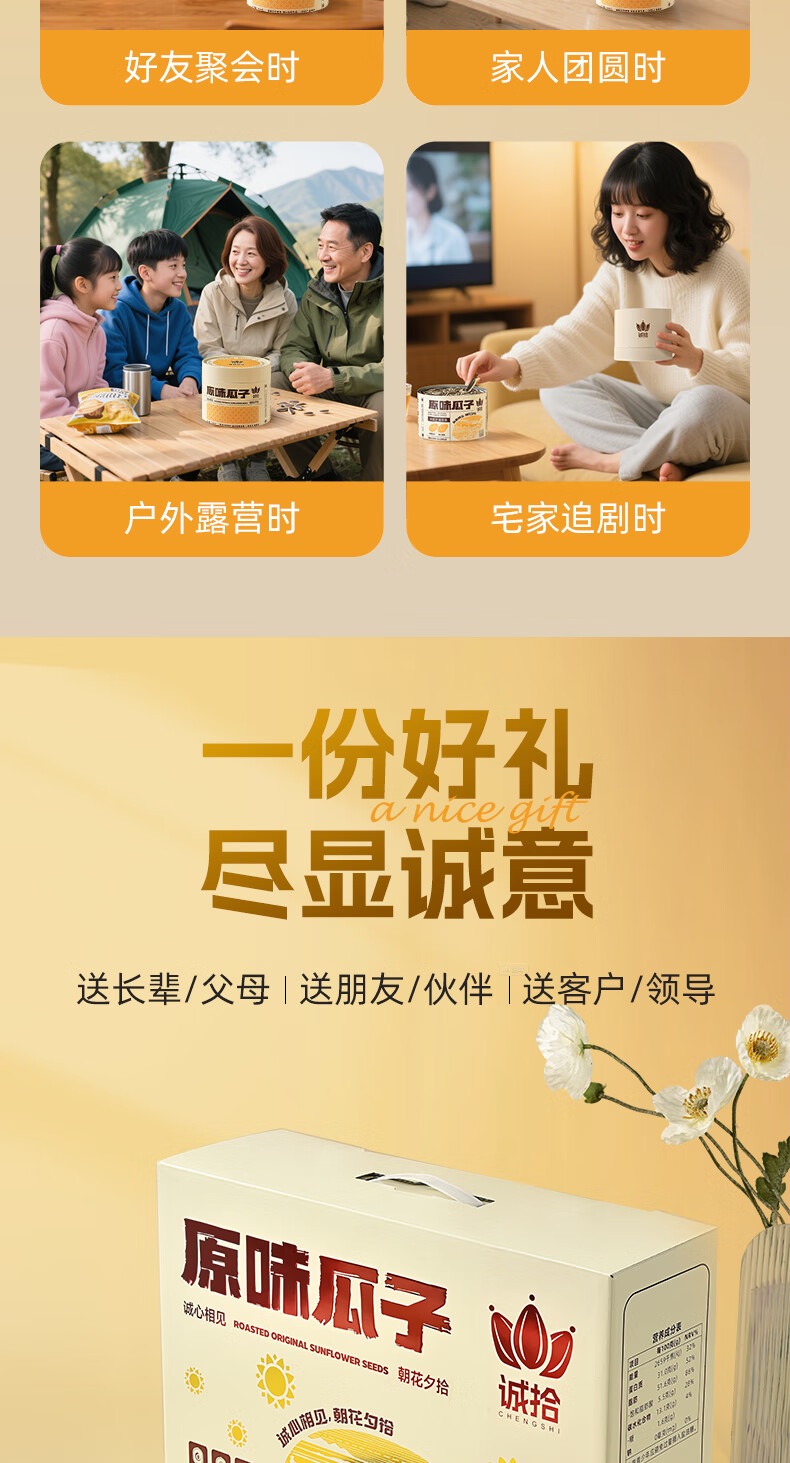 诚拾原味大颗粒瓜子葵花籽聚会休闲零食226g6罐装礼盒送礼