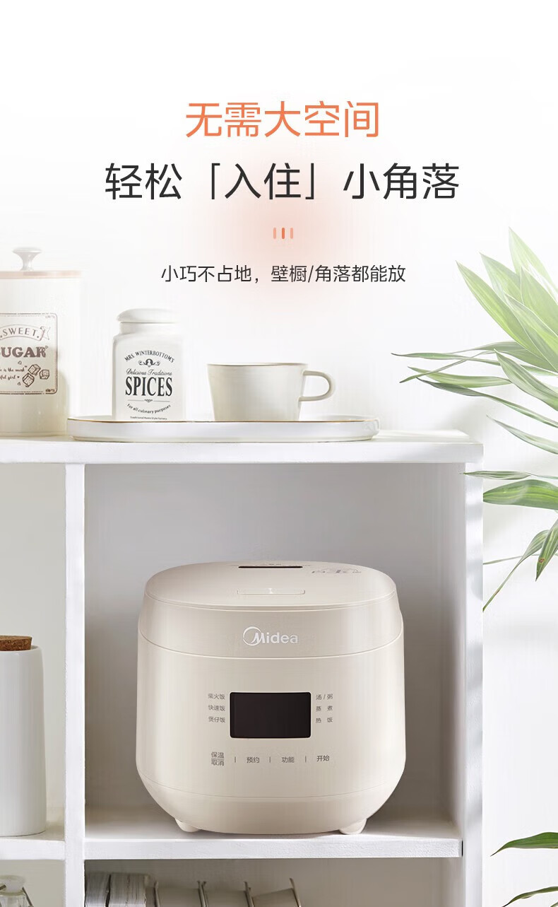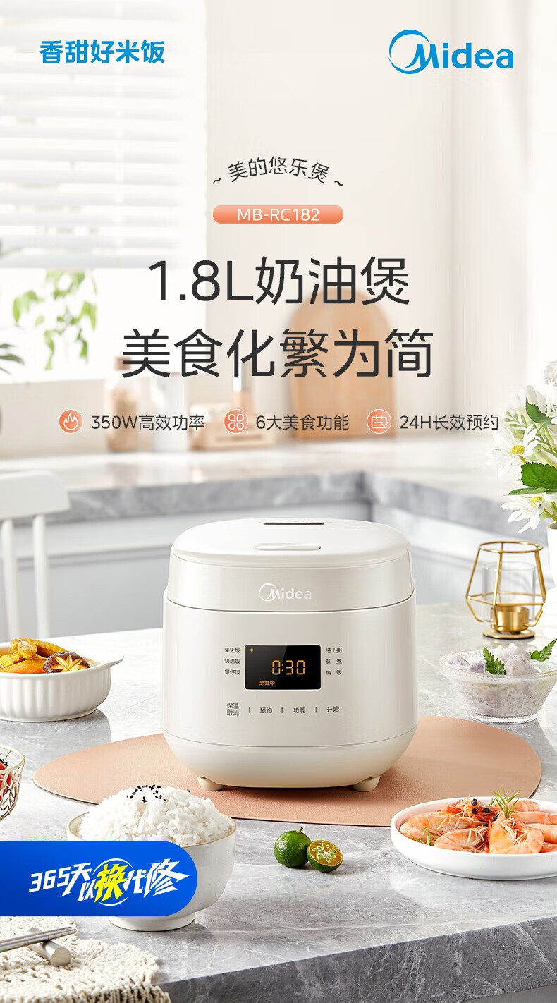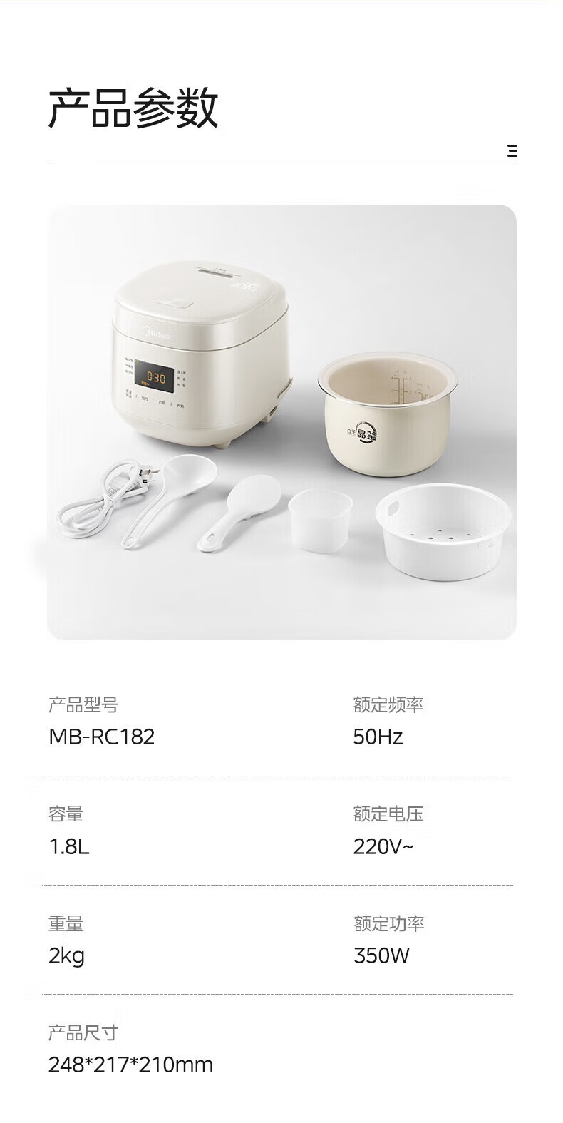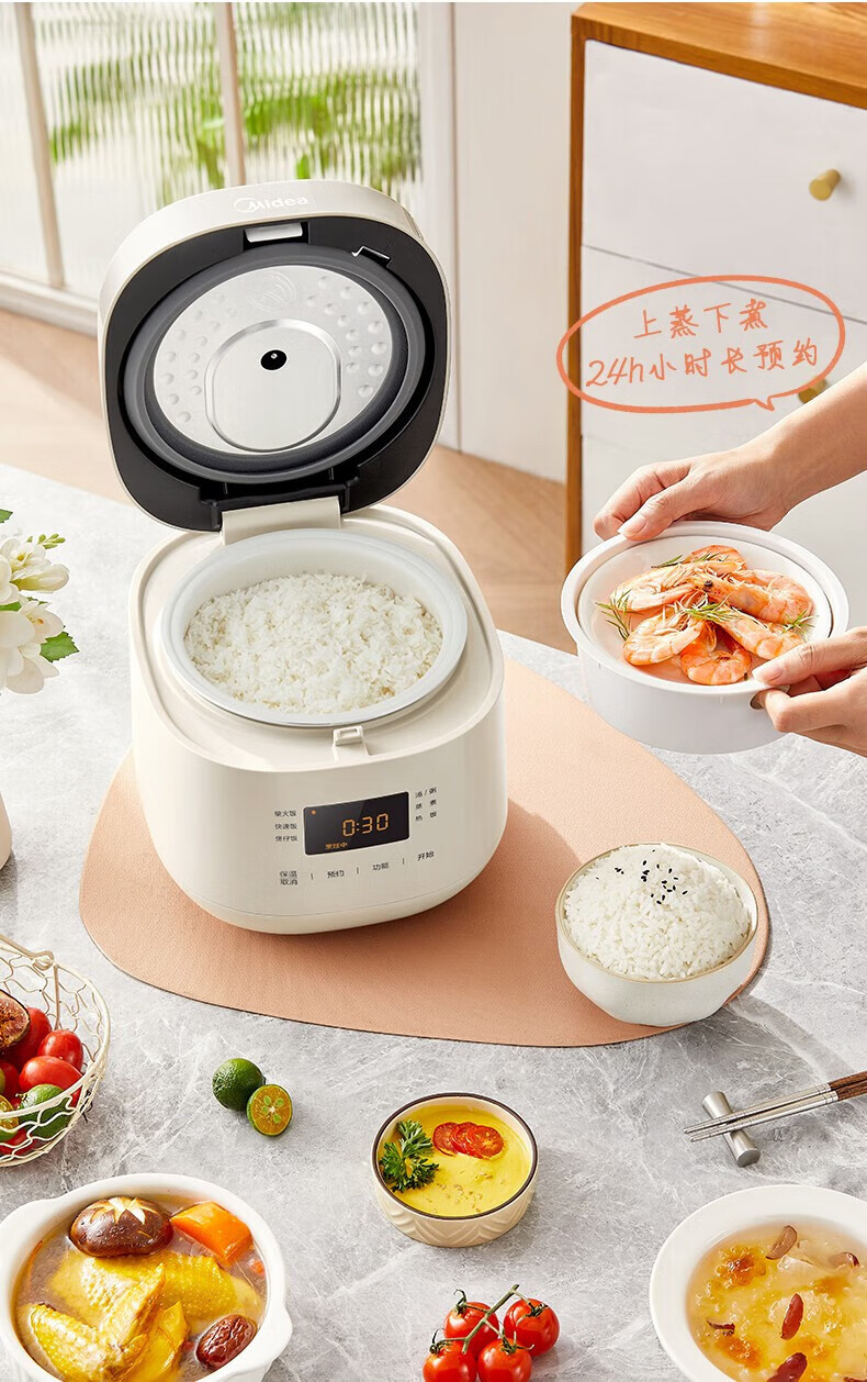 美的(Midea)迷你电饭煲1-2-3人小型电饭锅家用预约多功能微压柴火饭煲汤可煮小米粥不粘内胆饭煲1.8升国家补贴 【奶油白】配置蒸屉 1.8L