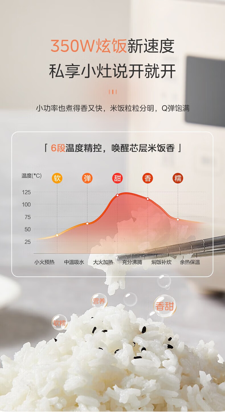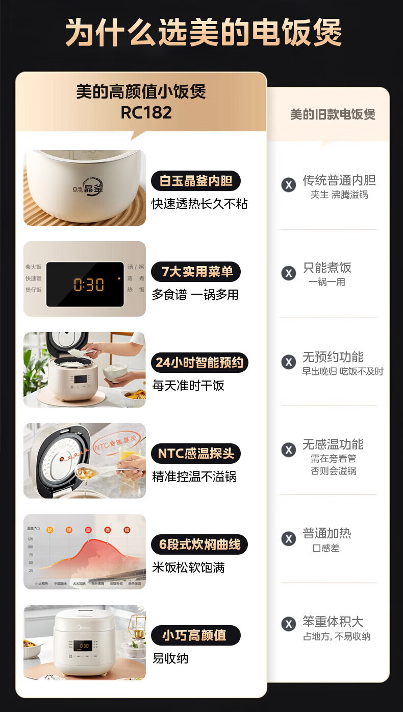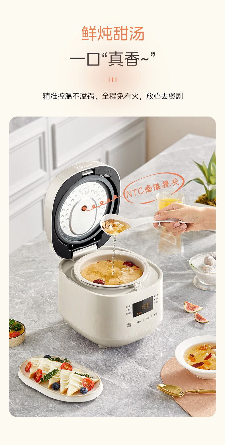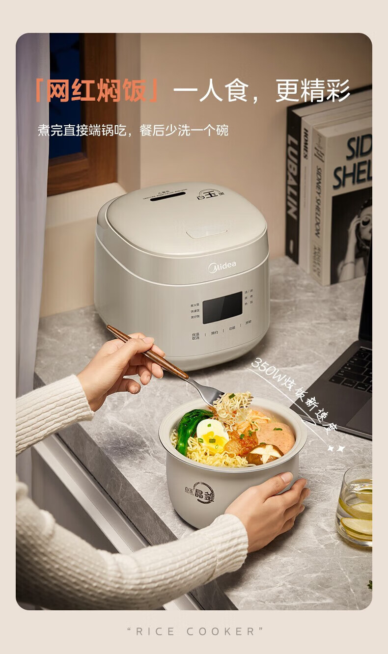 美的(Midea)迷你电饭煲1-2-3人小型电饭锅家用预约多功能微压柴火饭煲汤可煮小米粥不粘内胆饭煲1.8升国家补贴 【奶油白】配置蒸屉 1.8L