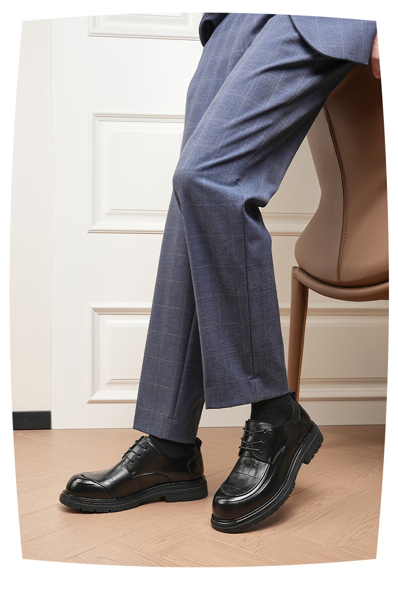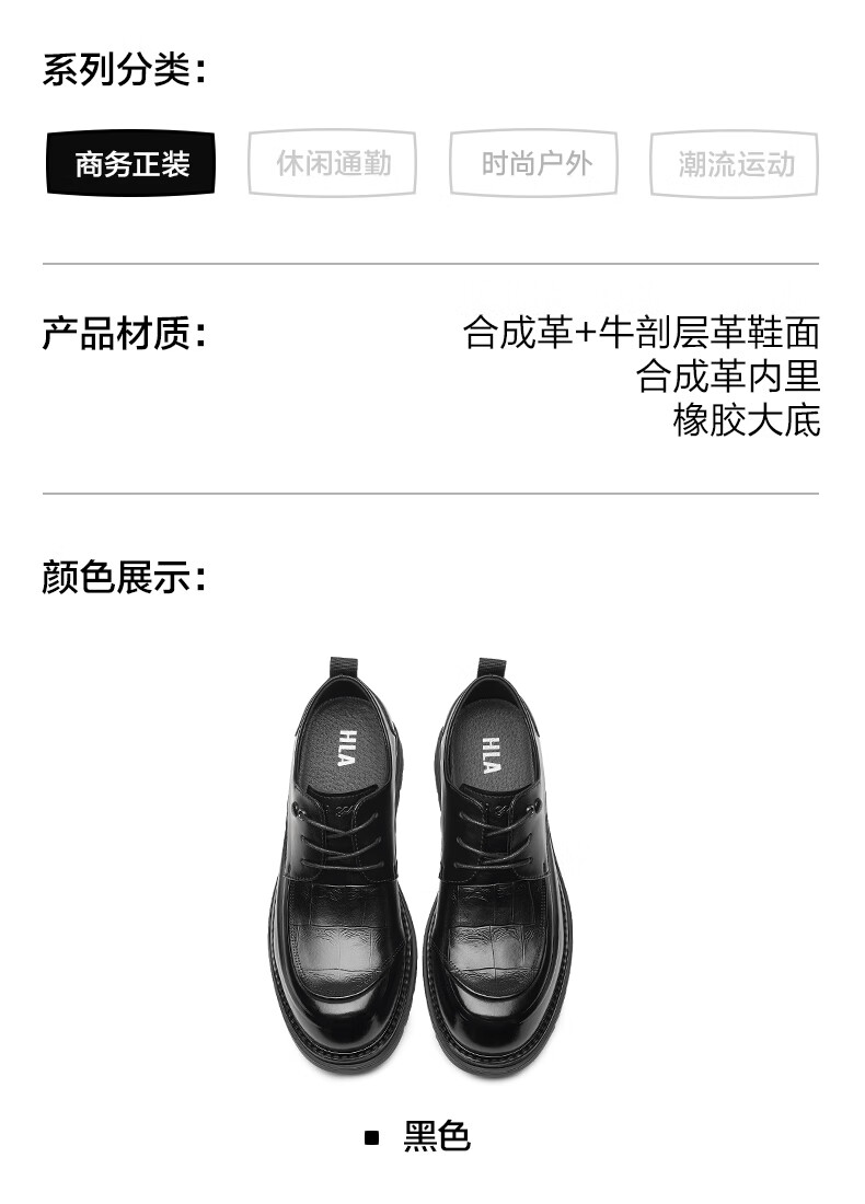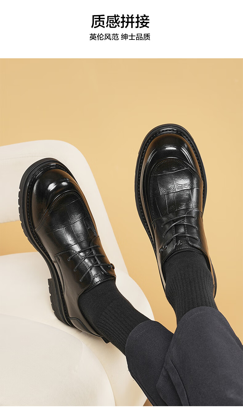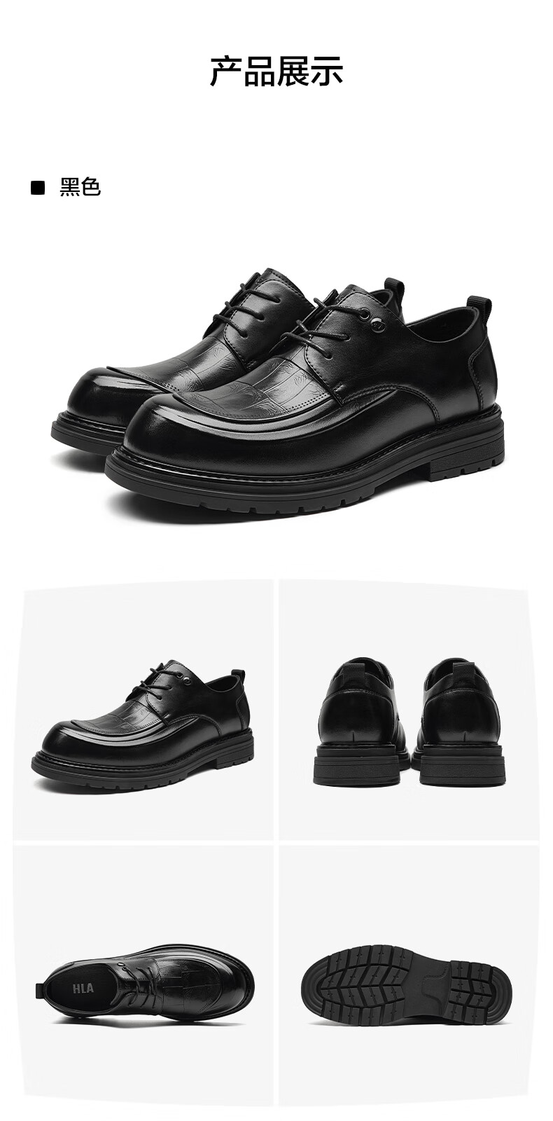 海澜之家(HLA)男鞋2025秋季新款皮鞋男士透气增高商务休闲德比鞋子男 黑色 40