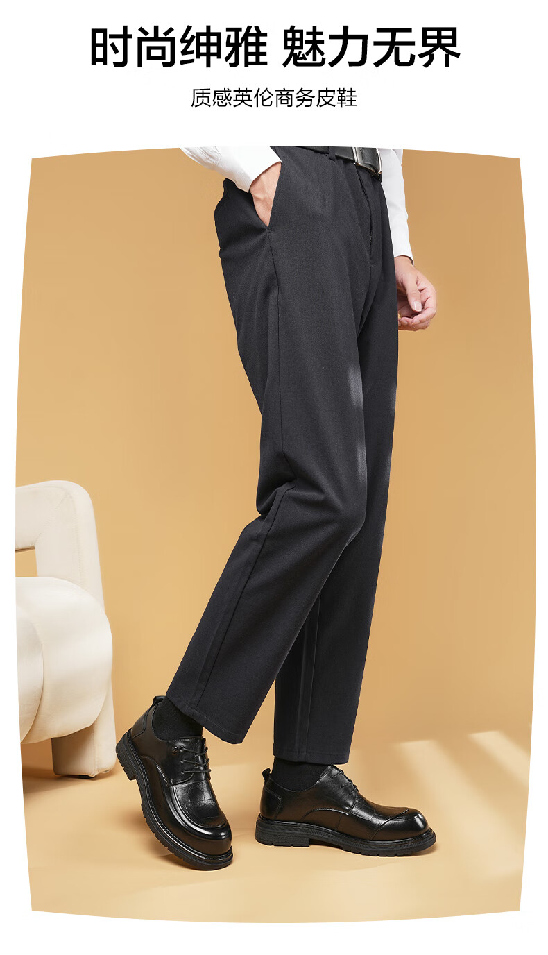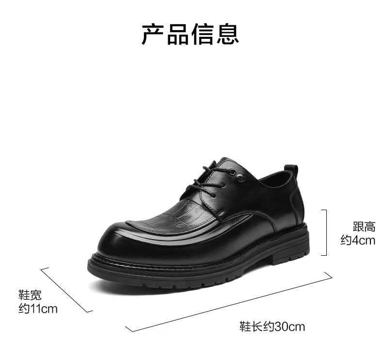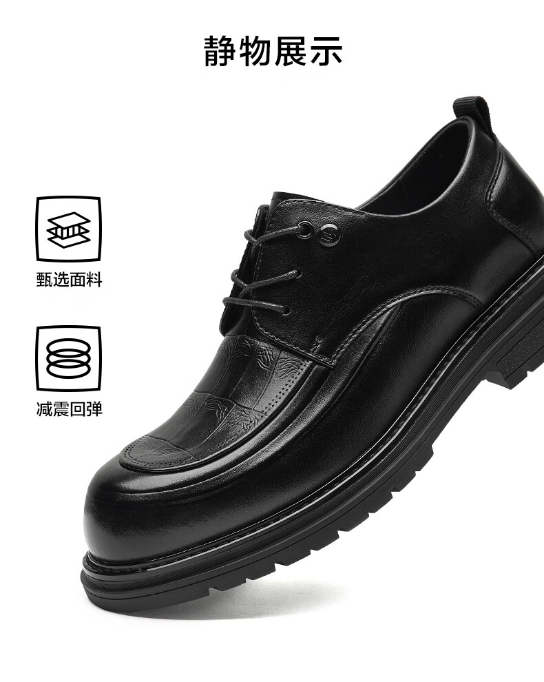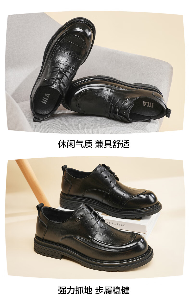 海澜之家(HLA)男鞋2025秋季新款皮鞋男士透气增高商务休闲德比鞋子男 黑色 40