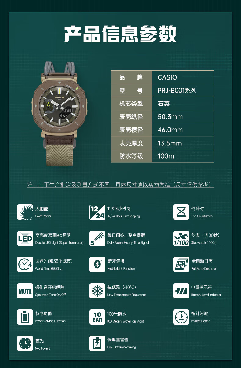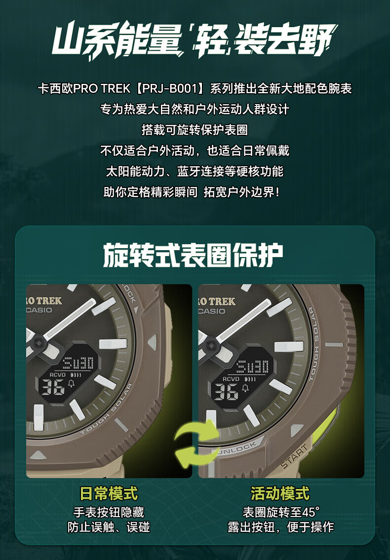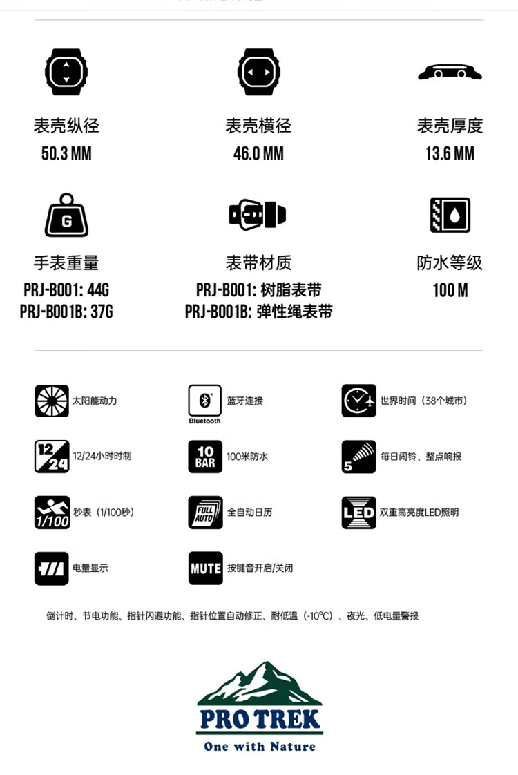 卡西欧(CASIO)男士轻量登山户外徒步PRO系列可旋转表盘日韩表送男友 PRJ-B001B-2PR