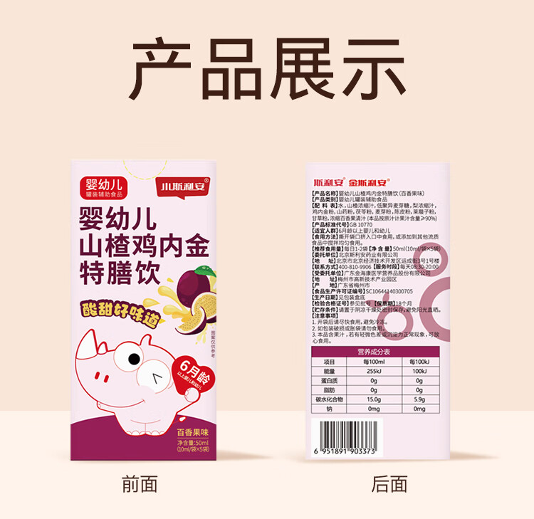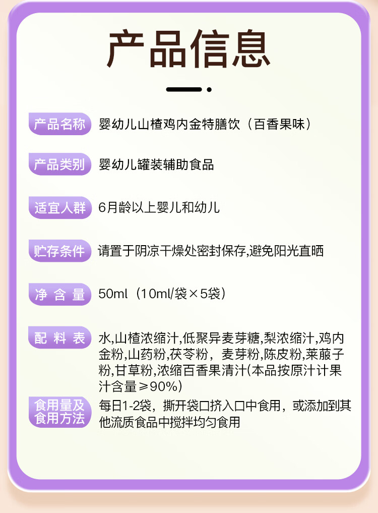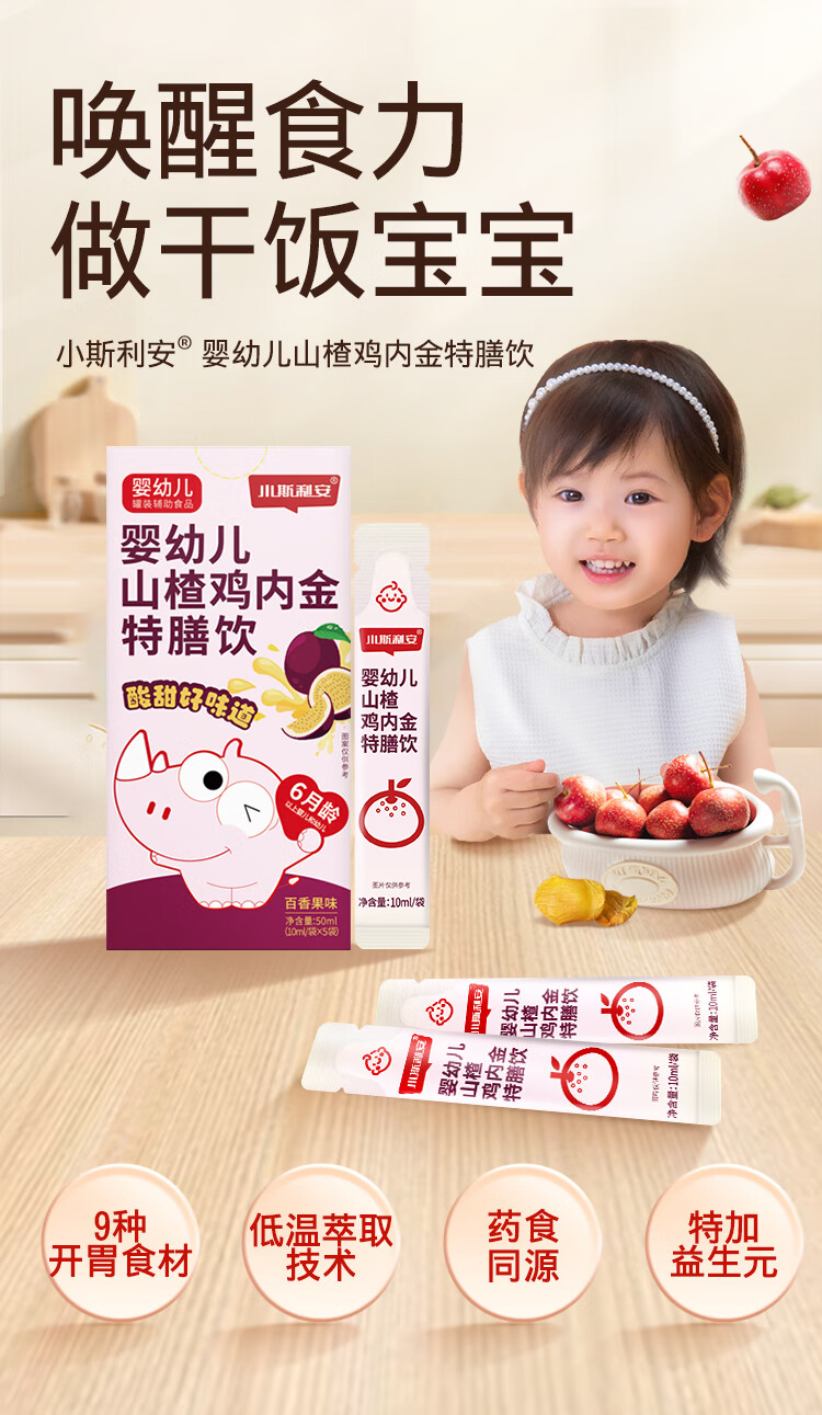 小斯利安山楂鸡内金 婴幼儿童特膳饮促消化健脾胃调理消食化积 5条试用装