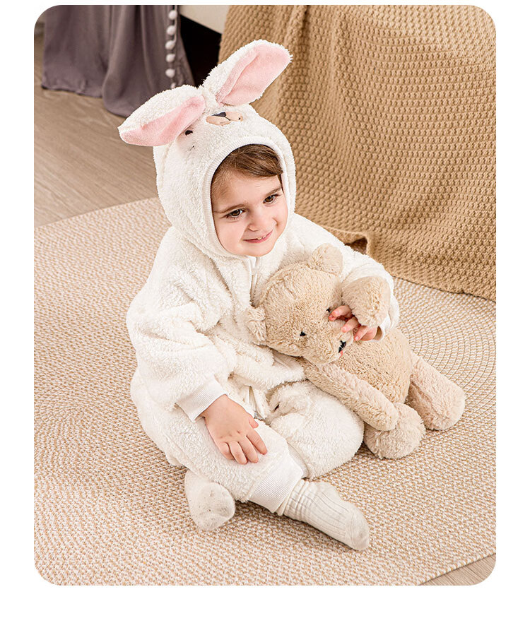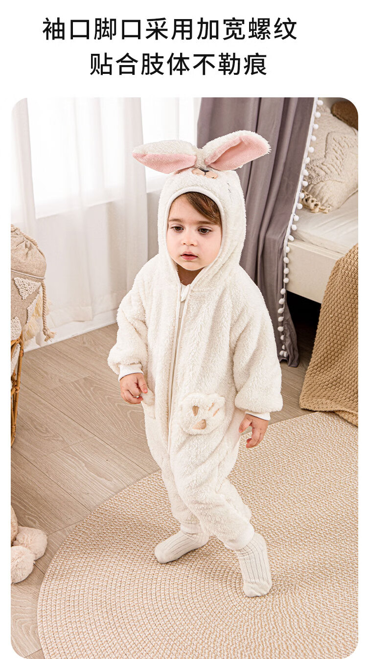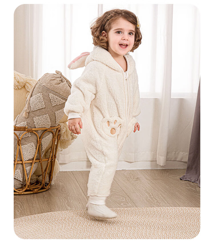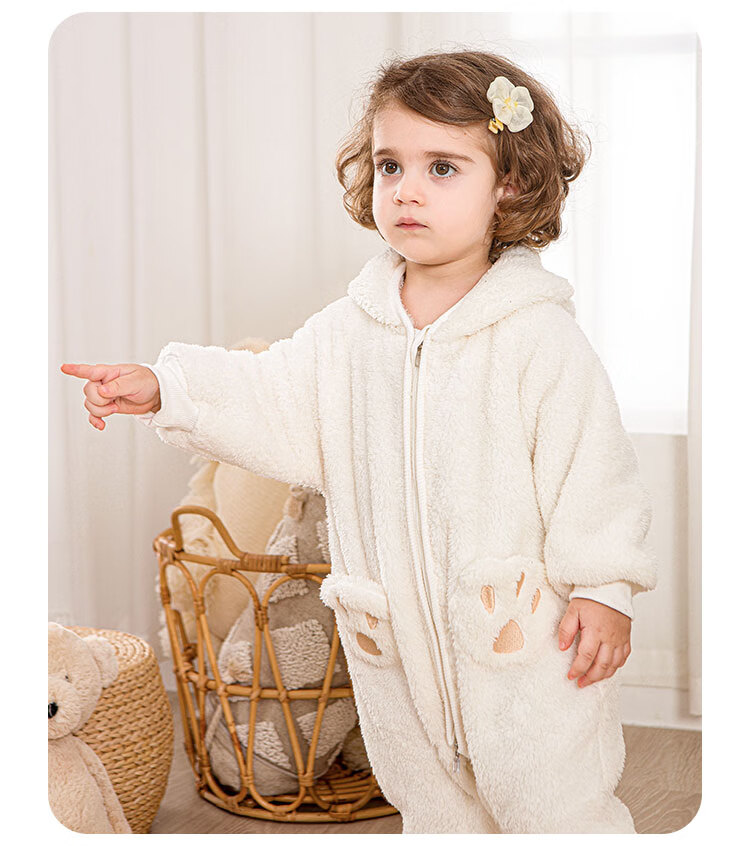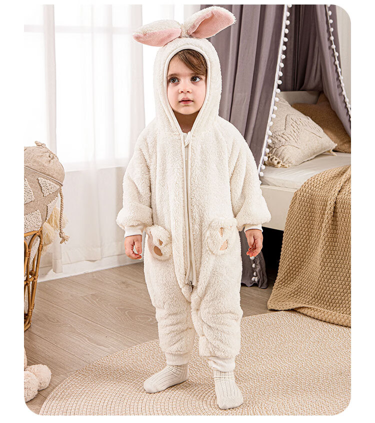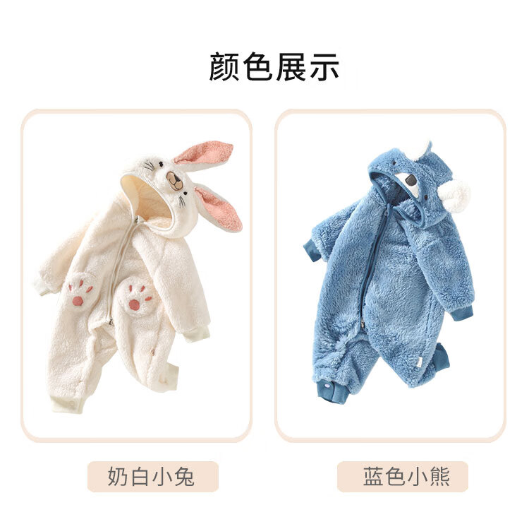小猪大卫 PECODAVID可爱耳朵连体衣秋冬毛绒婴幼儿爬服保暖居家外出服 湖蓝小熊 90cm