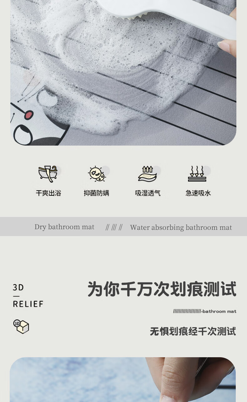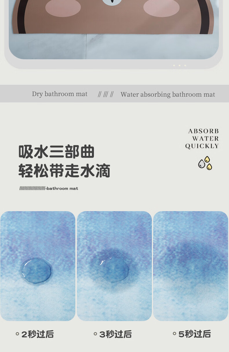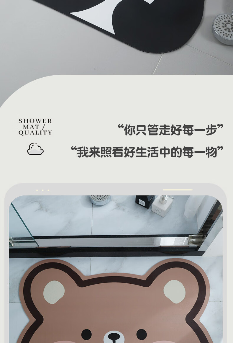 季象家用入户门洗手间吸水地垫浴室毯子卫生间防滑垫卫浴厕所门口脚垫 GZN-Y 爱笑喵咪 40x60 cm【吸水黑科技体验装】