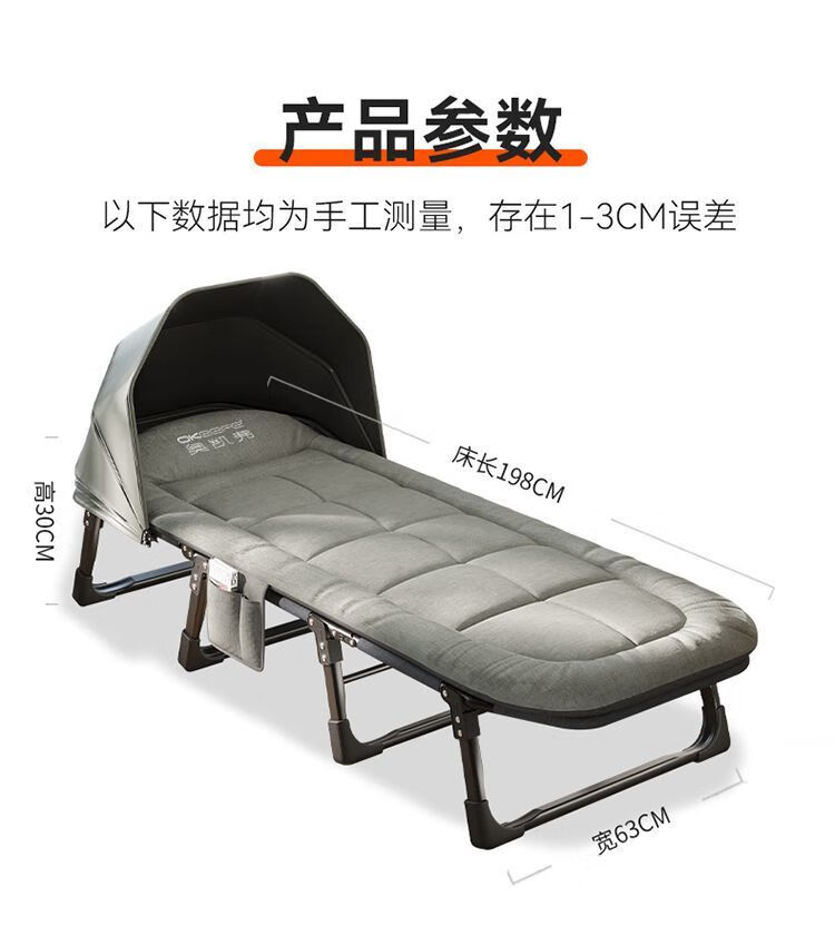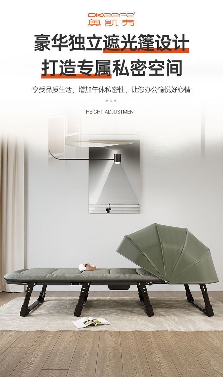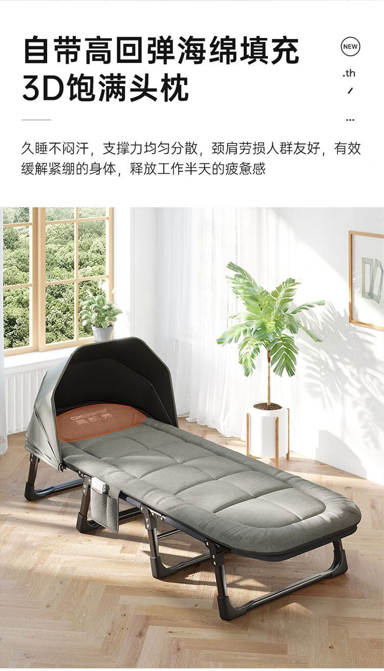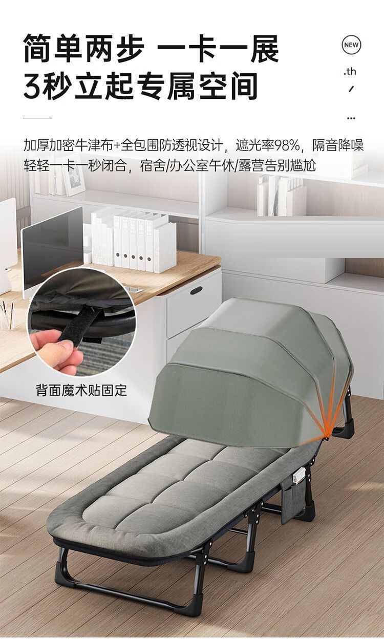 海诗圣堡隐私棚午休床折叠床单人办公室午睡床遮光晒背床简易陪护床行军床 长198*宽66*高30cm 床-不加隐私棚