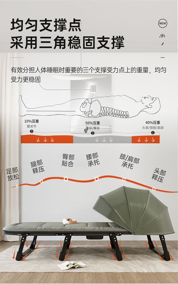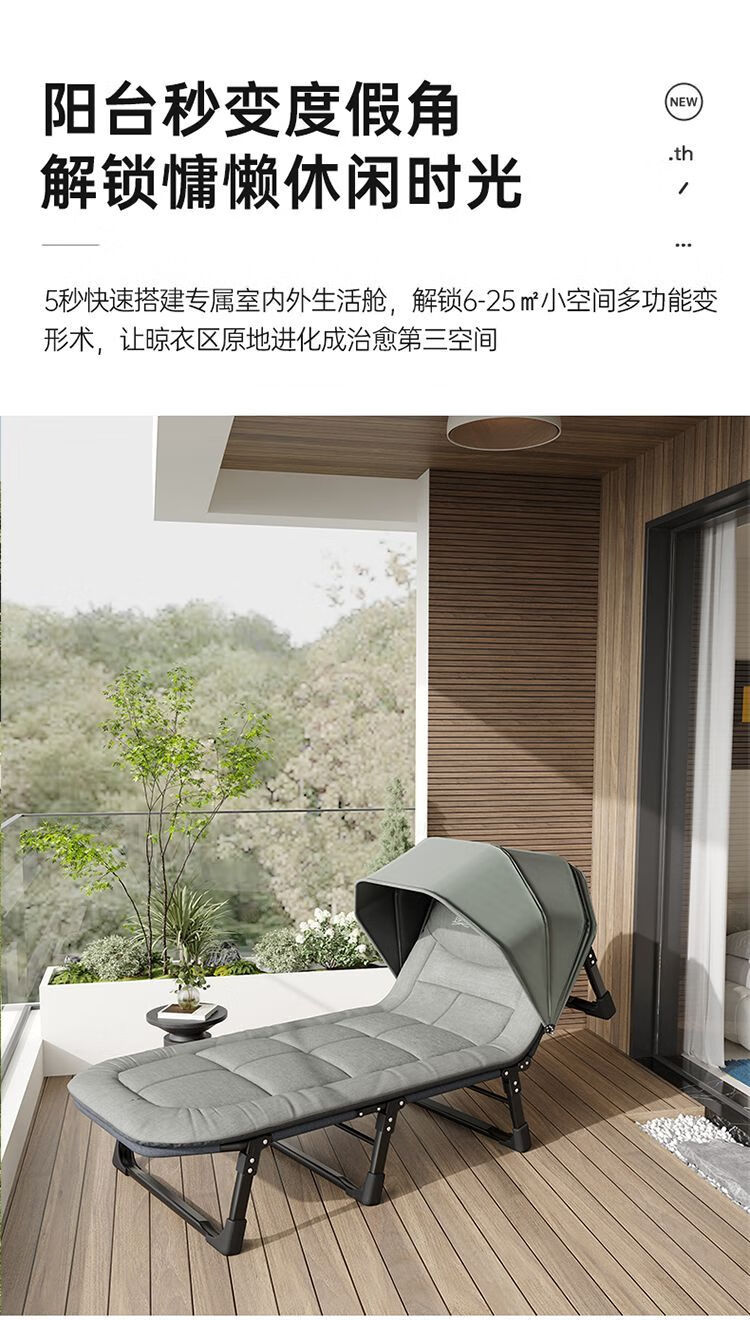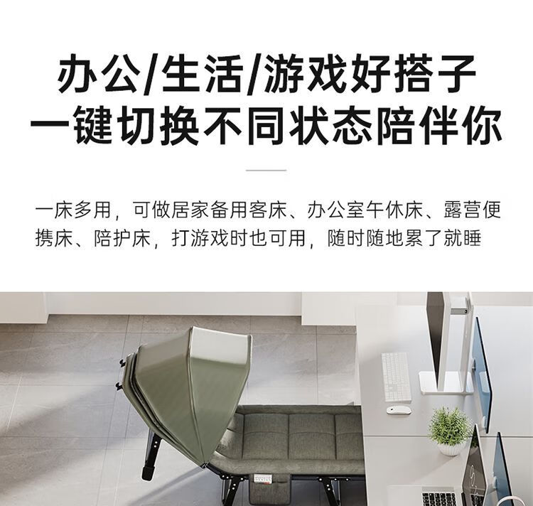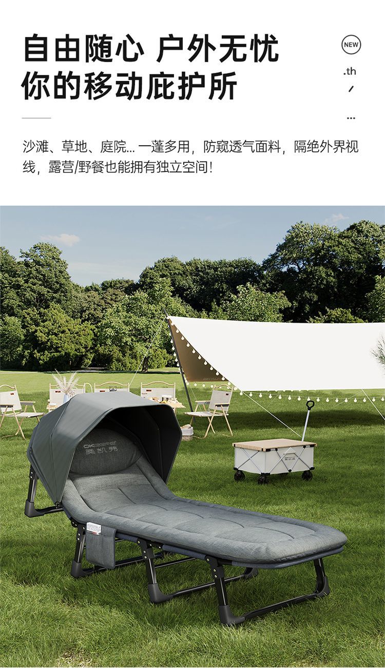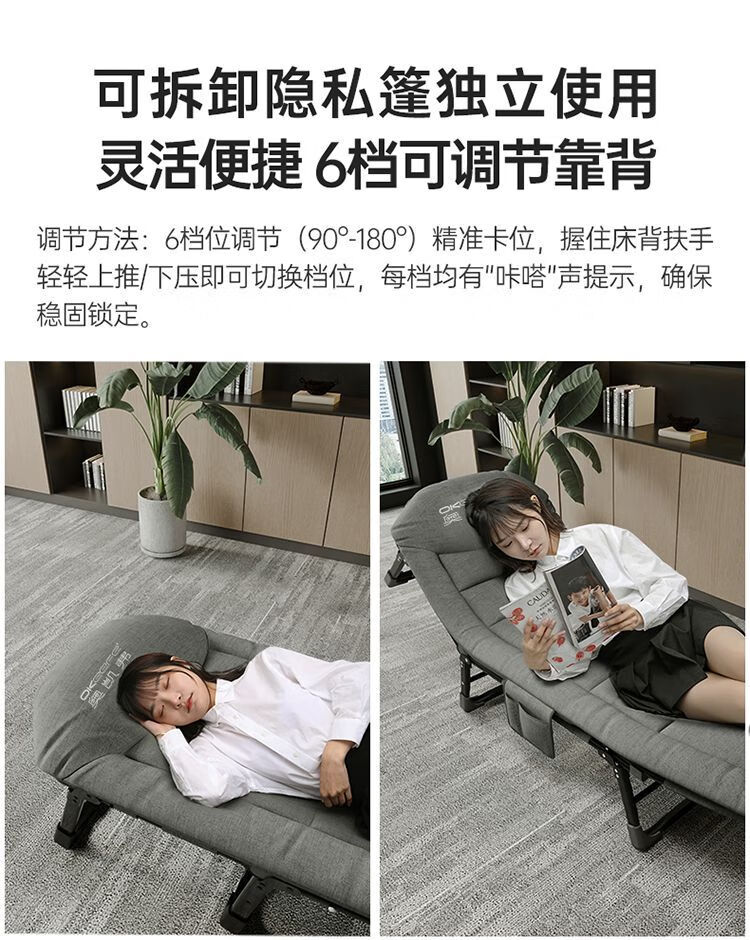 海诗圣堡隐私棚午休床折叠床单人办公室午睡床遮光晒背床简易陪护床行军床 长198*宽66*高30cm 床-不加隐私棚