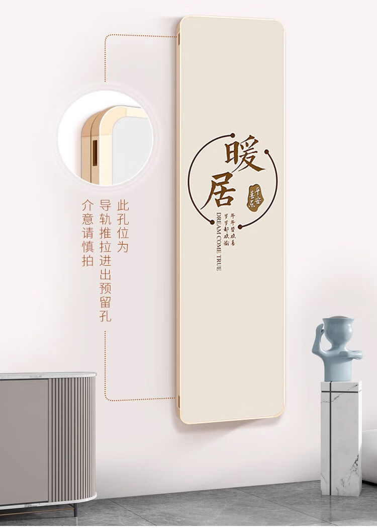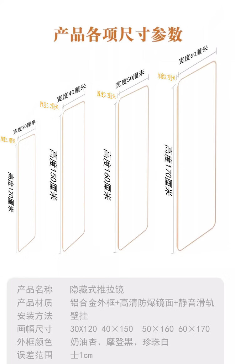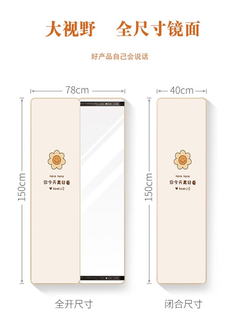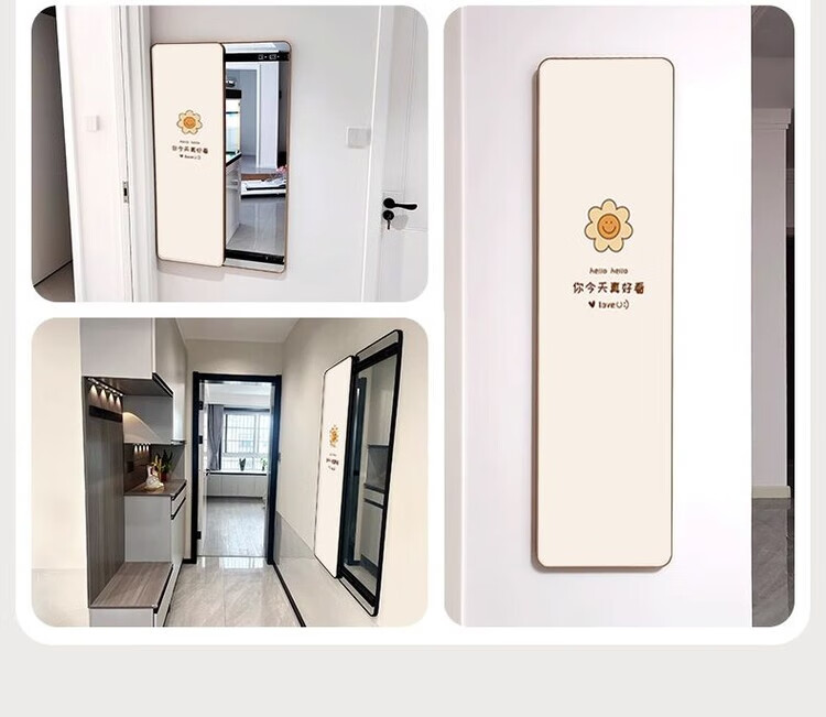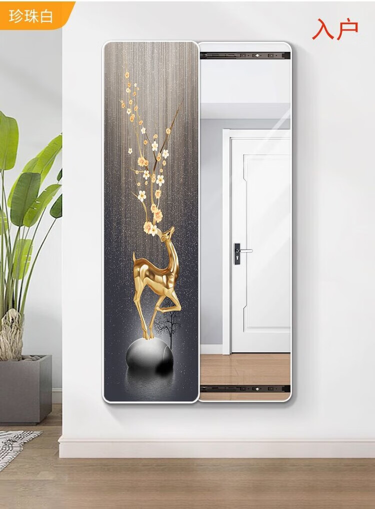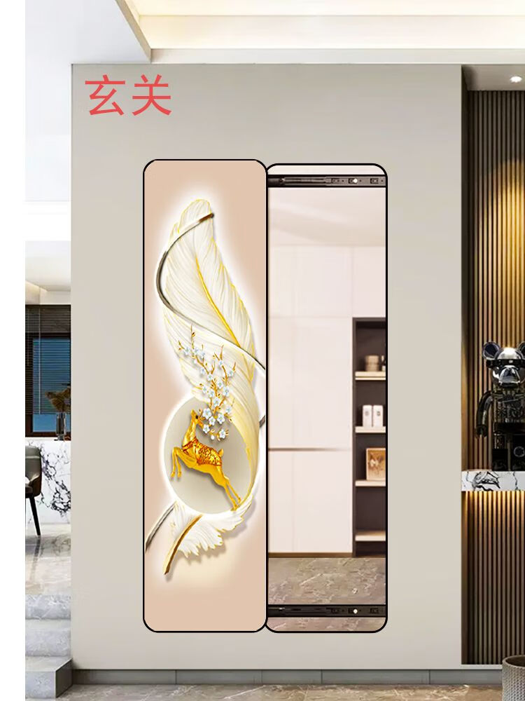 弘星隆隐藏式全身镜子挂墙隐形推拉画卧室穿衣镜玄关走廊铝合金装饰镜画 太阳花【杏色框】 30*120厘米【水晶膜+左推拉+防爆镜片】
