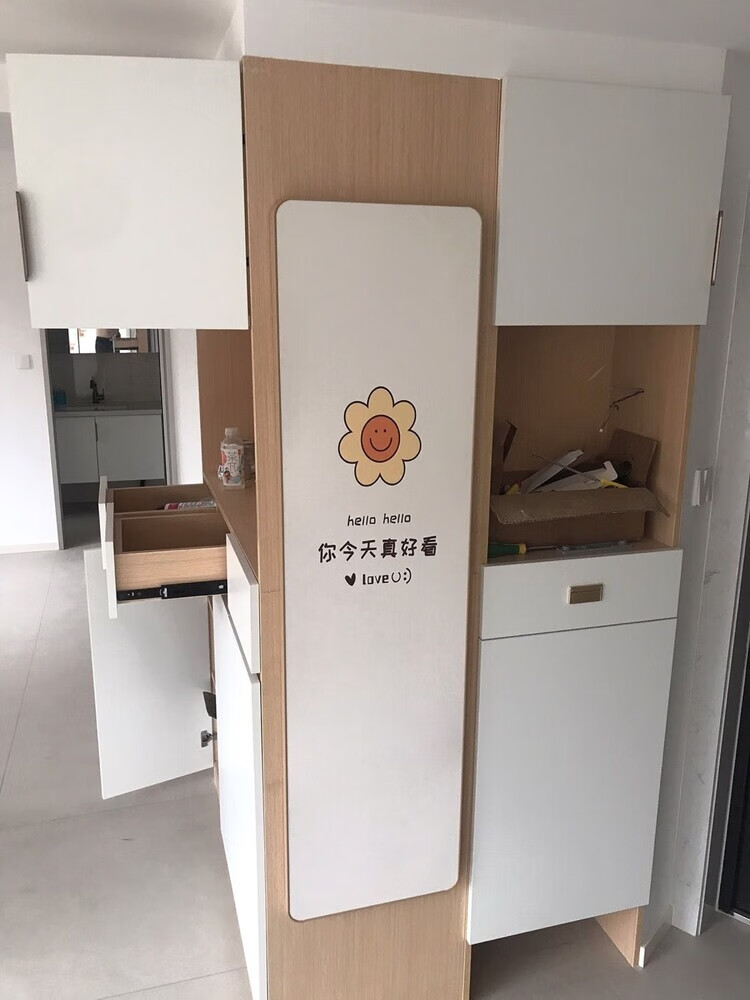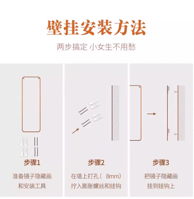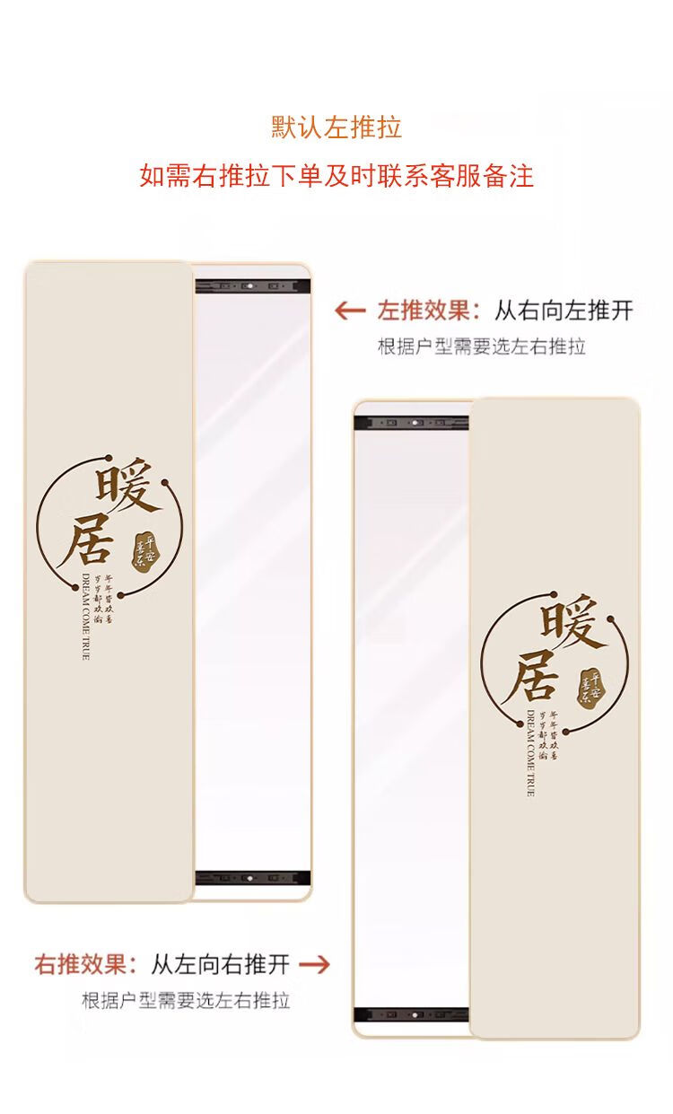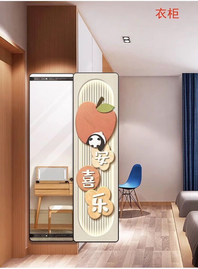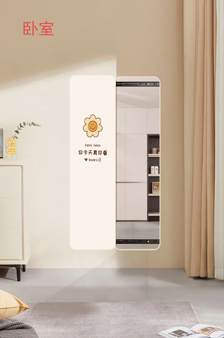 弘星隆隐藏式全身镜子挂墙隐形推拉画卧室穿衣镜玄关走廊铝合金装饰镜画 太阳花【杏色框】 30*120厘米【水晶膜+左推拉+防爆镜片】