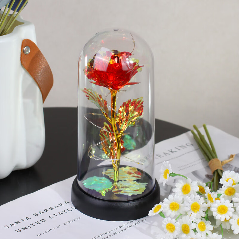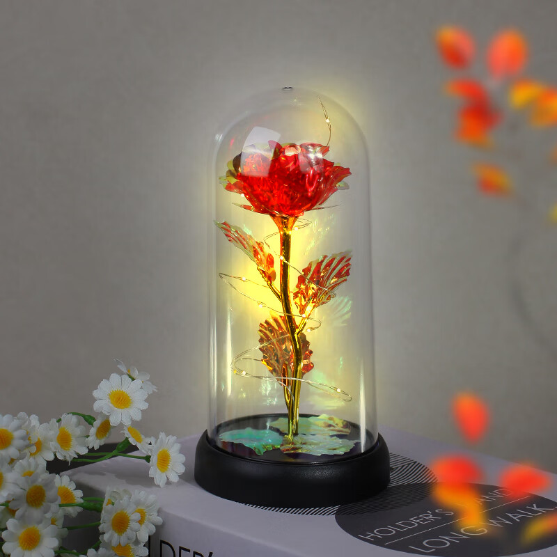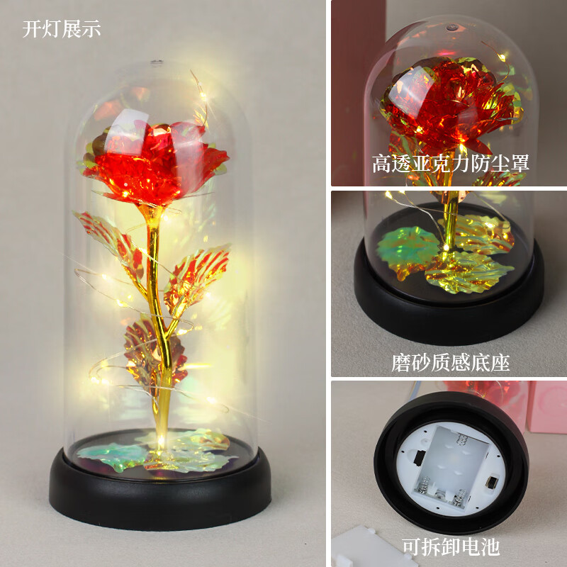 匠心绽放仿真玫瑰花 红色金箔玫瑰生日礼物小夜灯装饰套装配礼袋