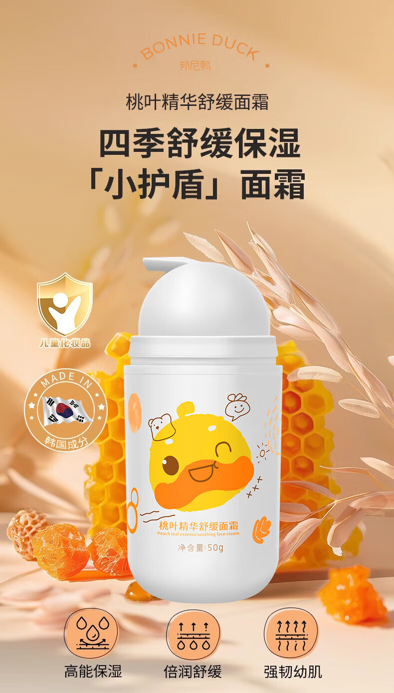 邦尼鸭(BONNIE DUCK)儿面霜秋冬滋润补水含桃叶精华宝宝专用 儿童精华霜50克