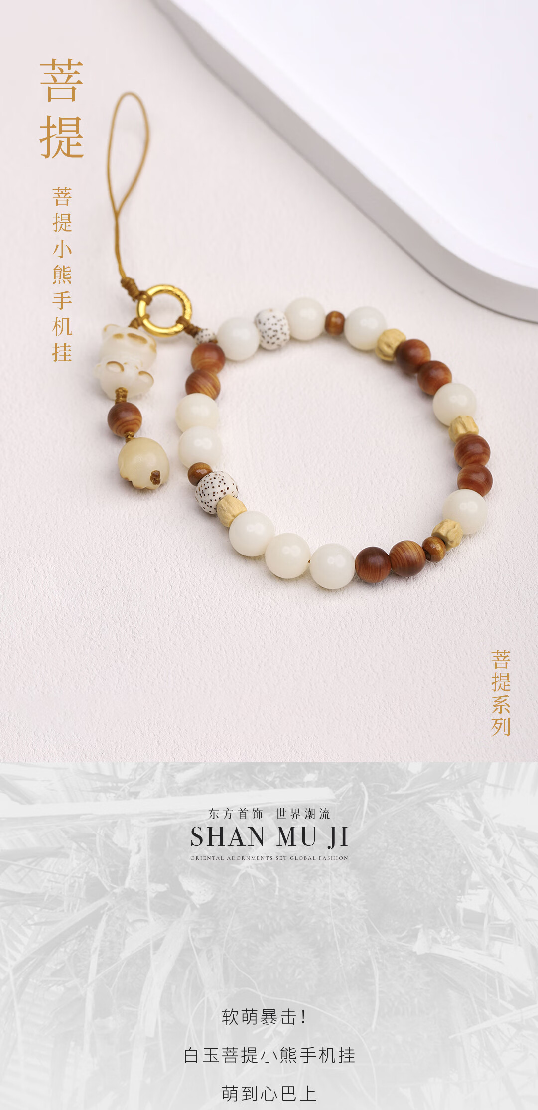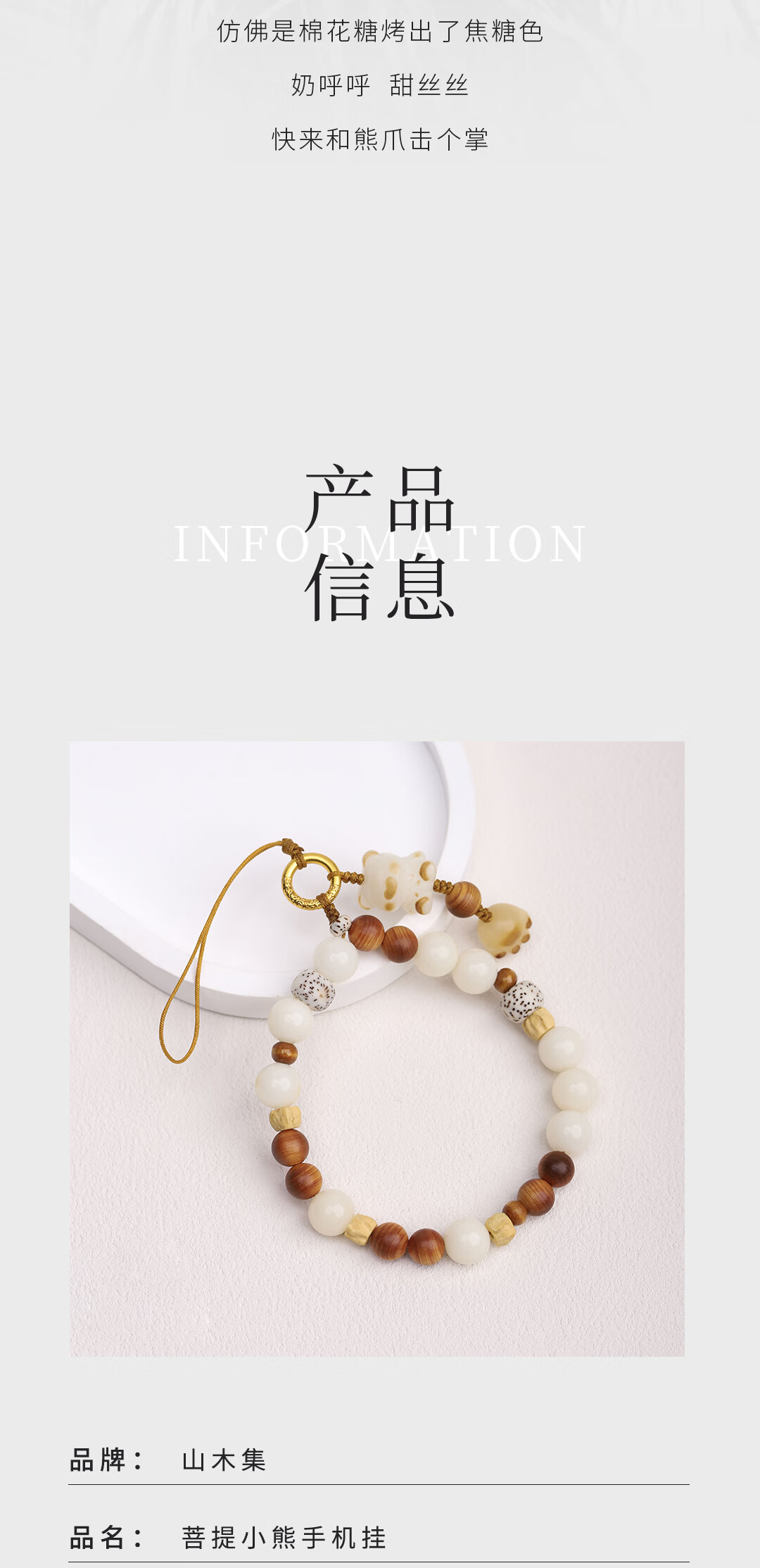 山木集菩提小熊手机链挂绳钥匙扣新中式手腕防丢精致高级感挂饰装饰品* 48小时内发货