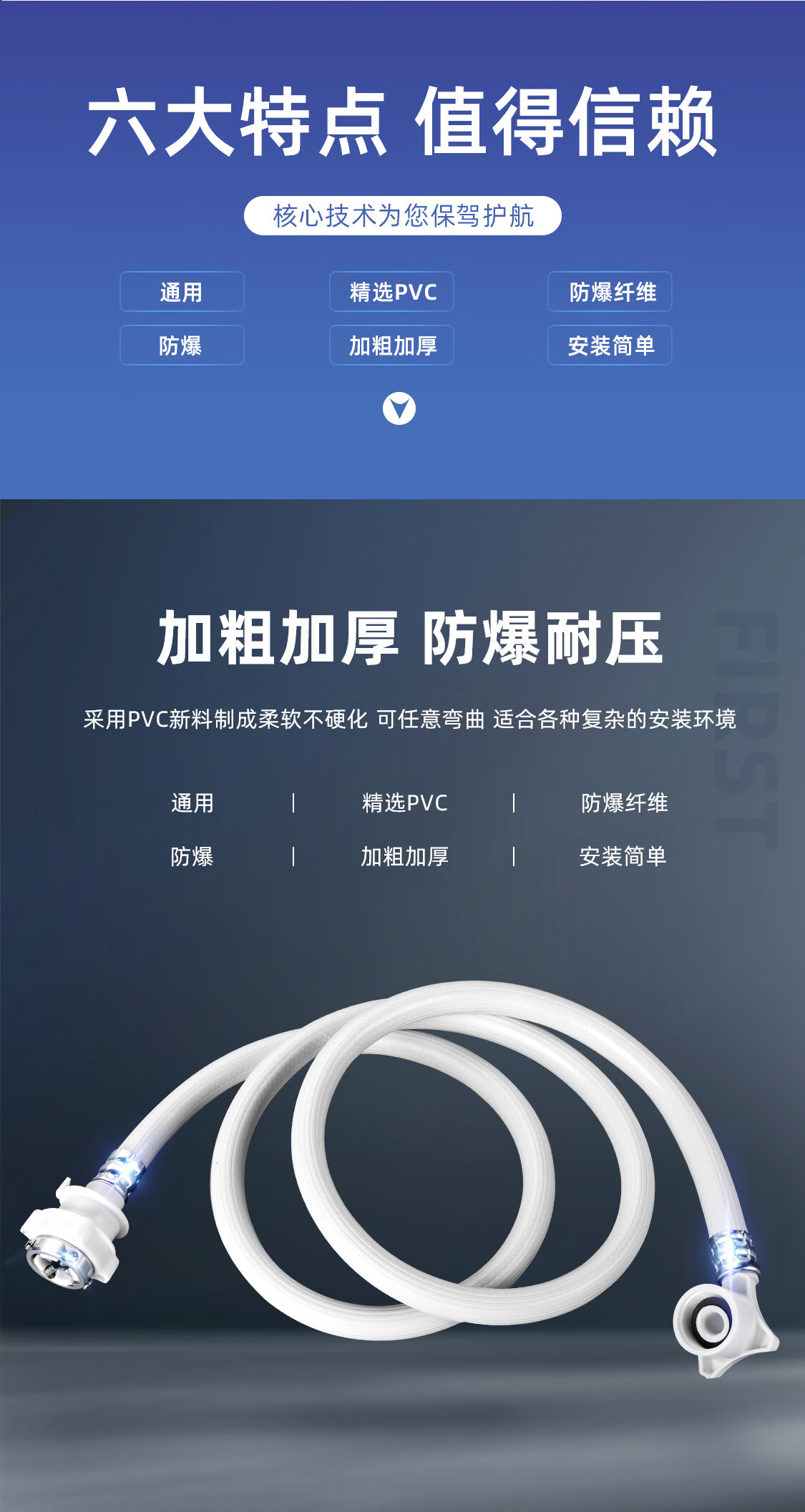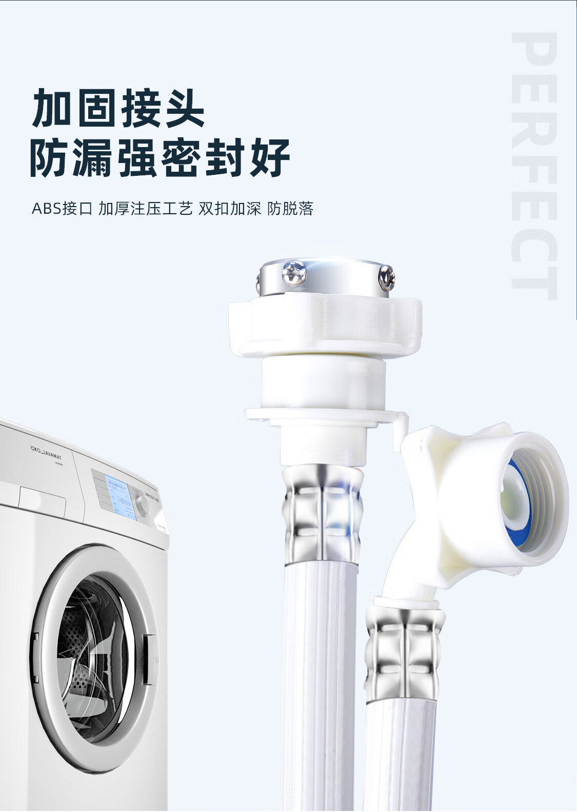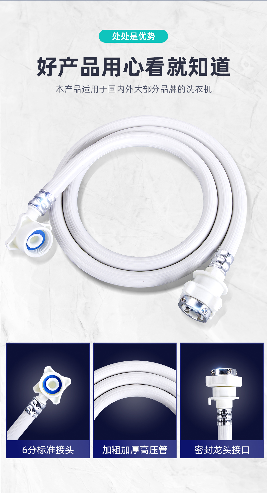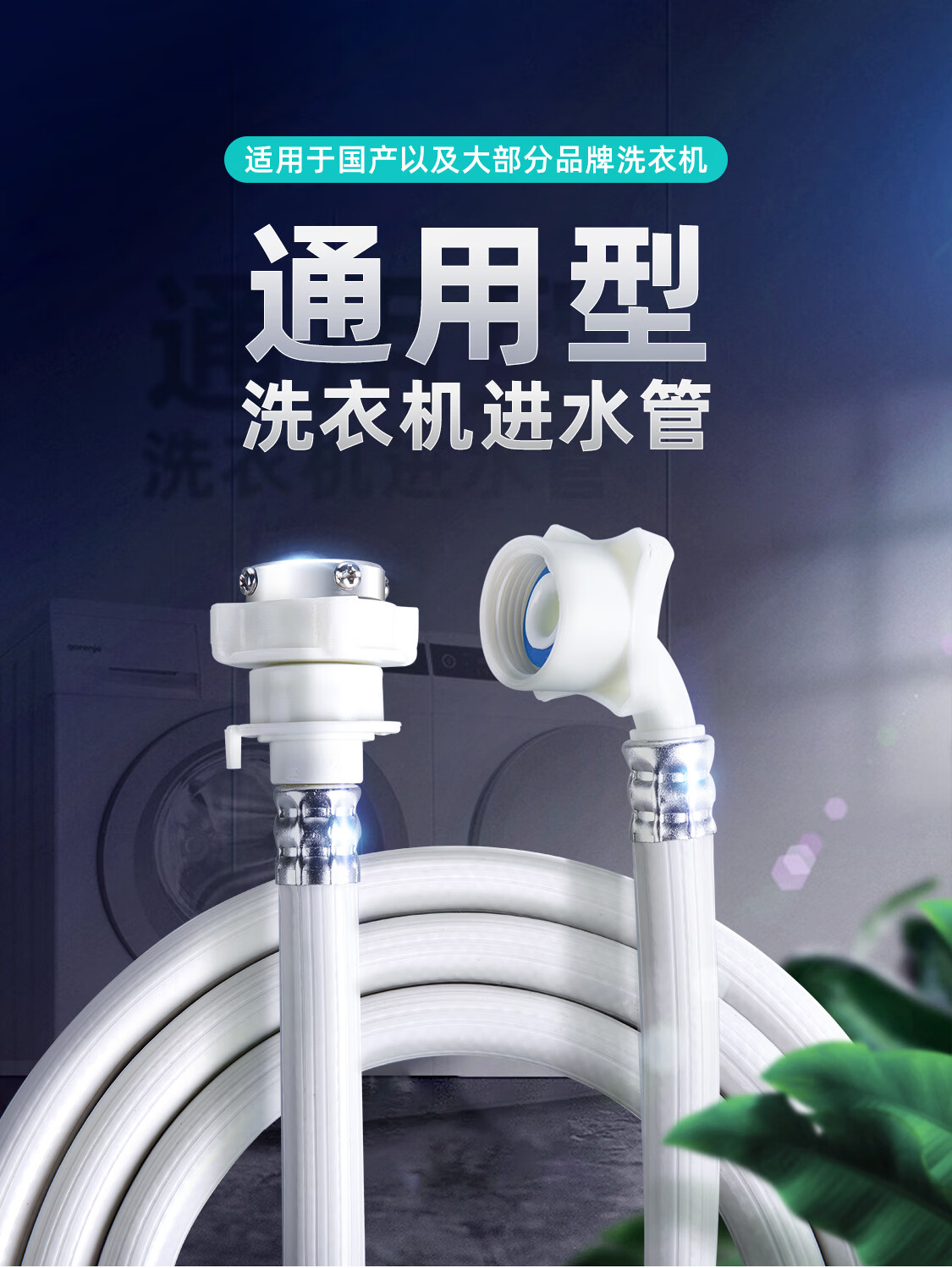 贝石 洗衣机进水管 加厚通用滚筒波轮洗衣机进水管加长管接水管上水管注水延长软管接头配件 白色5米