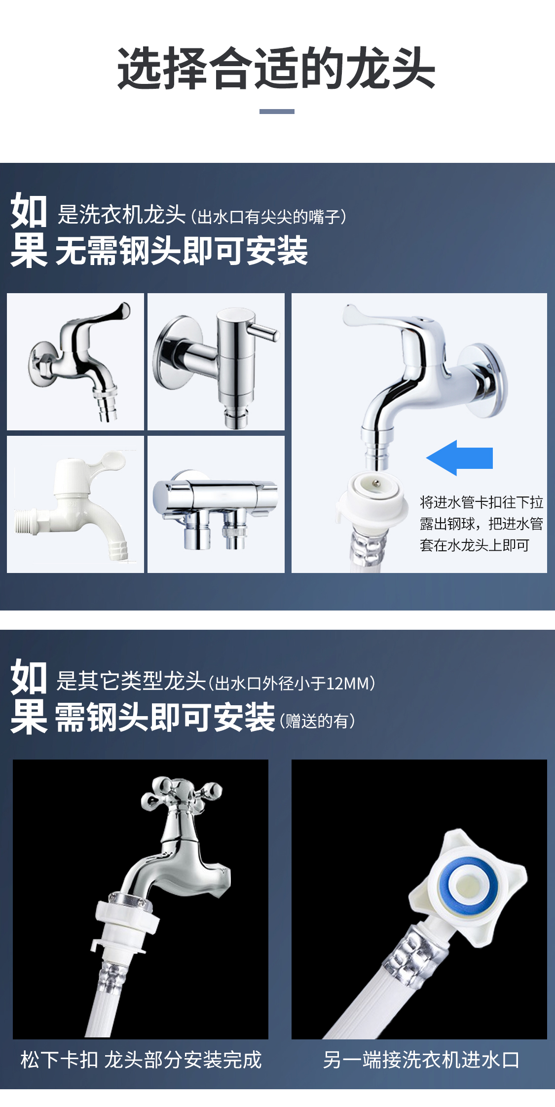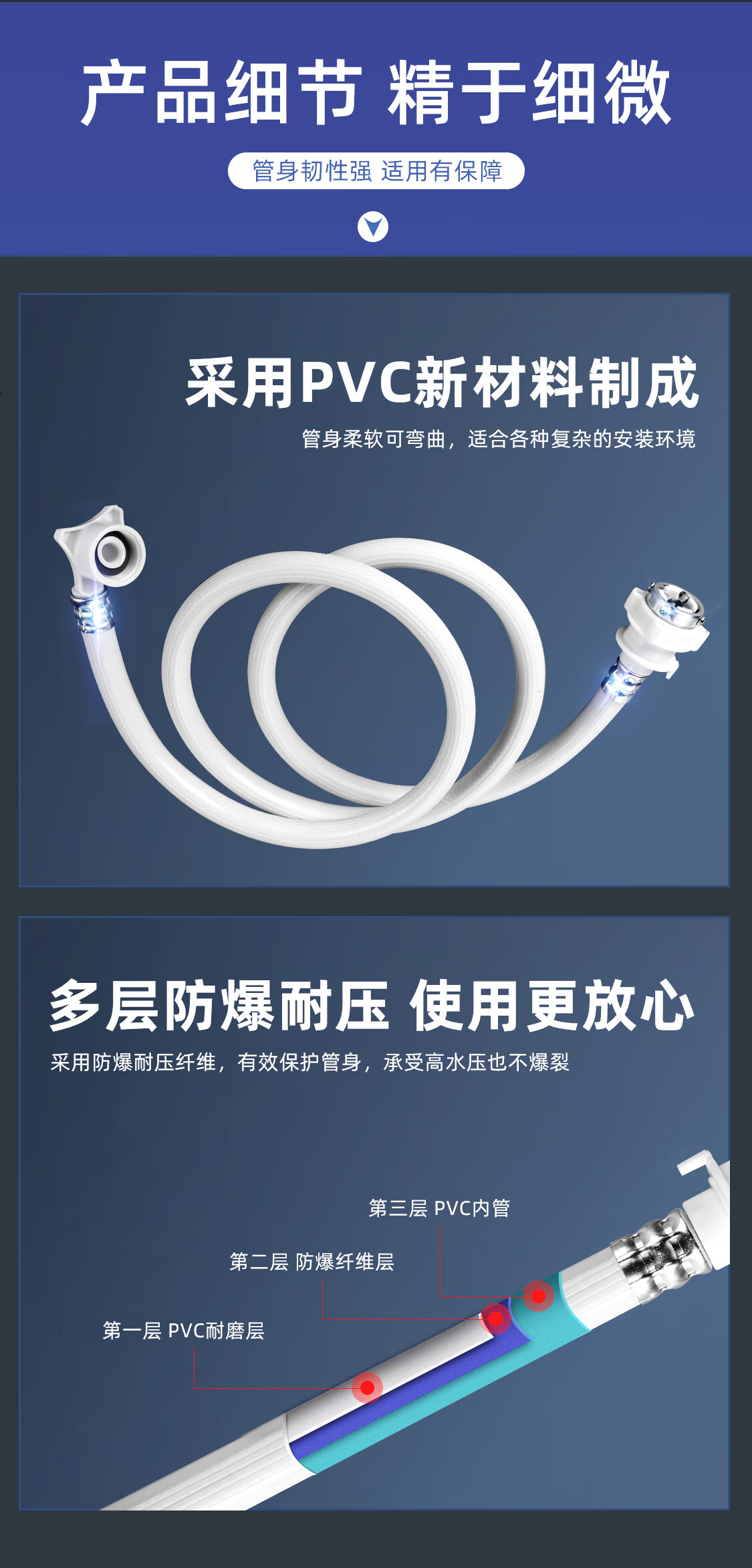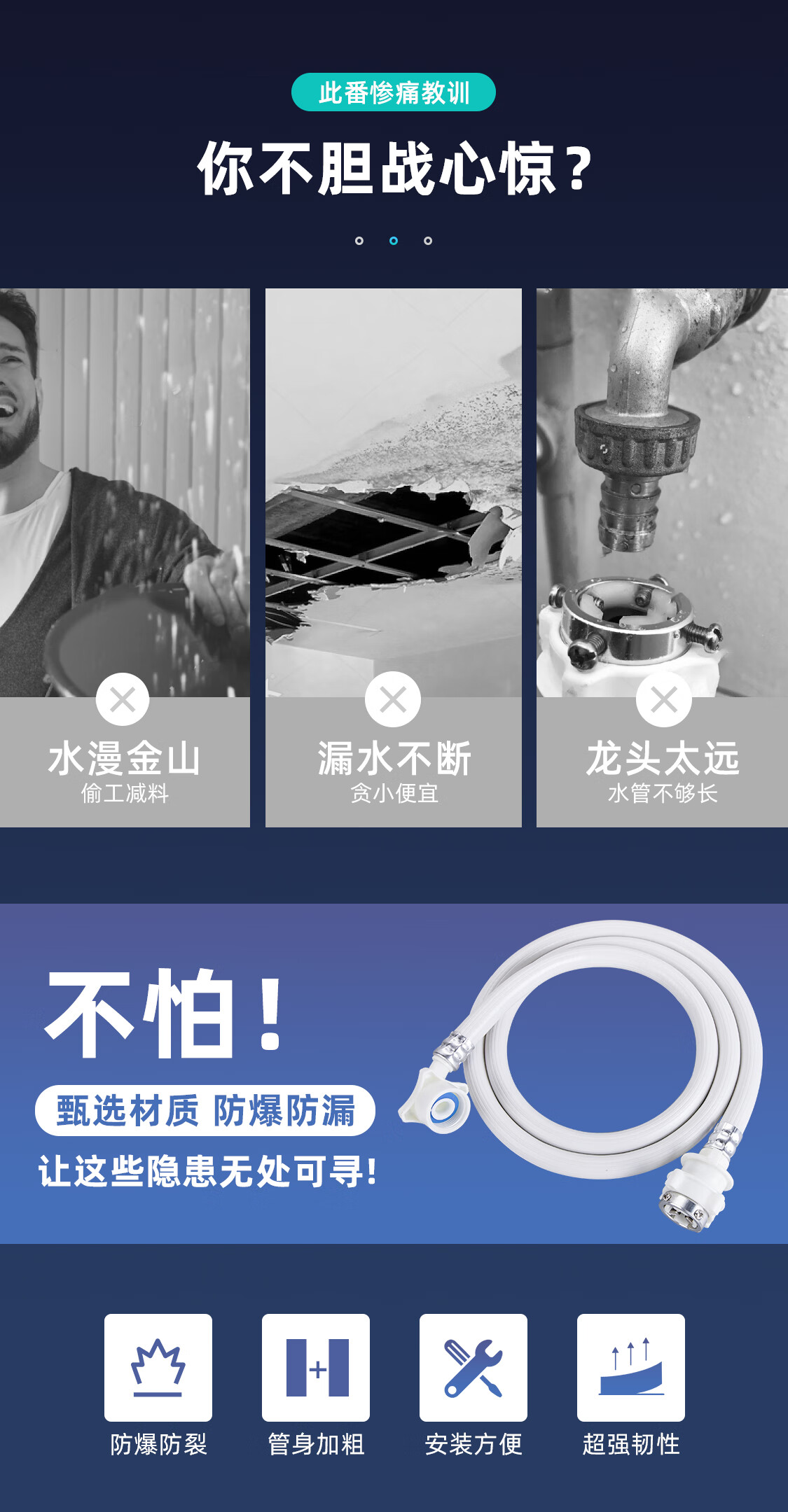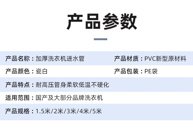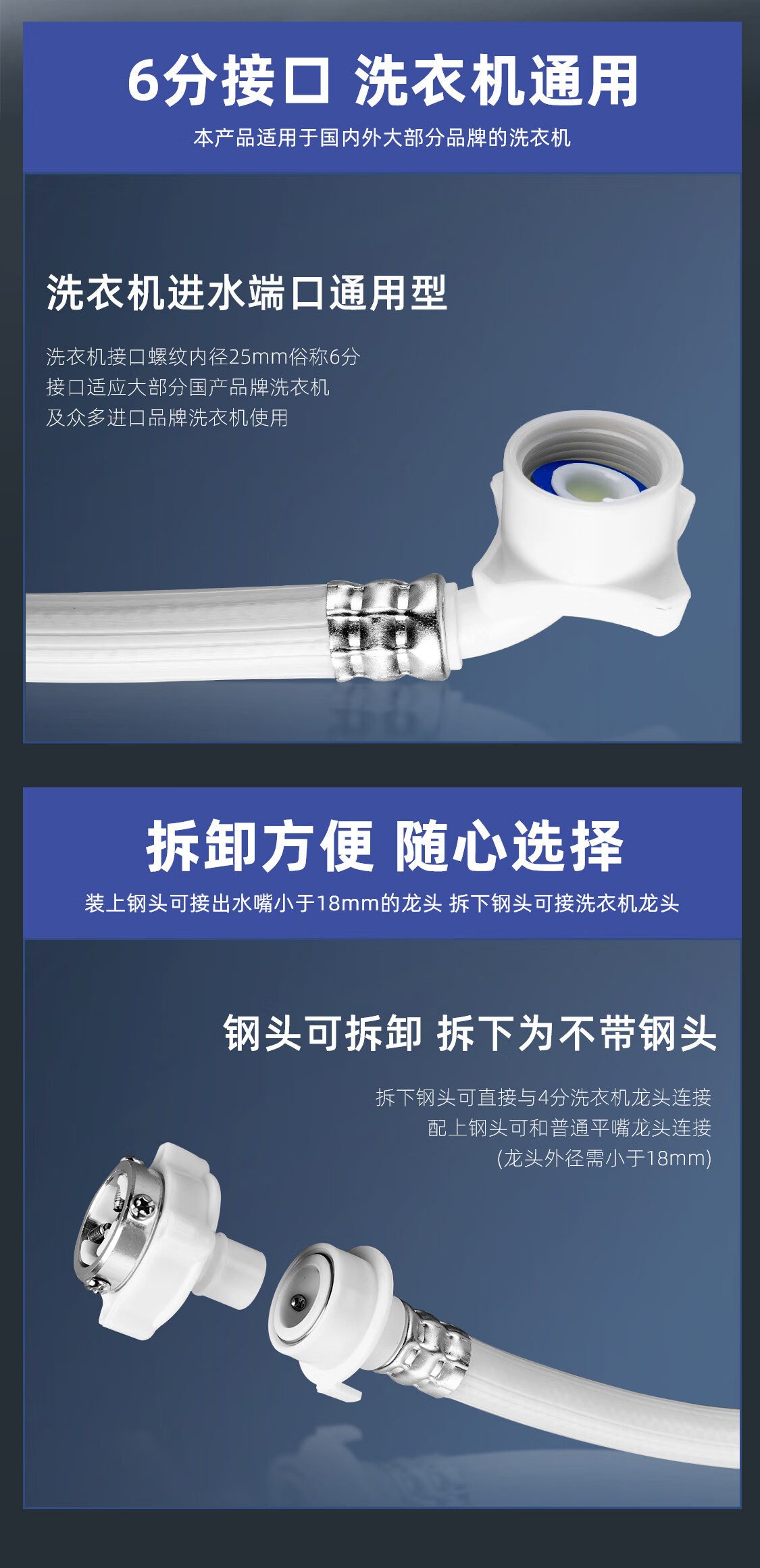 贝石 洗衣机进水管 加厚通用滚筒波轮洗衣机进水管加长管接水管上水管注水延长软管接头配件 白色5米